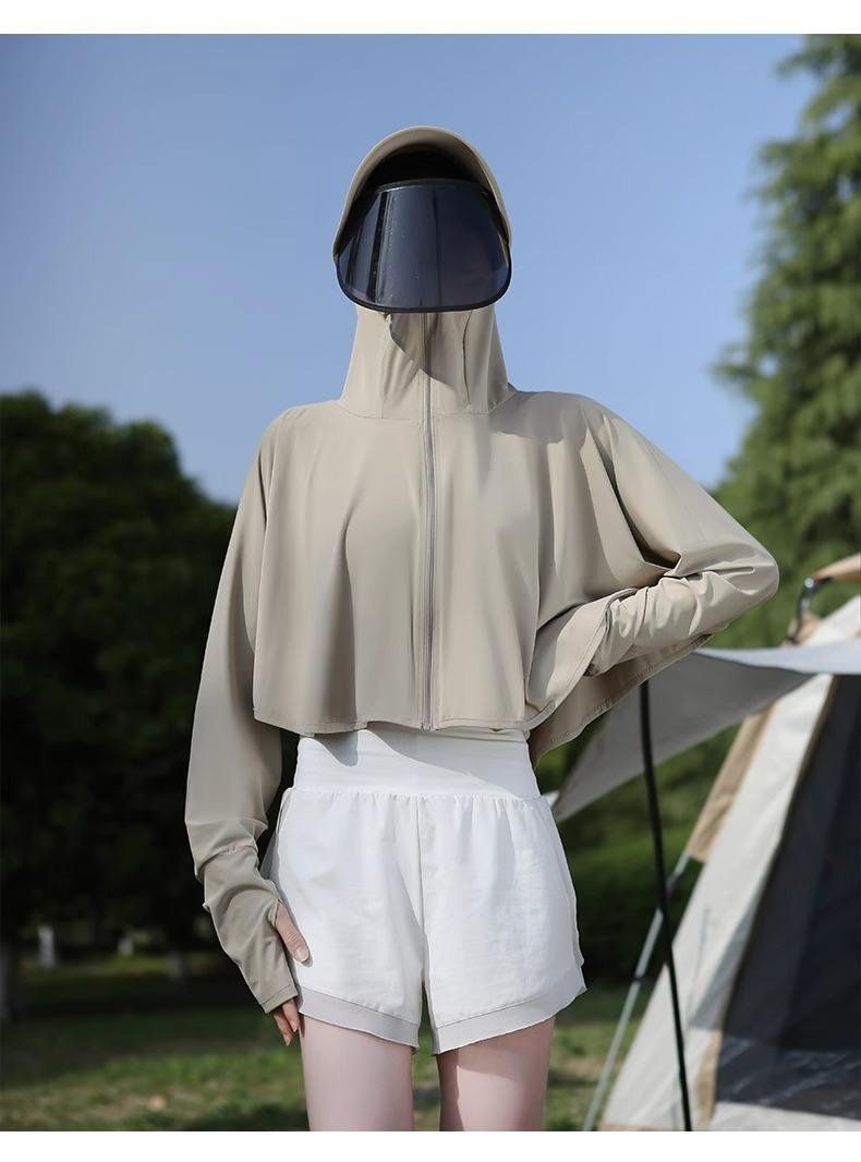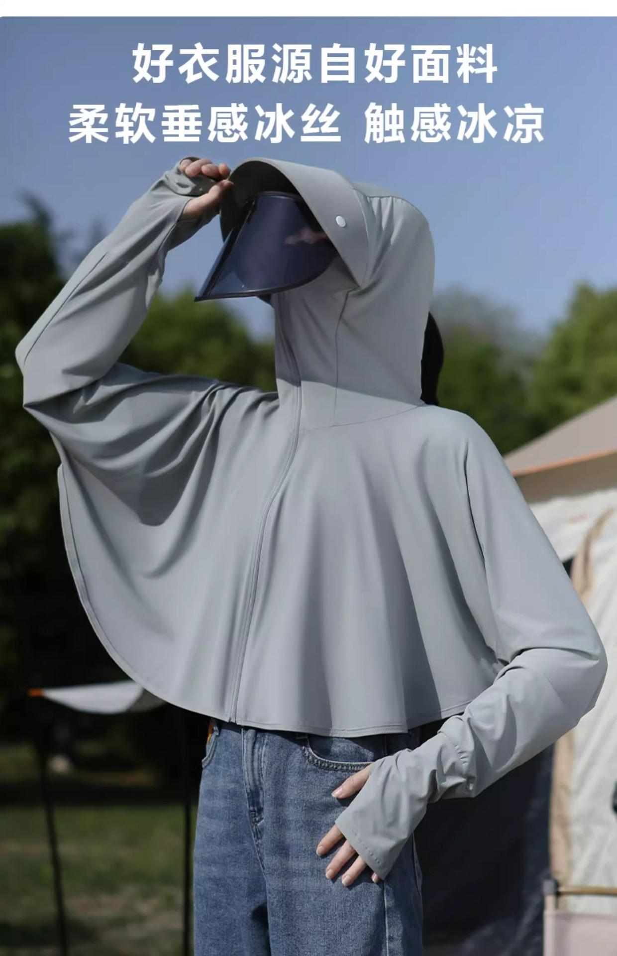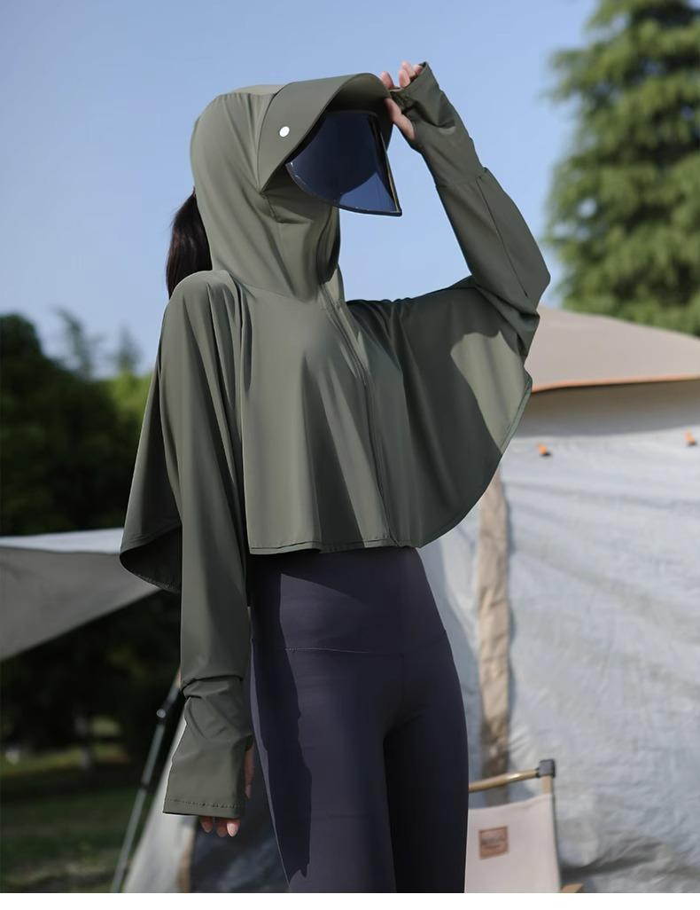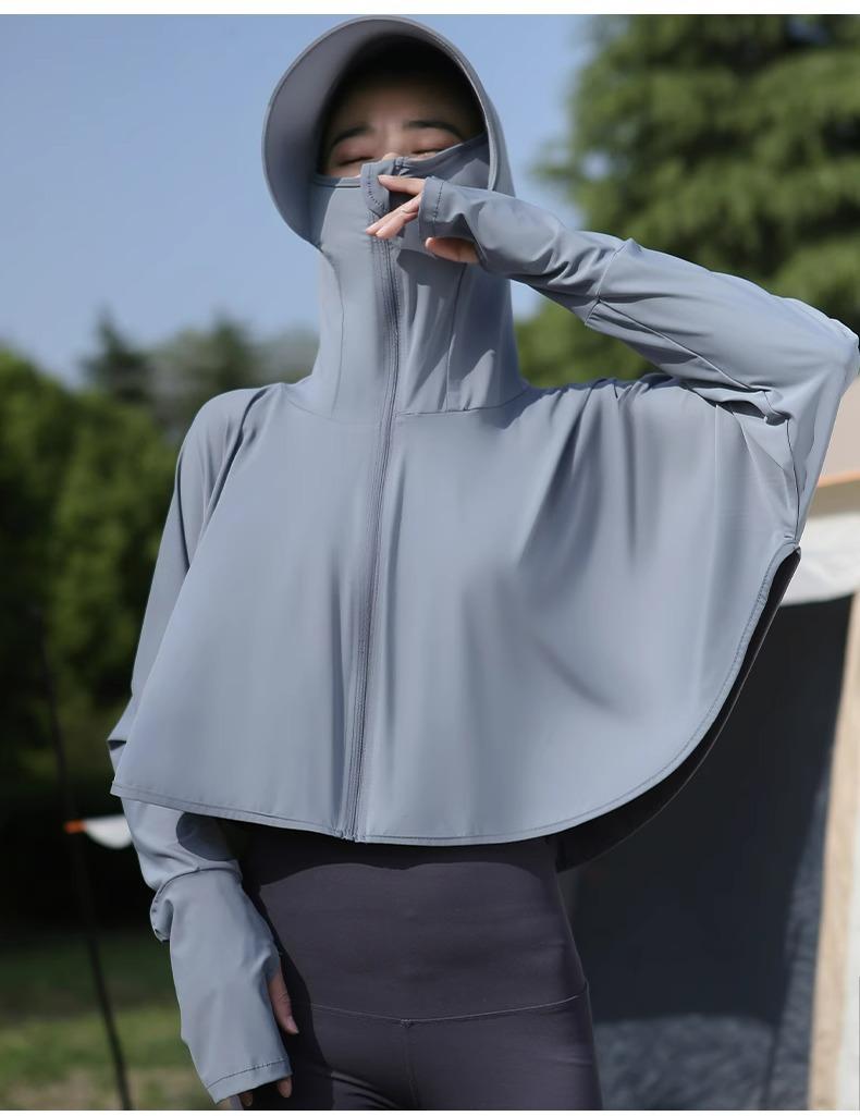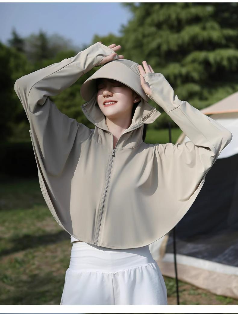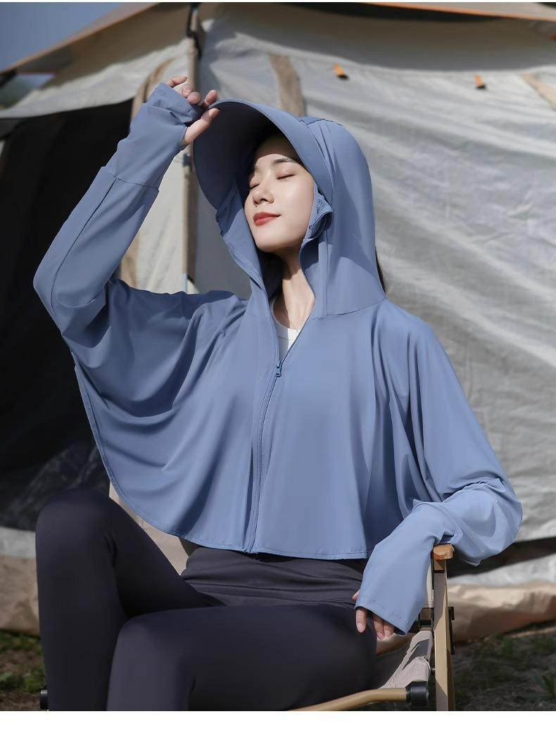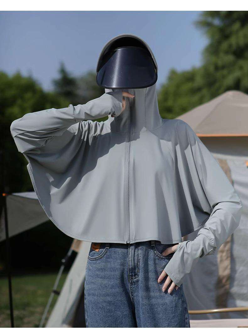 Blusa de Verano con Capucha para Exterior Anti-UV Seda de Hielo Ciclismo Ropa Fina de Protección Solar 2025 Verano Nuevo Ropa de Protección Solar para Mujer