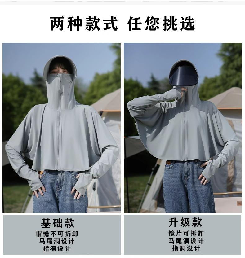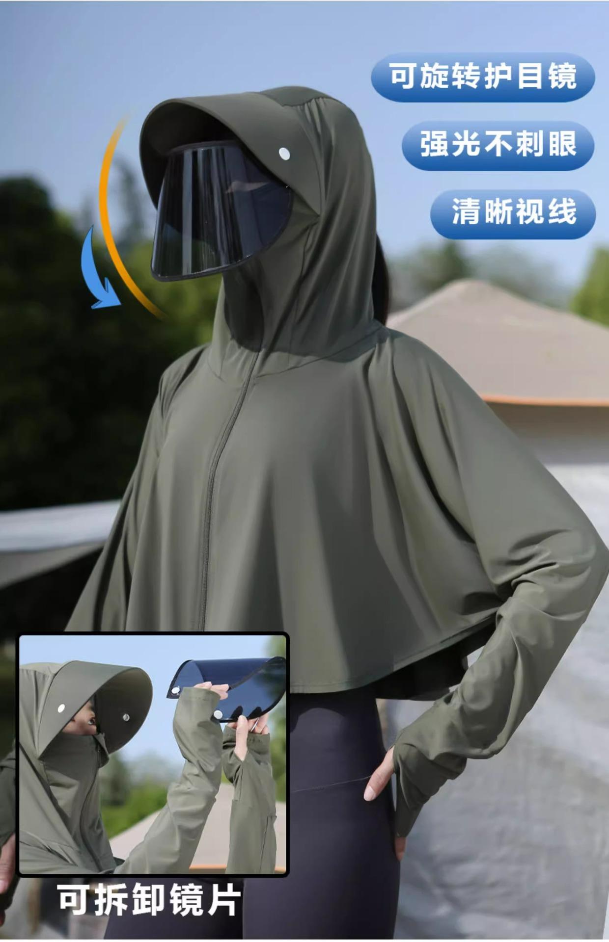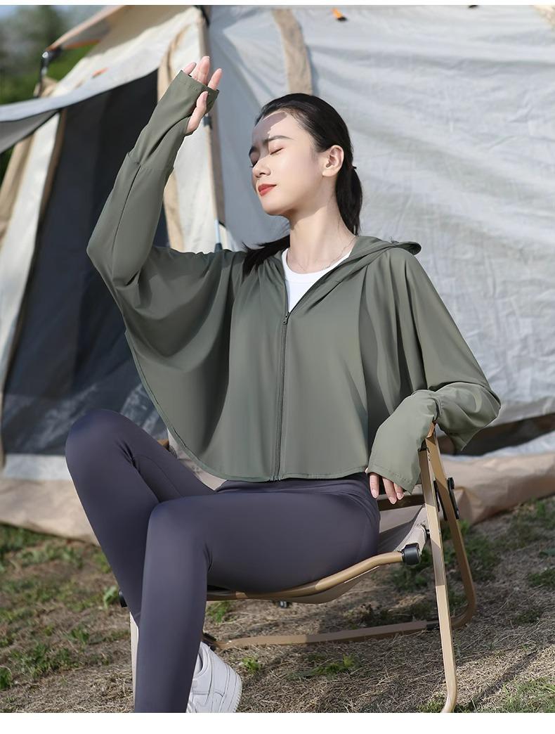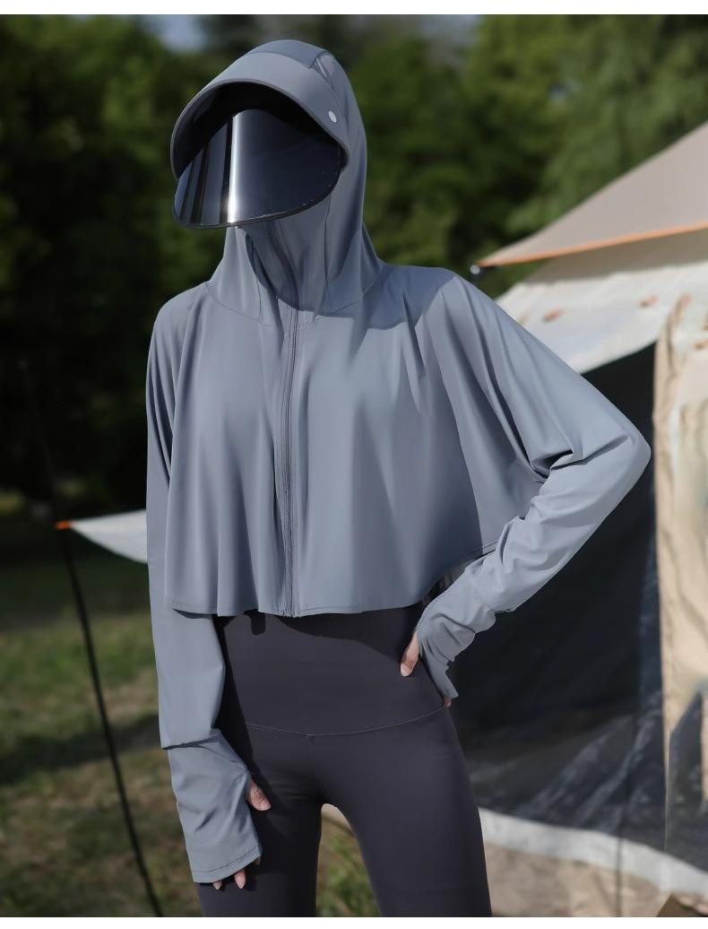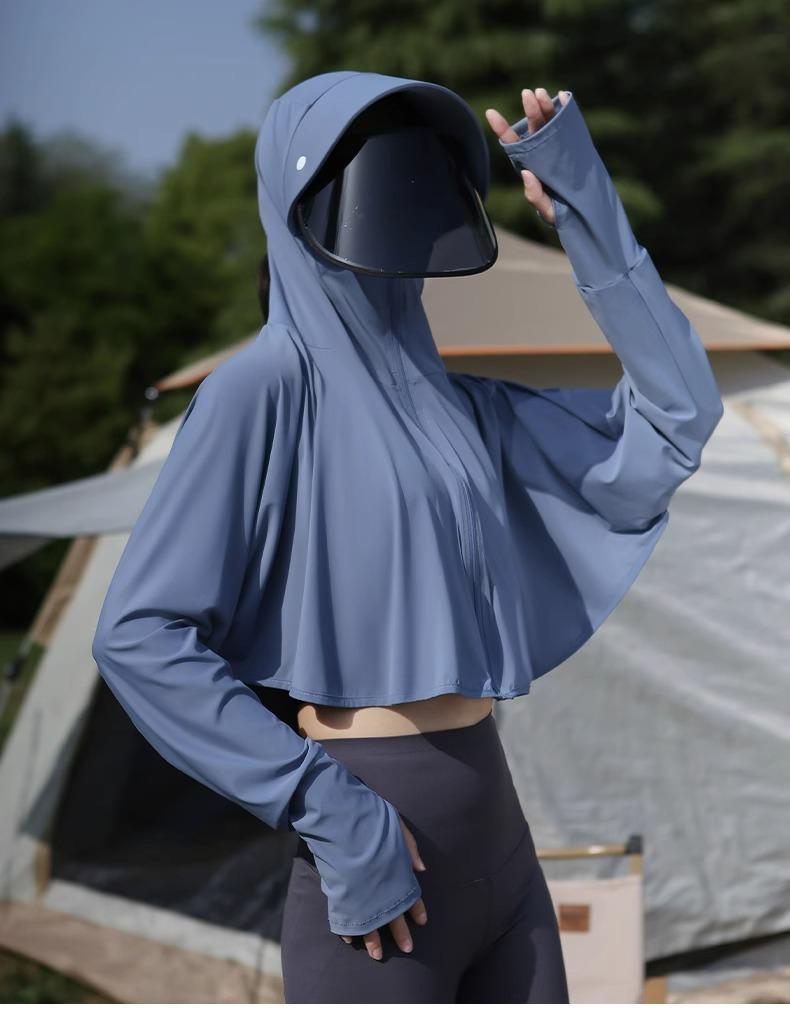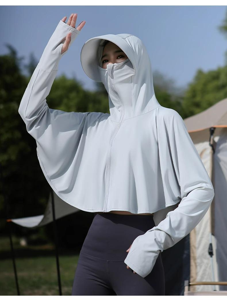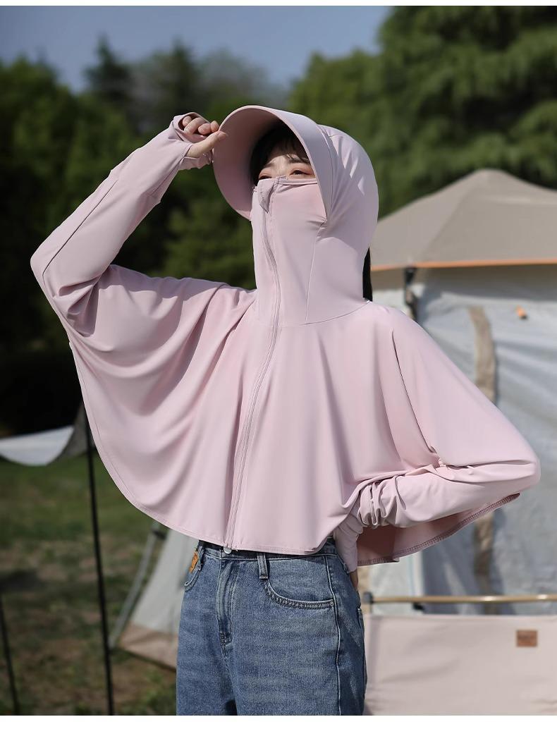 Blusa de Verano con Capucha para Exterior Anti-UV Seda de Hielo Ciclismo Ropa Fina de Protección Solar 2025 Verano Nuevo Ropa de Protección Solar para Mujer