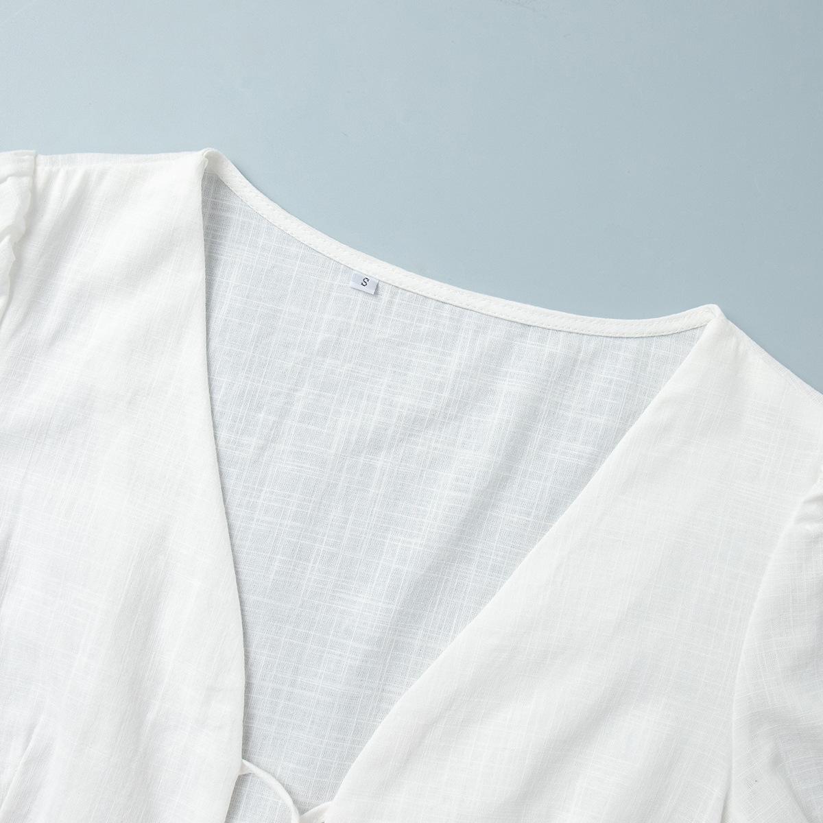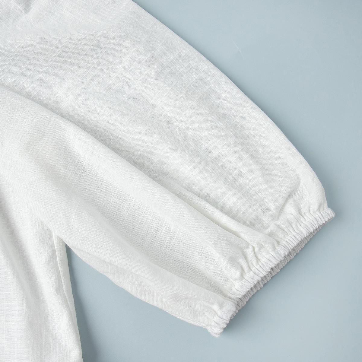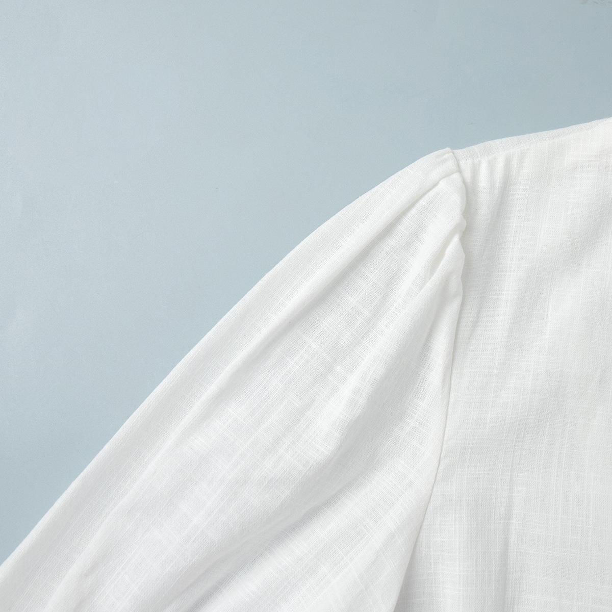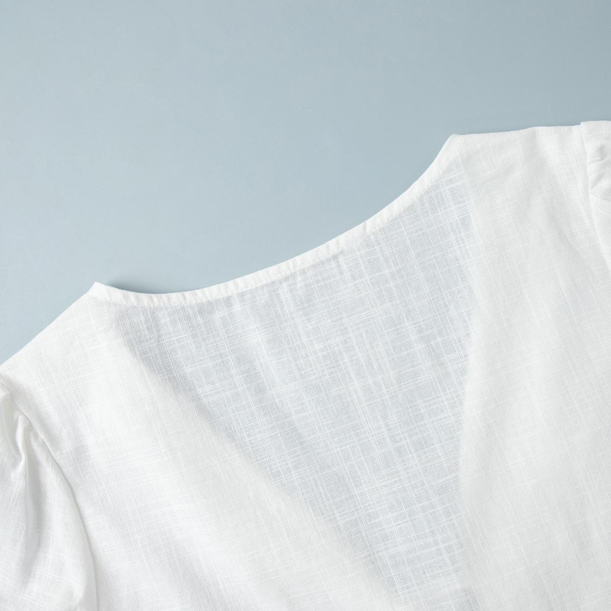 Traje de Falda de Algodón Puro Transfronterizo para Mujer Verano Europeo y Americano Camisa de Manga Abullonada + Falda Larga Traje Casual para Mujer