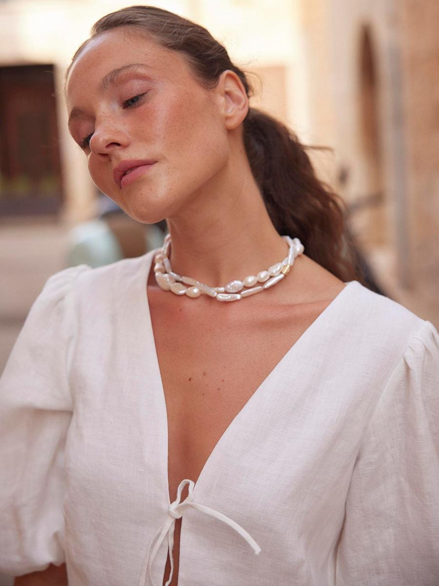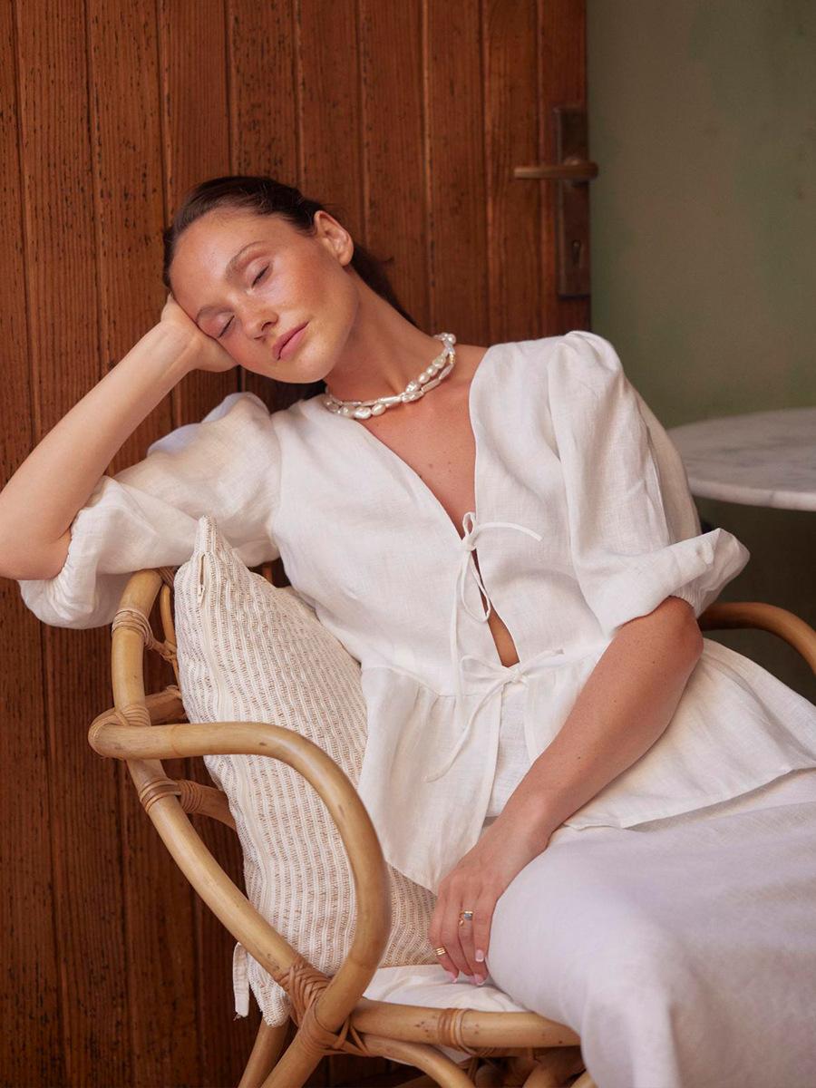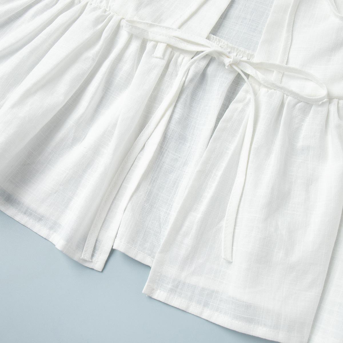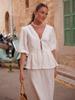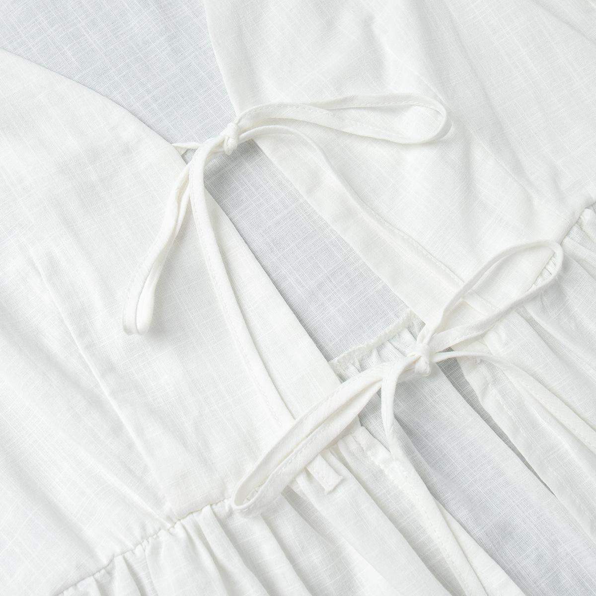Traje de Falda de Algodón Puro Transfronterizo para Mujer Verano Europeo y Americano Camisa de Manga Abullonada + Falda Larga Traje Casual para Mujer
