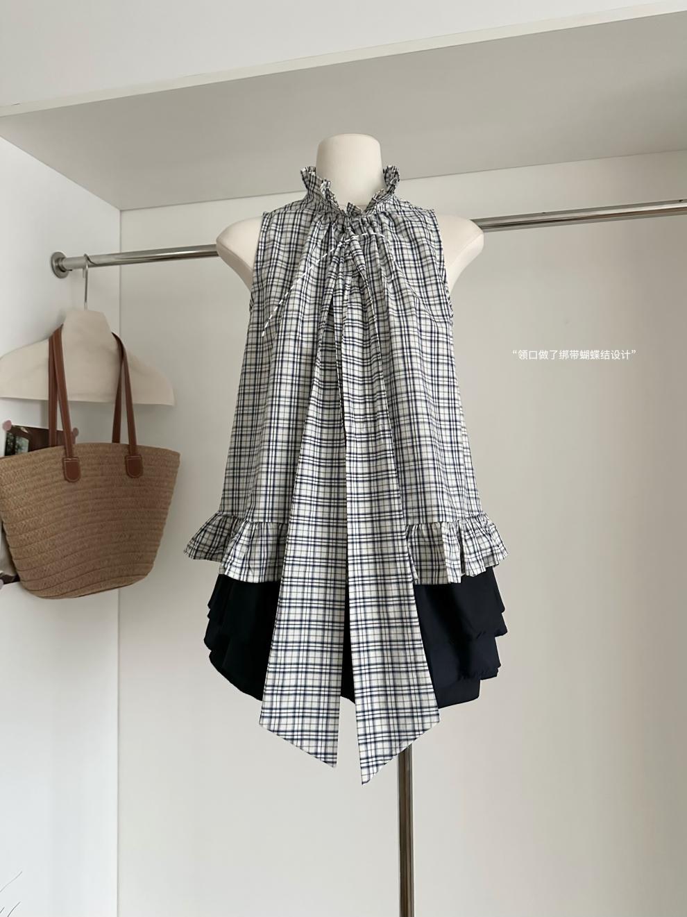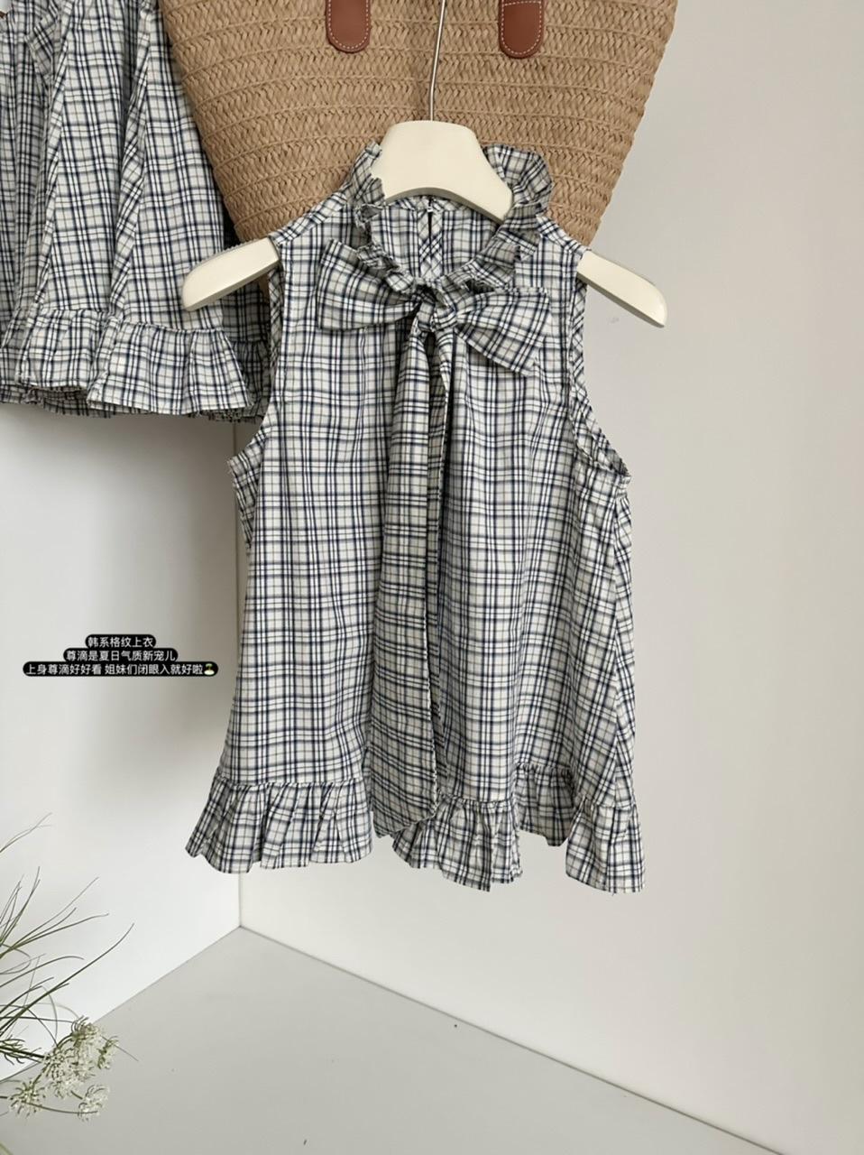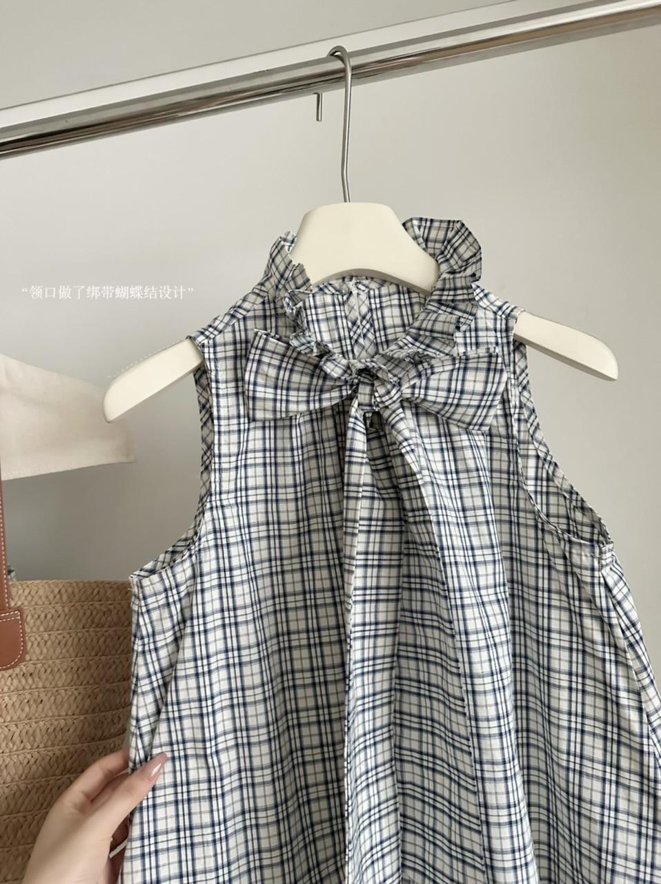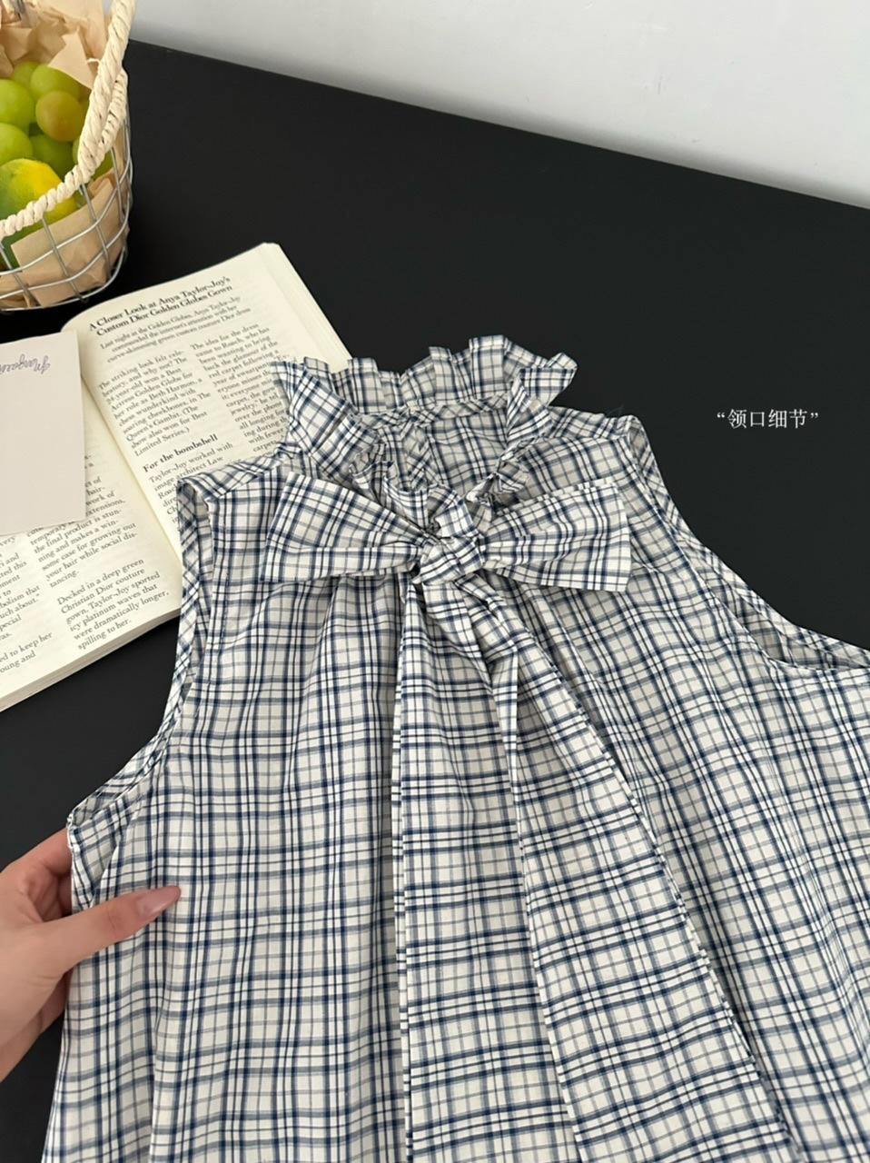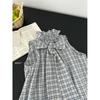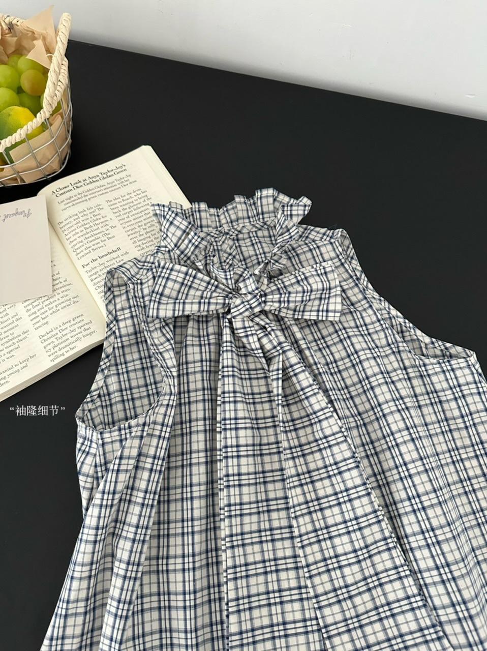 Corbata de Lazo Larga a Cuadros Top de Encaje Diseño de Verano para Mujer Chaleco Retro a Cuadros