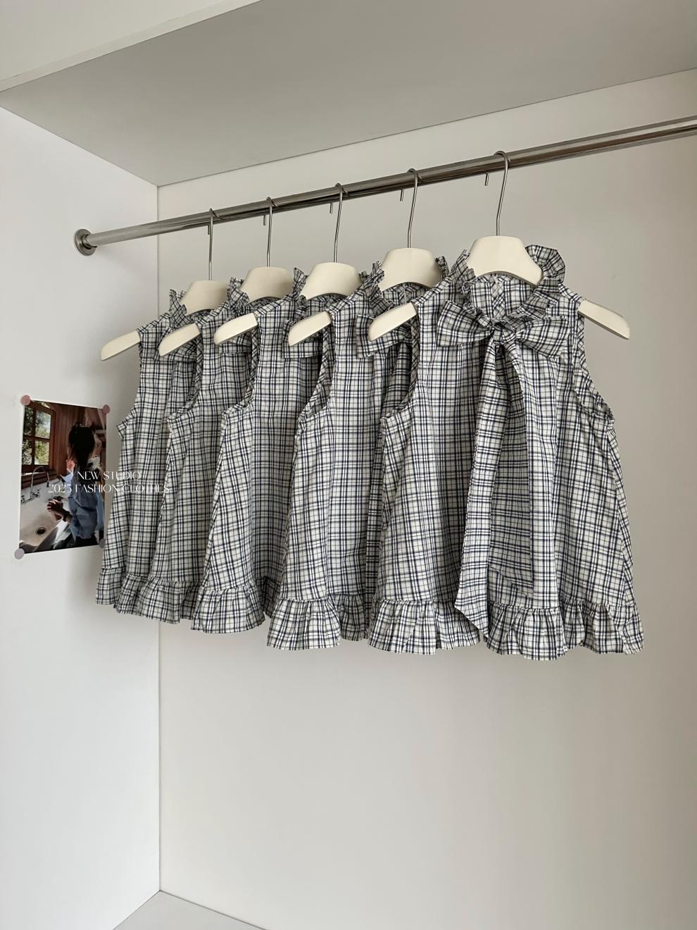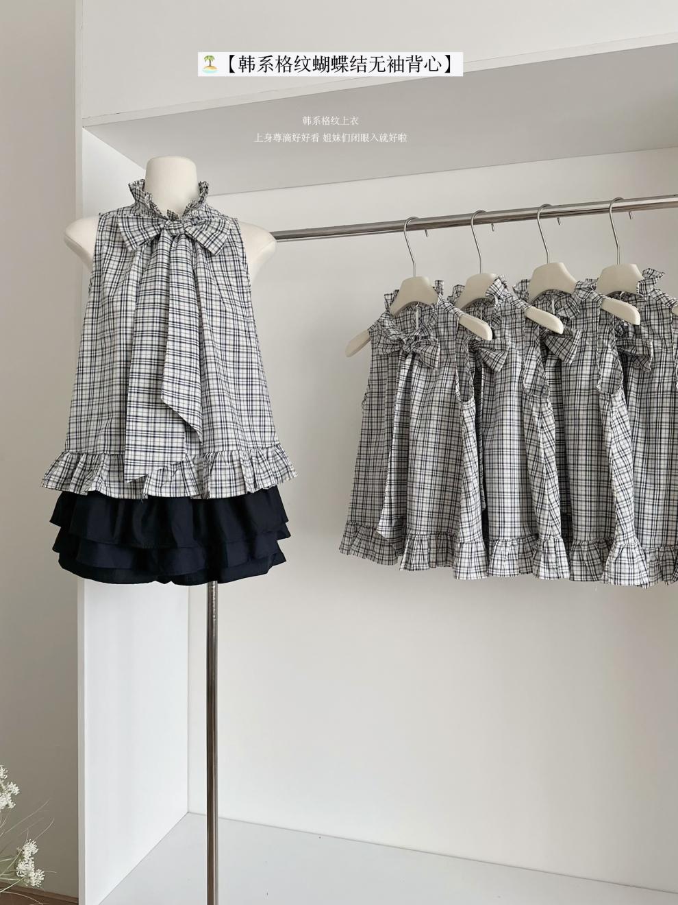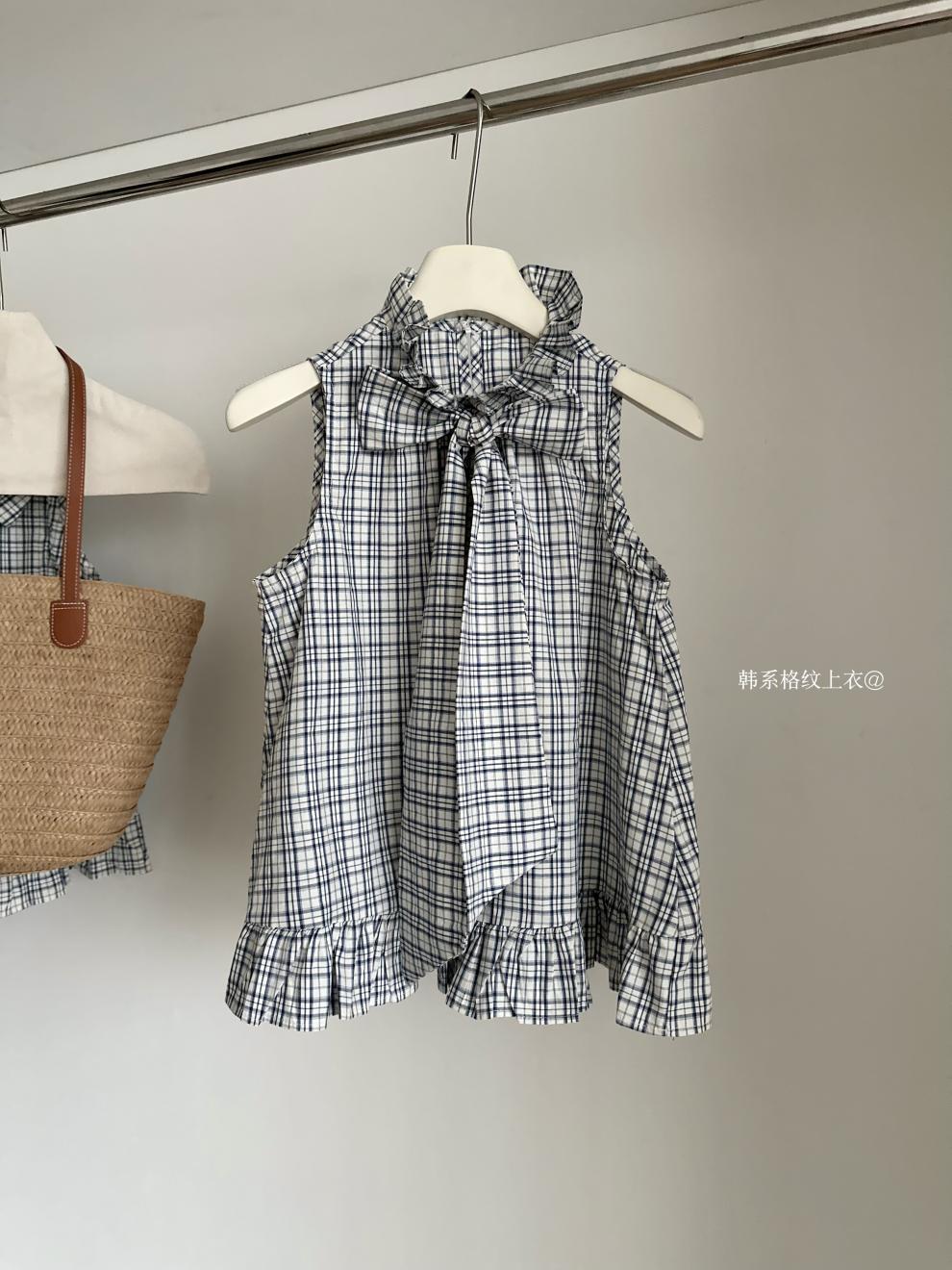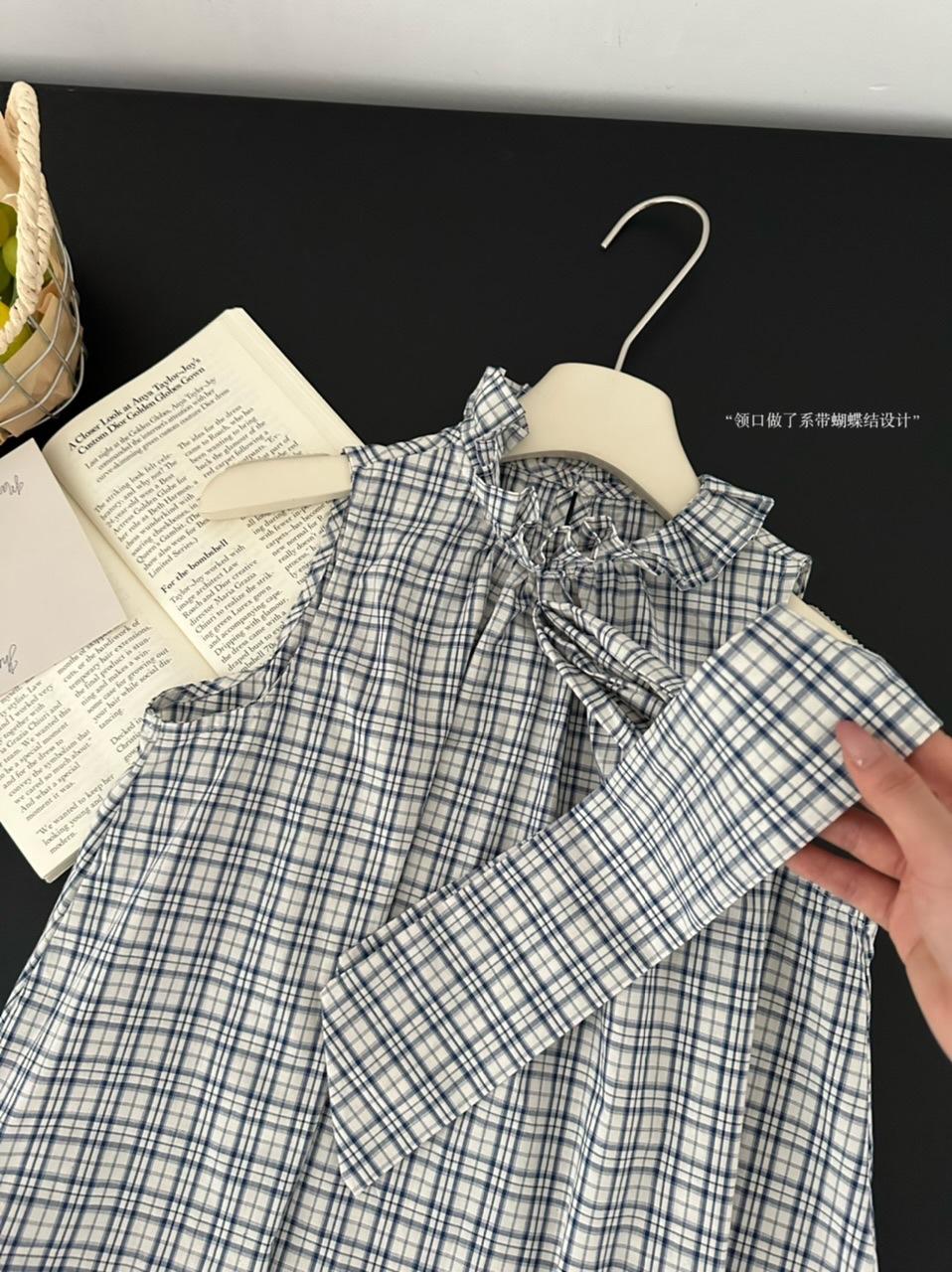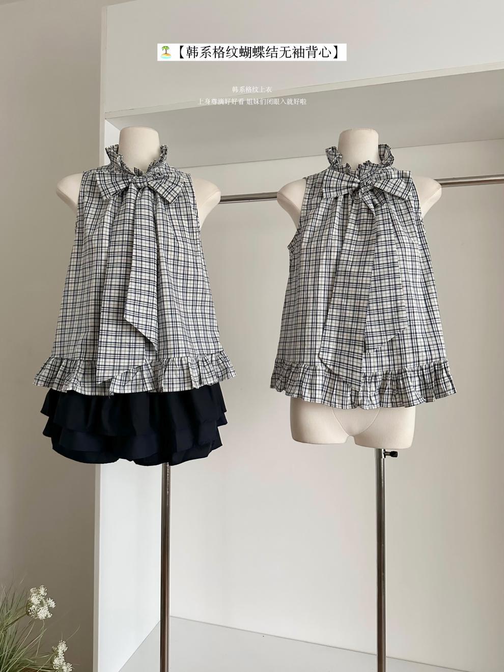 Corbata de Lazo Larga a Cuadros Top de Encaje Diseño de Verano para Mujer Chaleco Retro a Cuadros