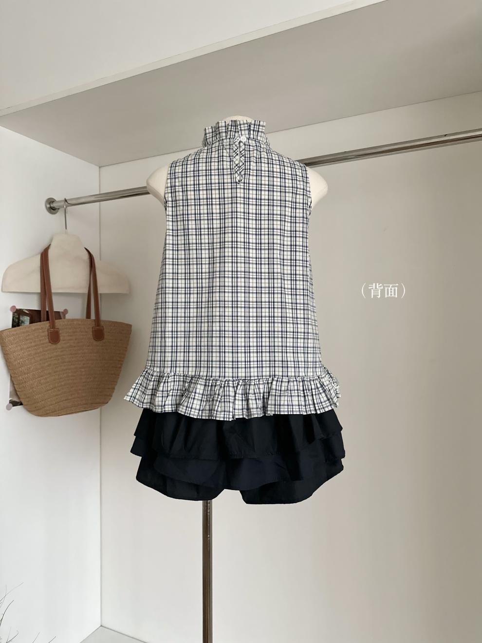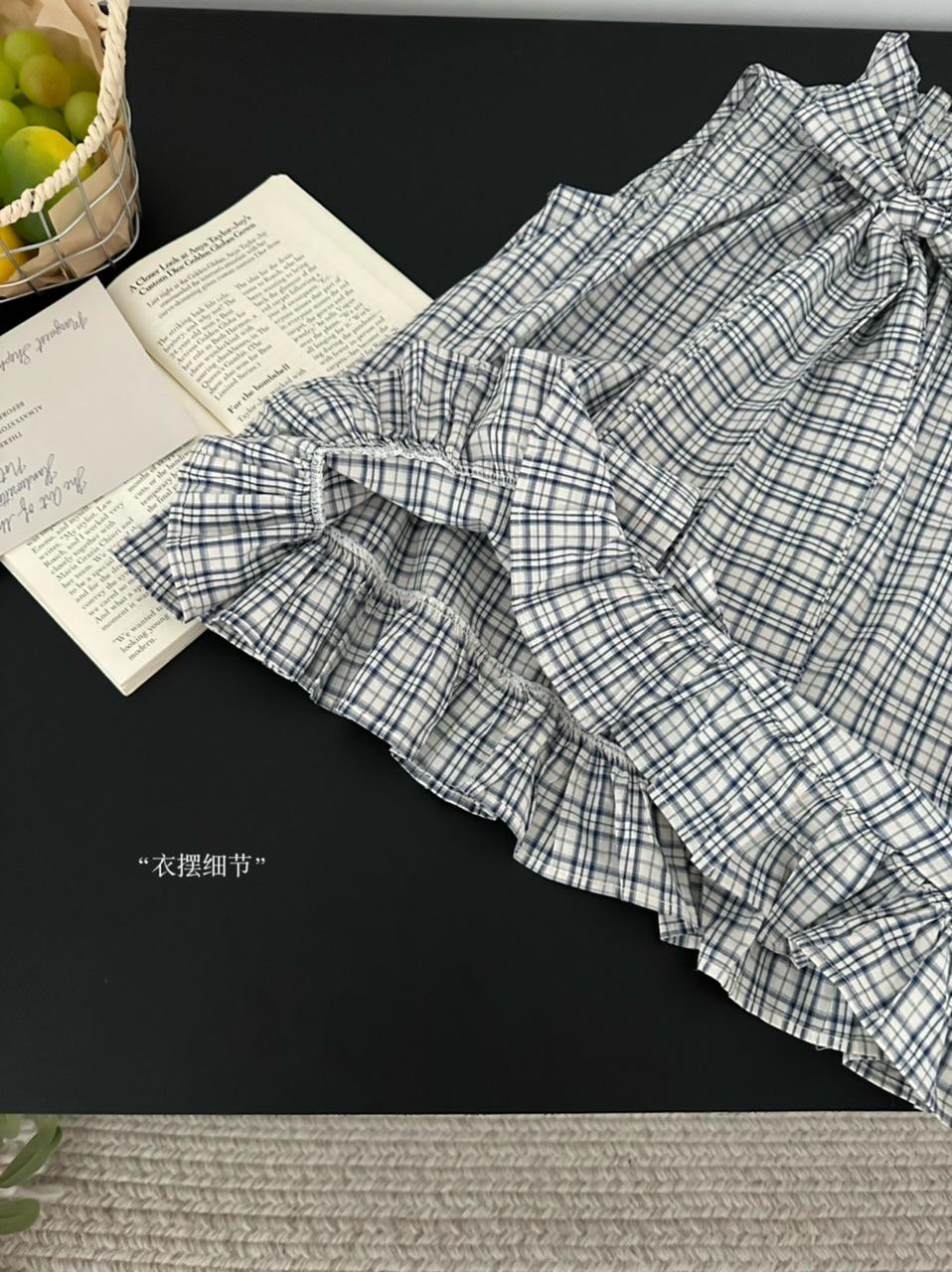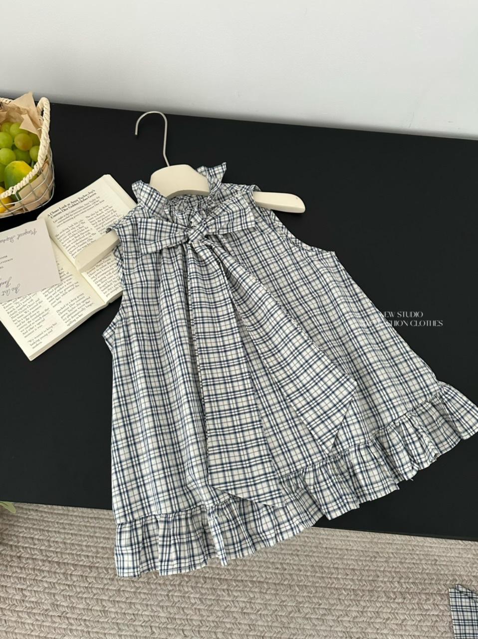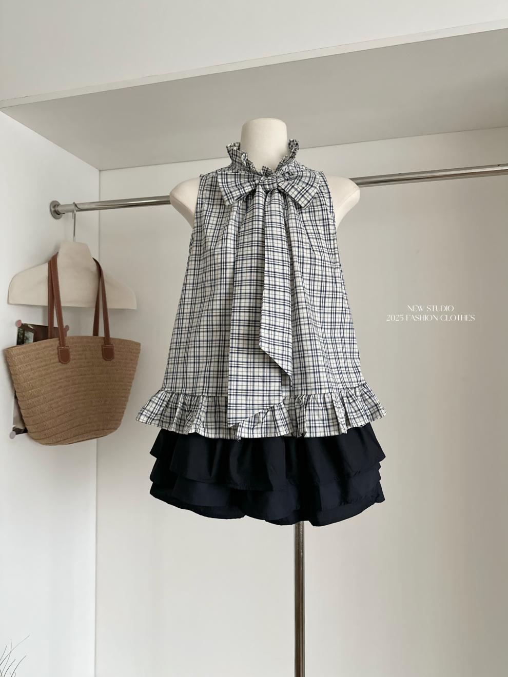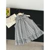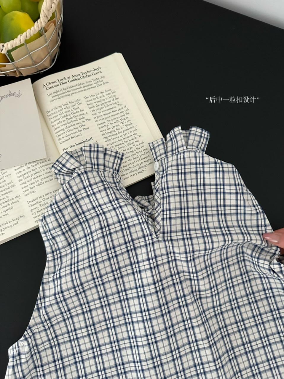 Corbata de Lazo Larga a Cuadros Top de Encaje Diseño de Verano para Mujer Chaleco Retro a Cuadros