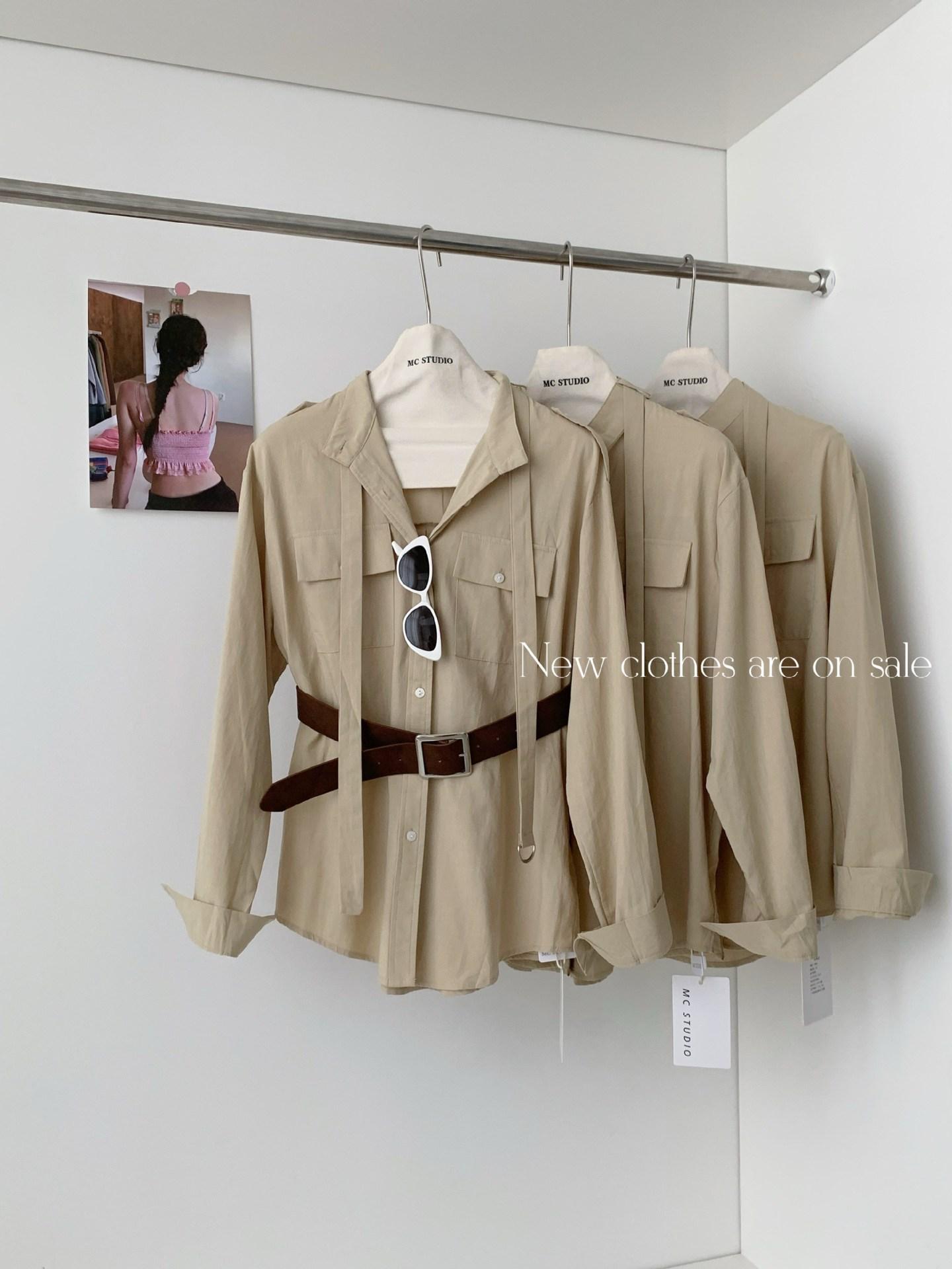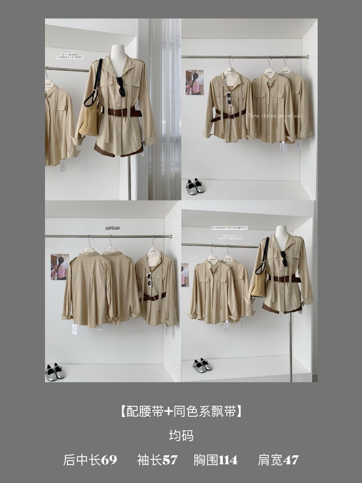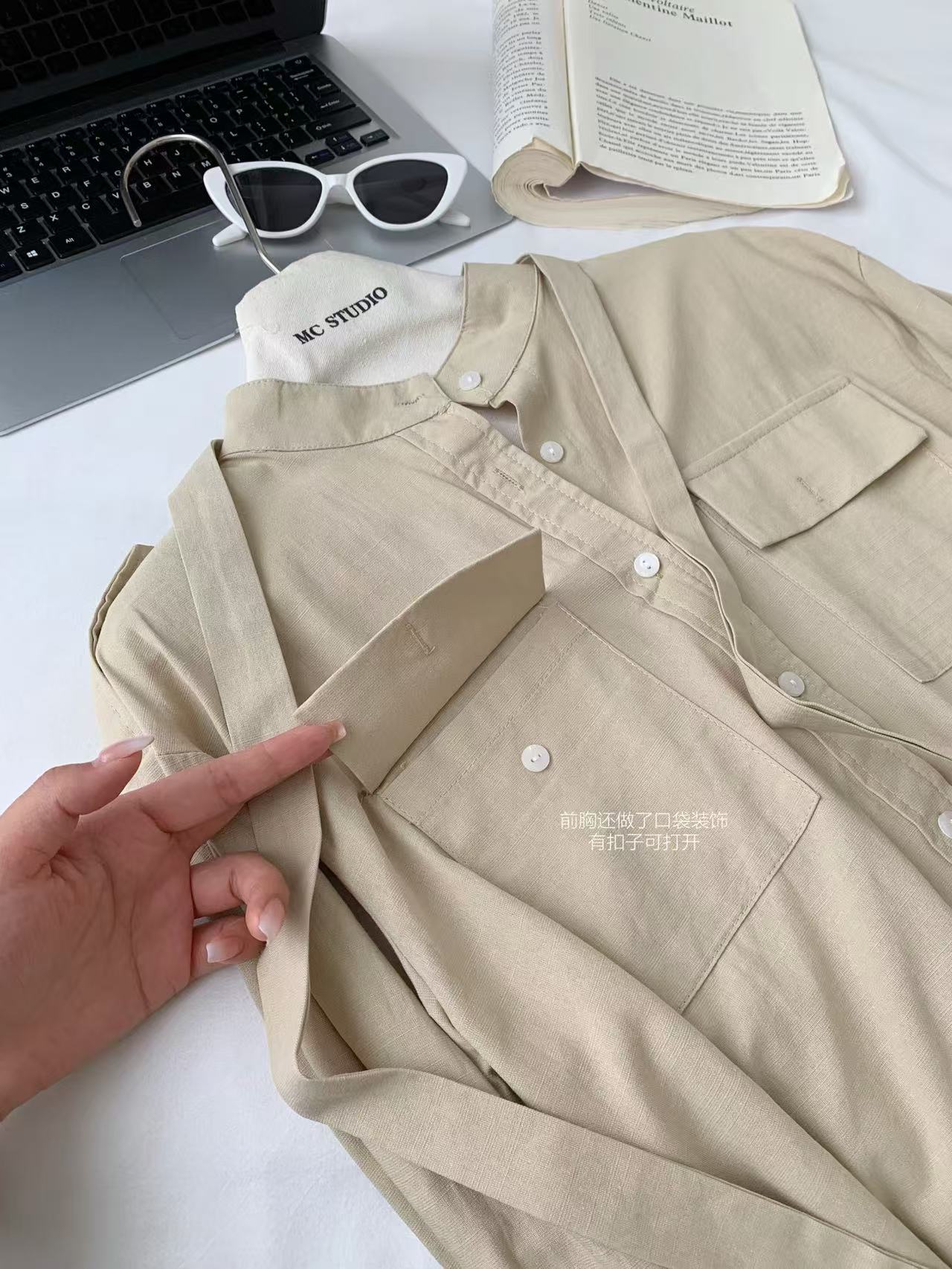 Camisa de moda de diseño nicho francés para mujer, temperamental, de largo medio, holgada, de una sola botonadura, con cinturón y manga larga