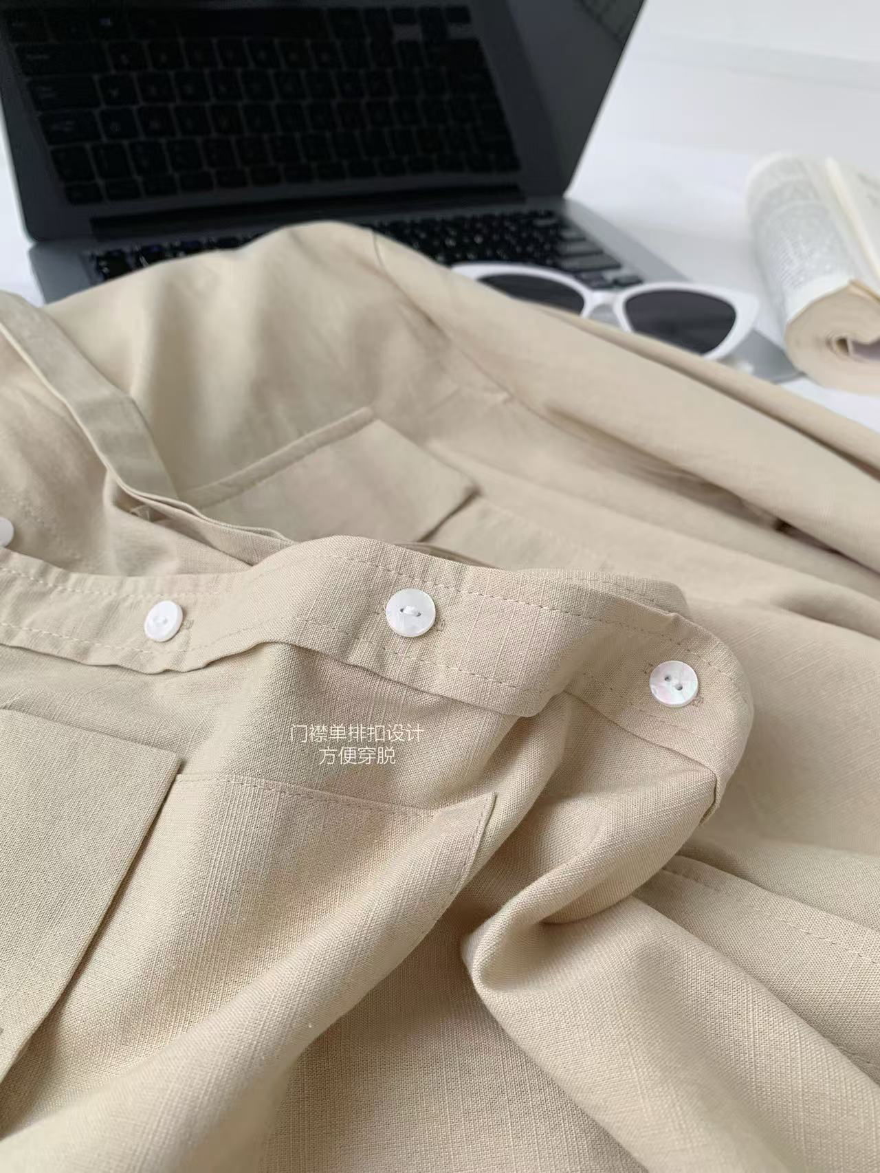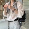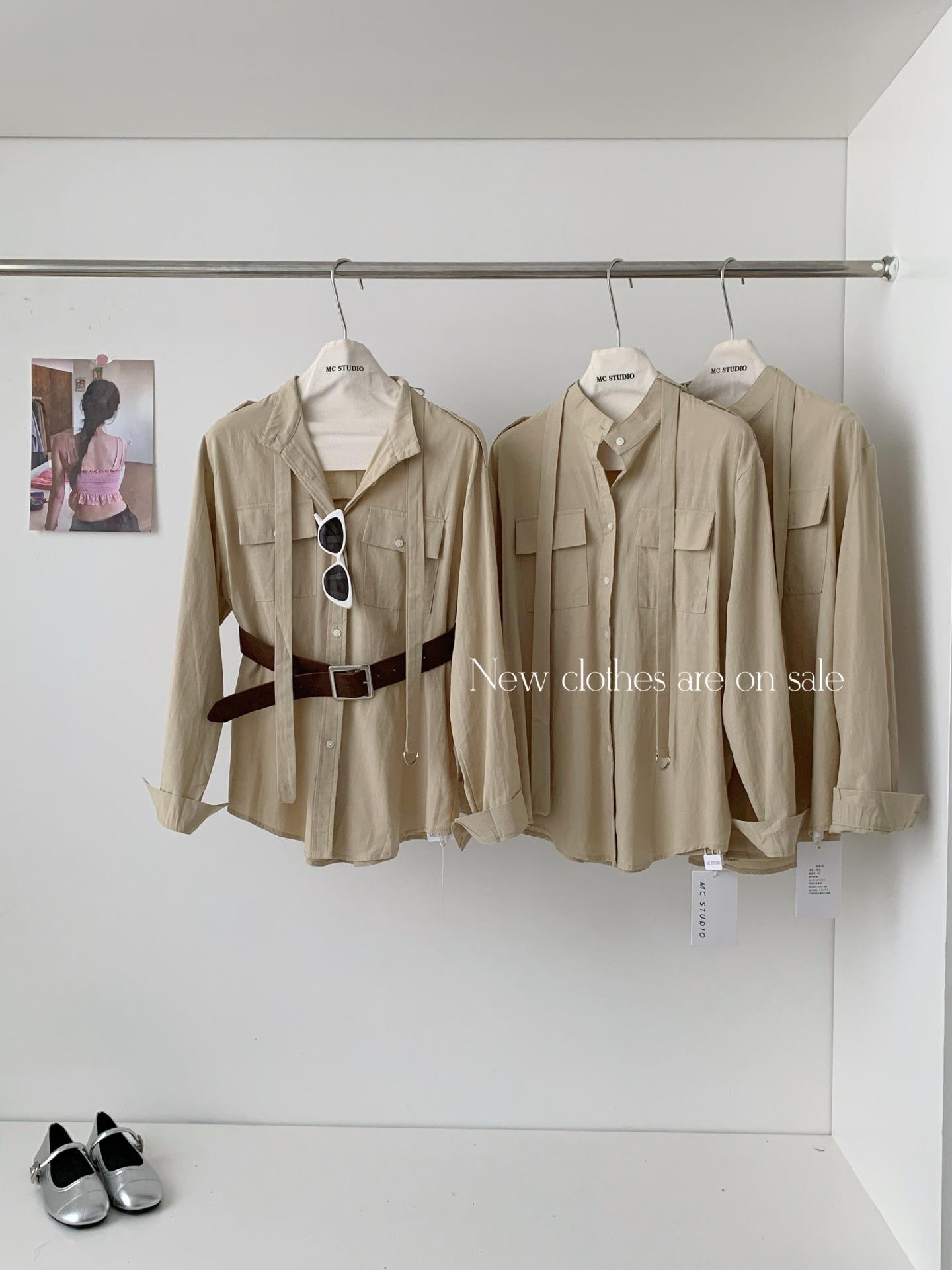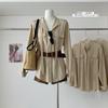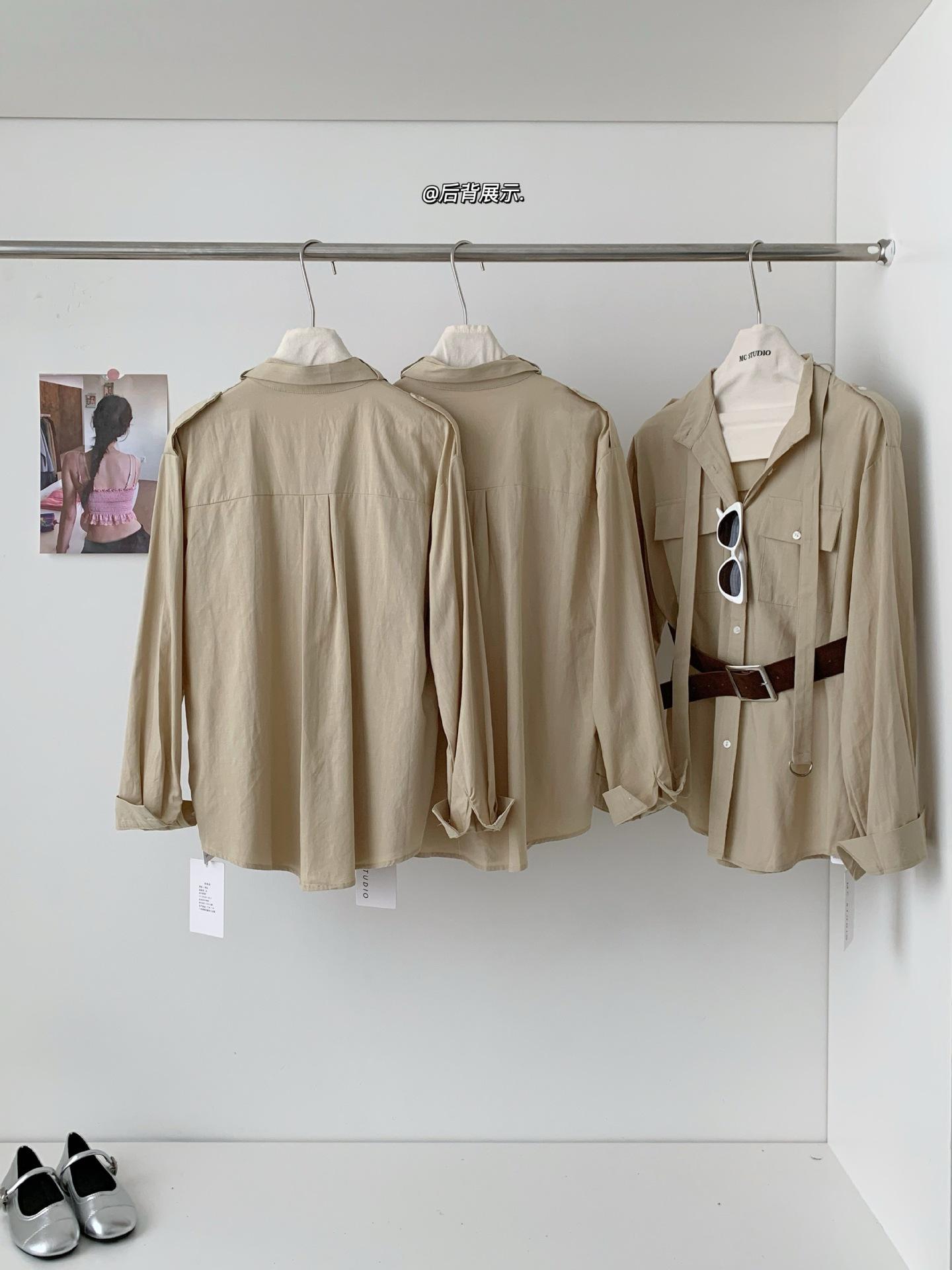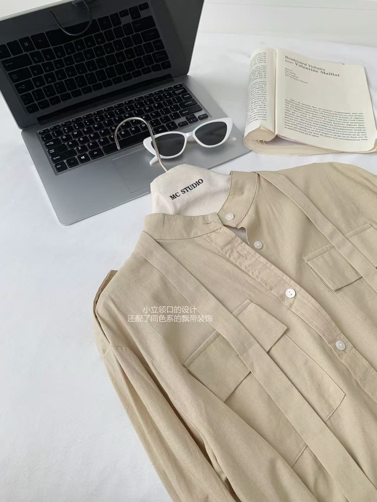 Camisa de moda de diseño nicho francés para mujer, temperamental, de largo medio, holgada, de una sola botonadura, con cinturón y manga larga