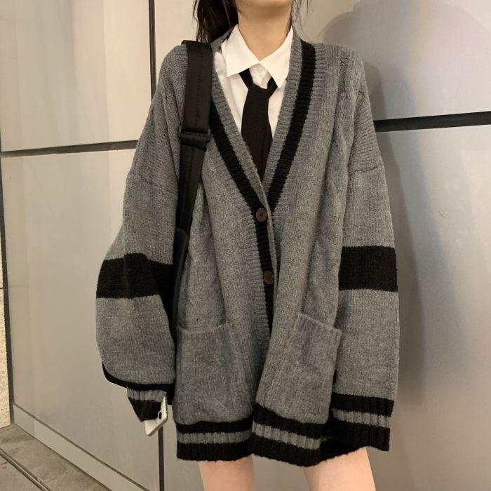 Suéter estilo primavera y otoño estilo holgado perezoso nuevo abrigo cárdigan ropa de mujer estilo europeo estilo universitario conjunto atuendo estilo coreano