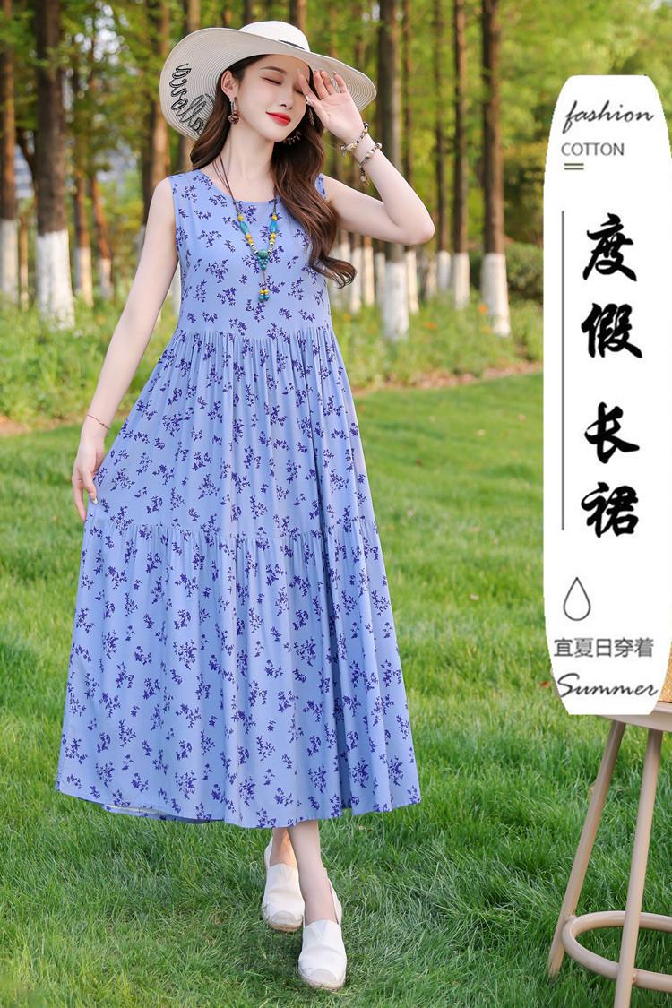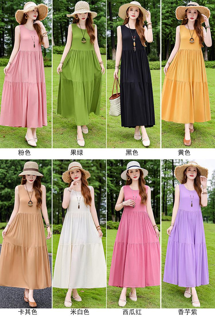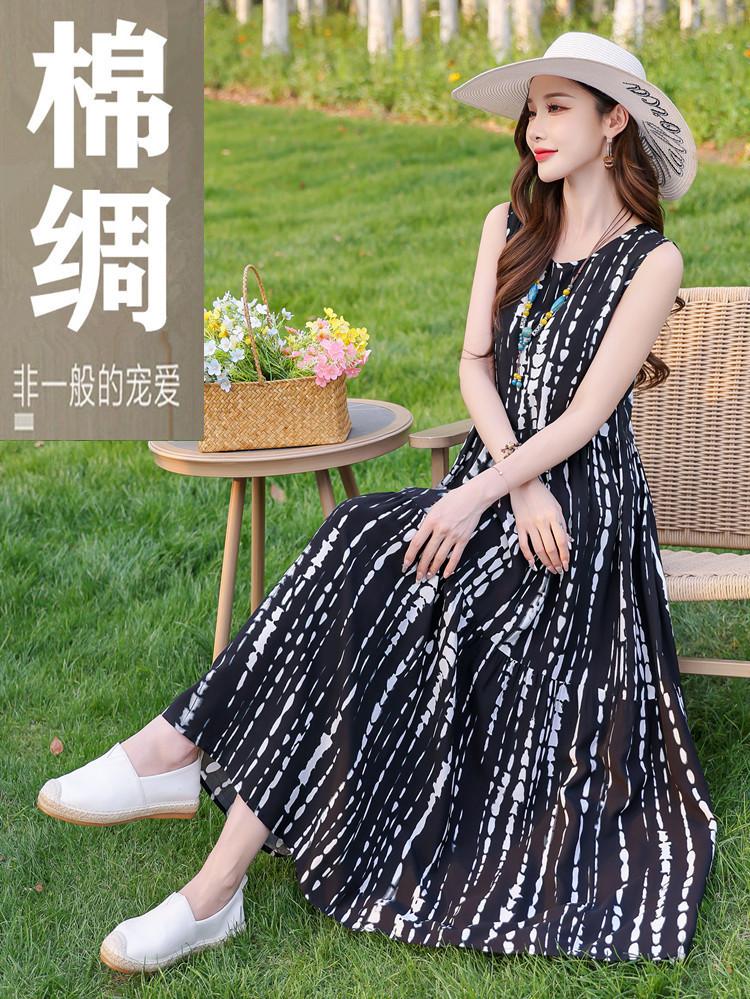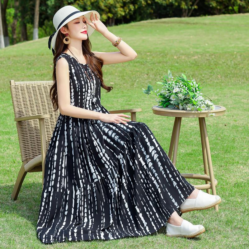 Vestido de Algodón Seda Ropa Exterior Tirantes Sin Mangas Vestido Chaleco Verano Vestido de Playa Vacaciones Junto al Mar Hada Vestido Largo