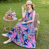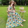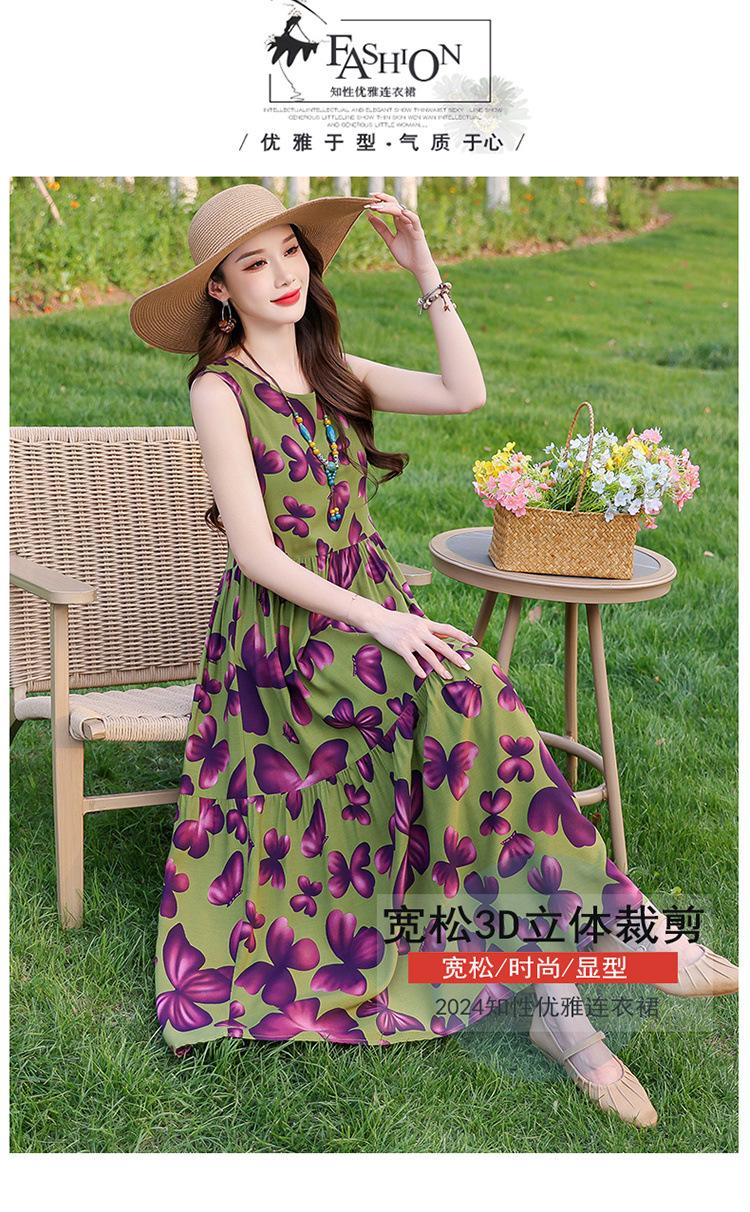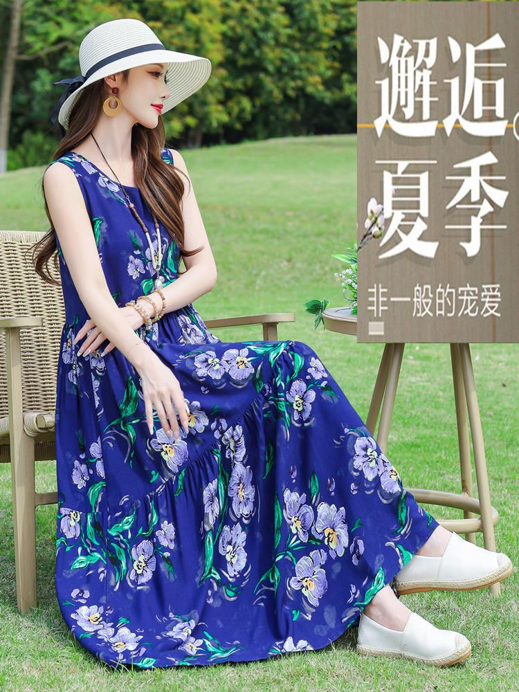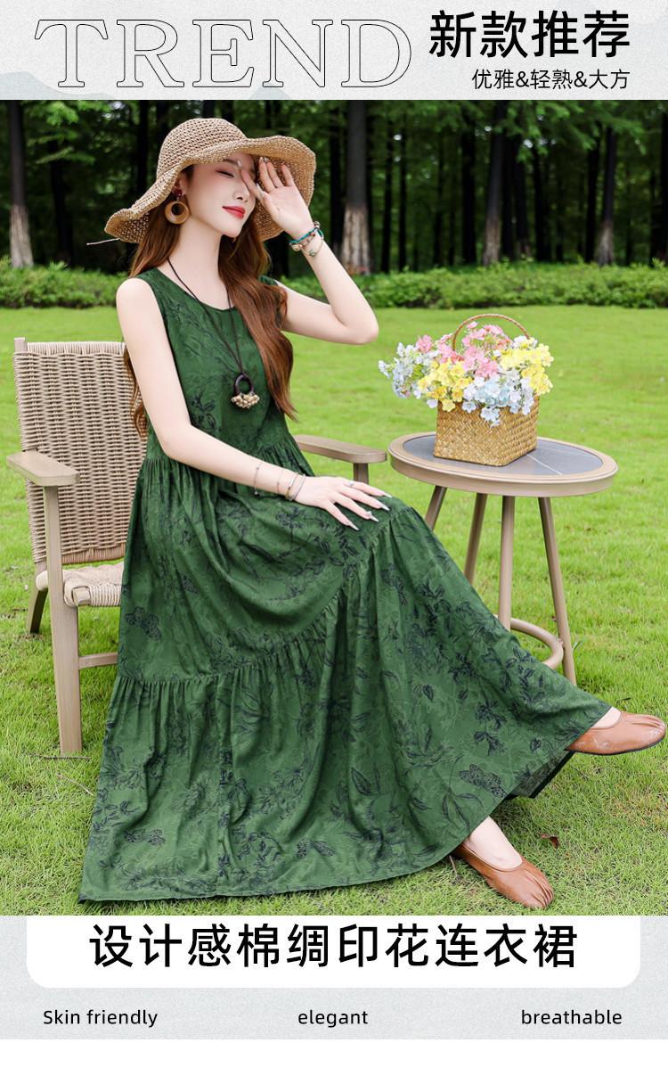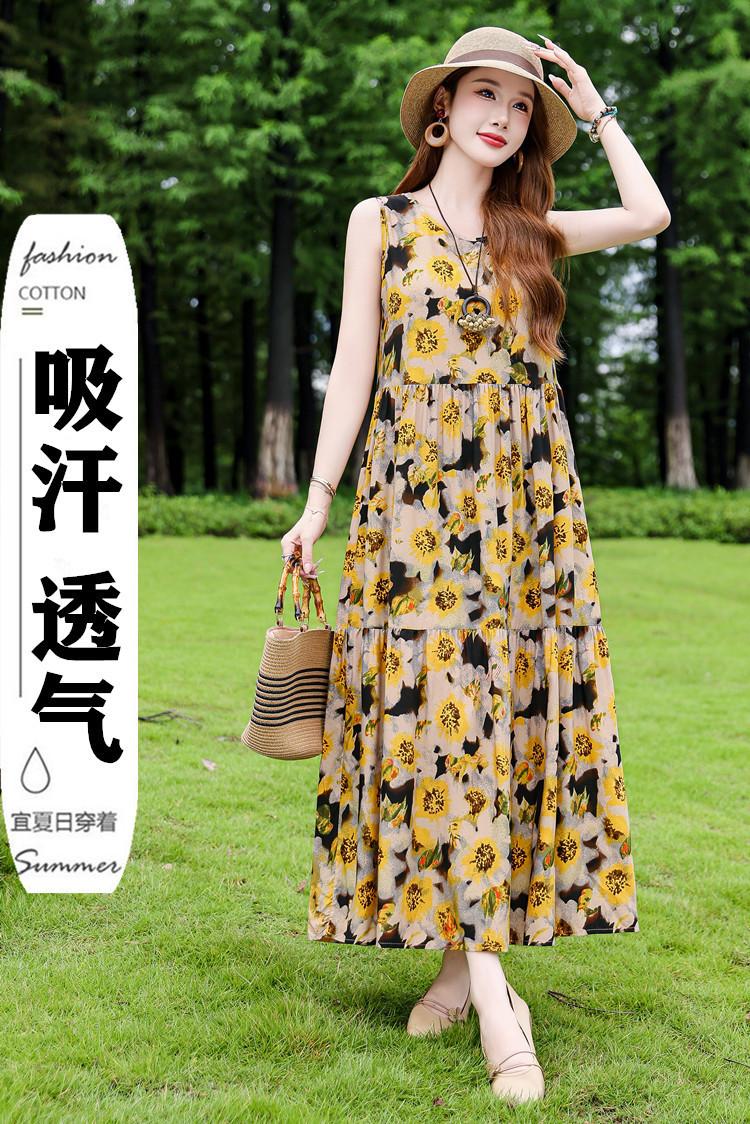 Vestido de Algodón Seda Ropa Exterior Tirantes Sin Mangas Vestido Chaleco Verano Vestido de Playa Vacaciones Junto al Mar Hada Vestido Largo