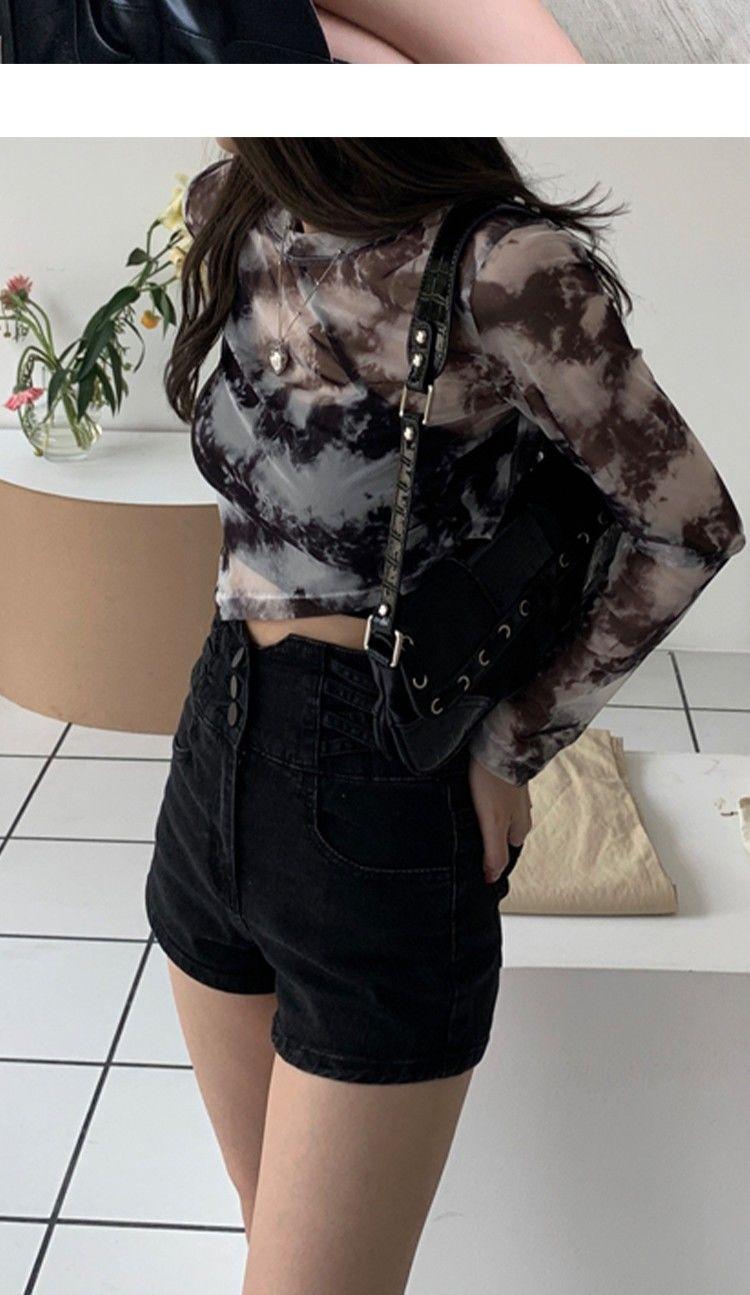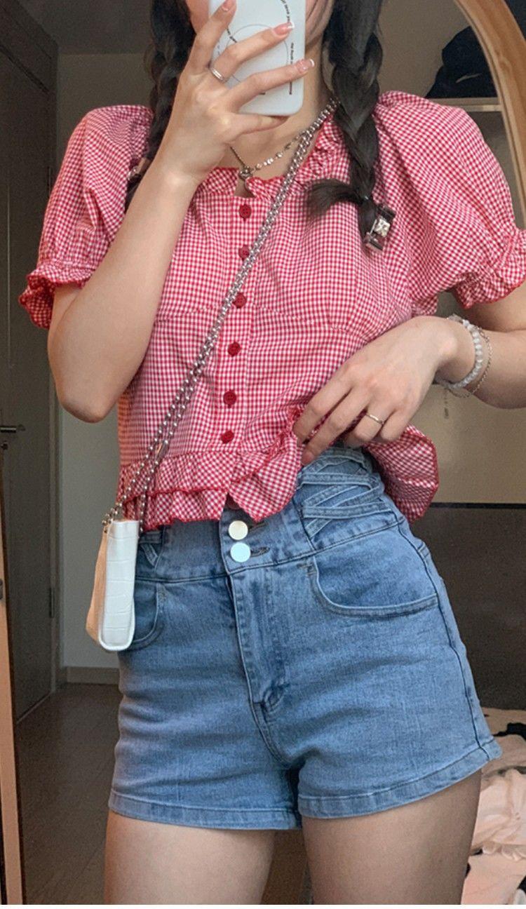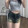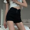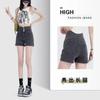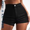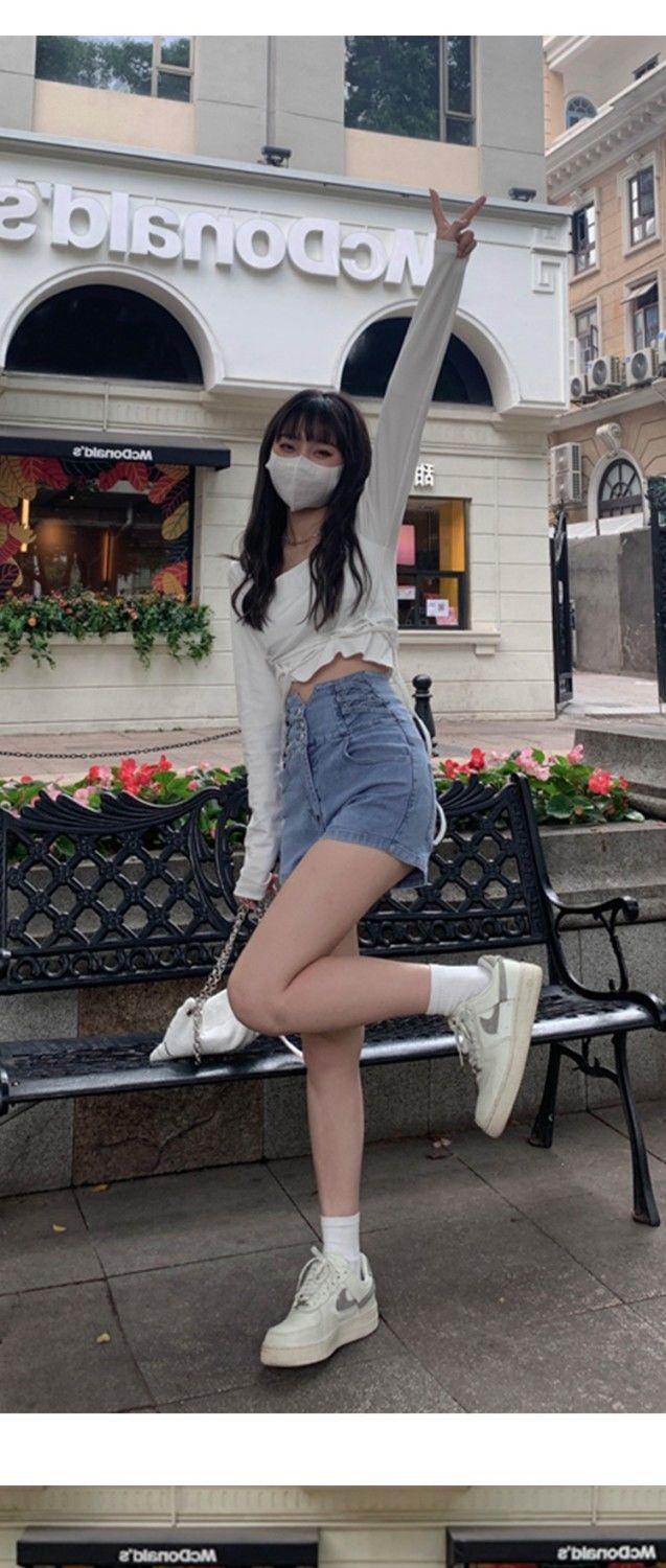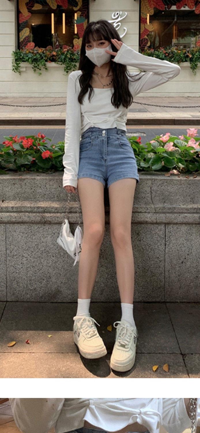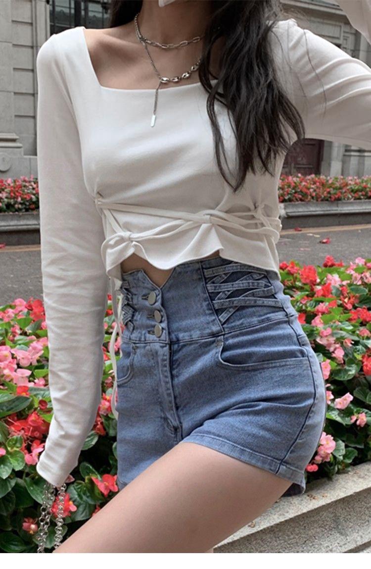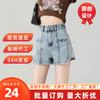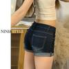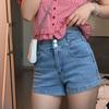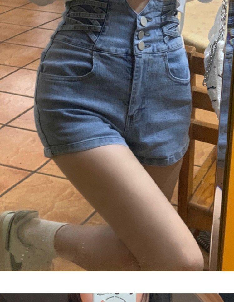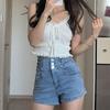 Pantalones cortos nuevos de cintura cruzada con tres botones Azul claro 2025 Shorts de mezclilla delgados de verano para mujer para lucir delgada