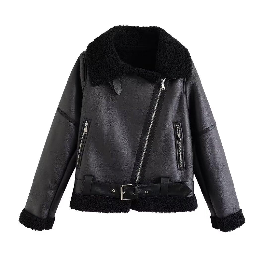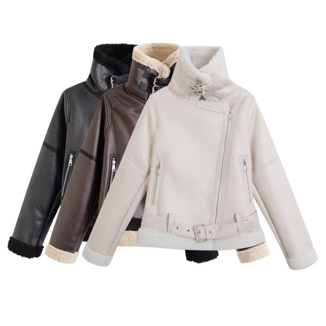 Ropa de mujer transfronteriza europea y americana al por mayor Estilo europeo y americano invierno nueva moda versátil piel una pieza cálida chaqueta abrigo