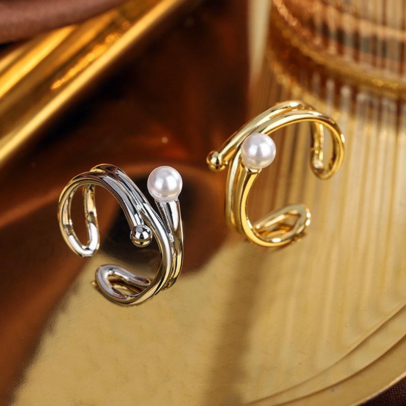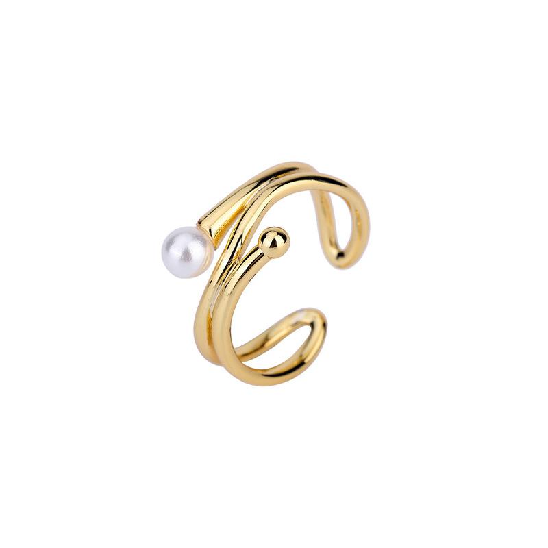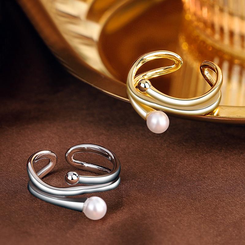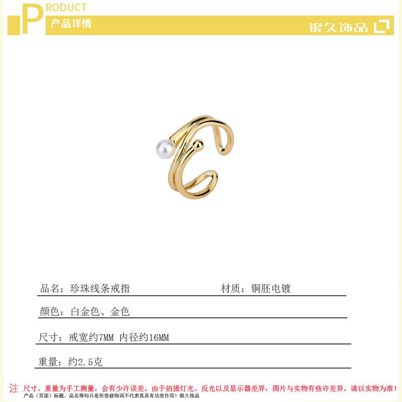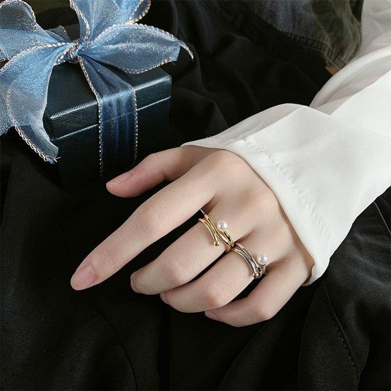 Anillo de línea de perlas de moda, temperamento, viento frío, línea sinuosa, apertura, anillo para el dedo índice, joyería, suministro al por mayor
