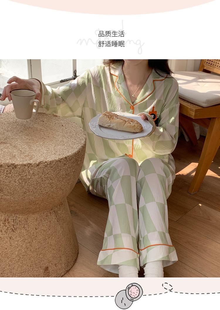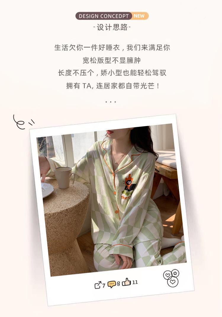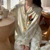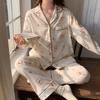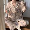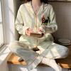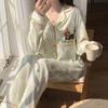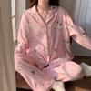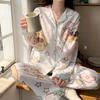 Pijama nuevo de primavera para mujer, cárdigan de solapa de algodón con nubes, pantalones de manga larga, traje de ropa de casa para niña linda y dulce