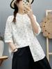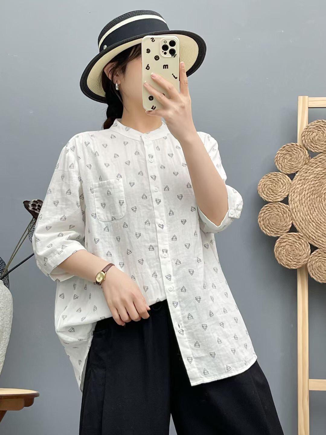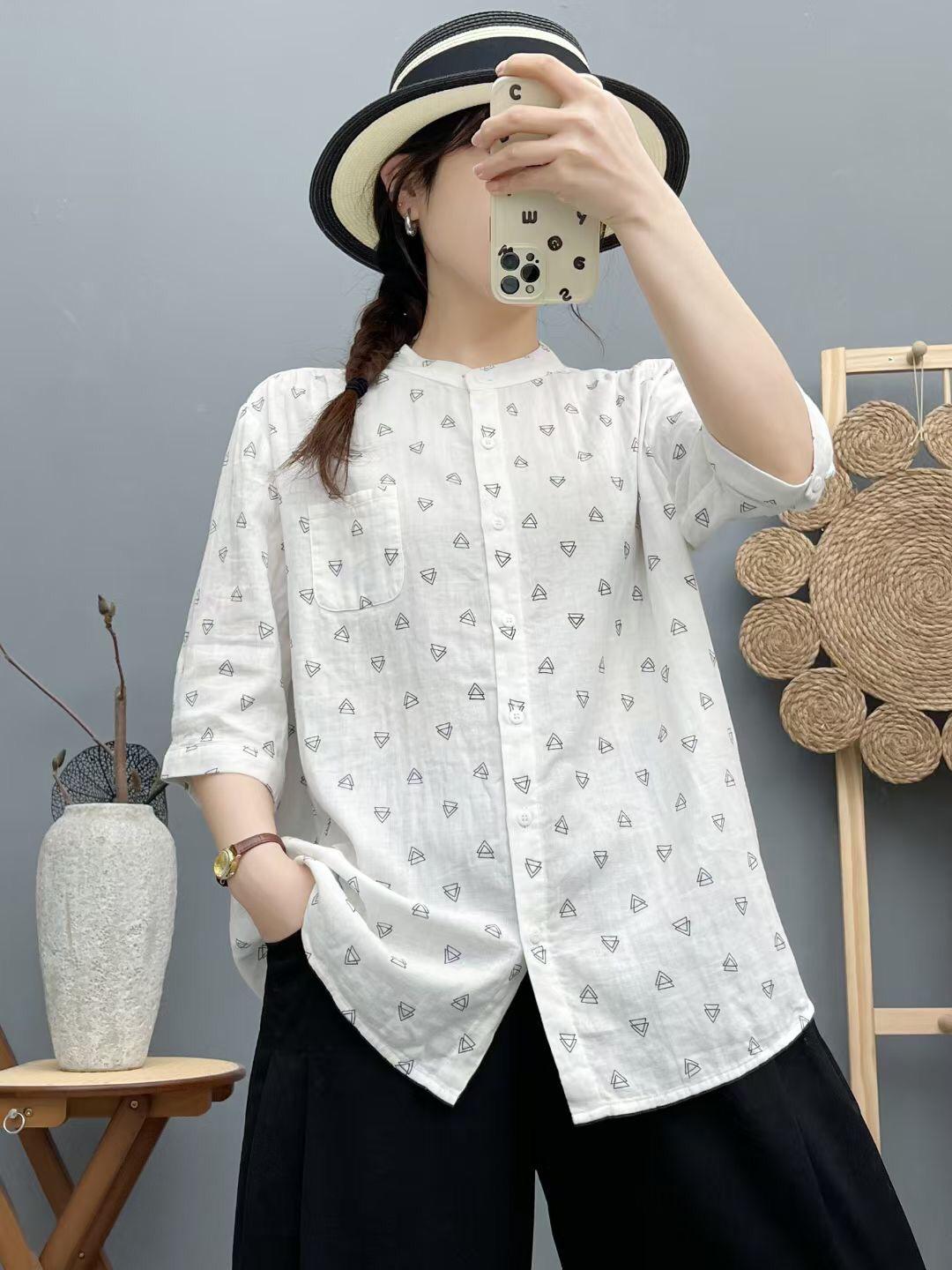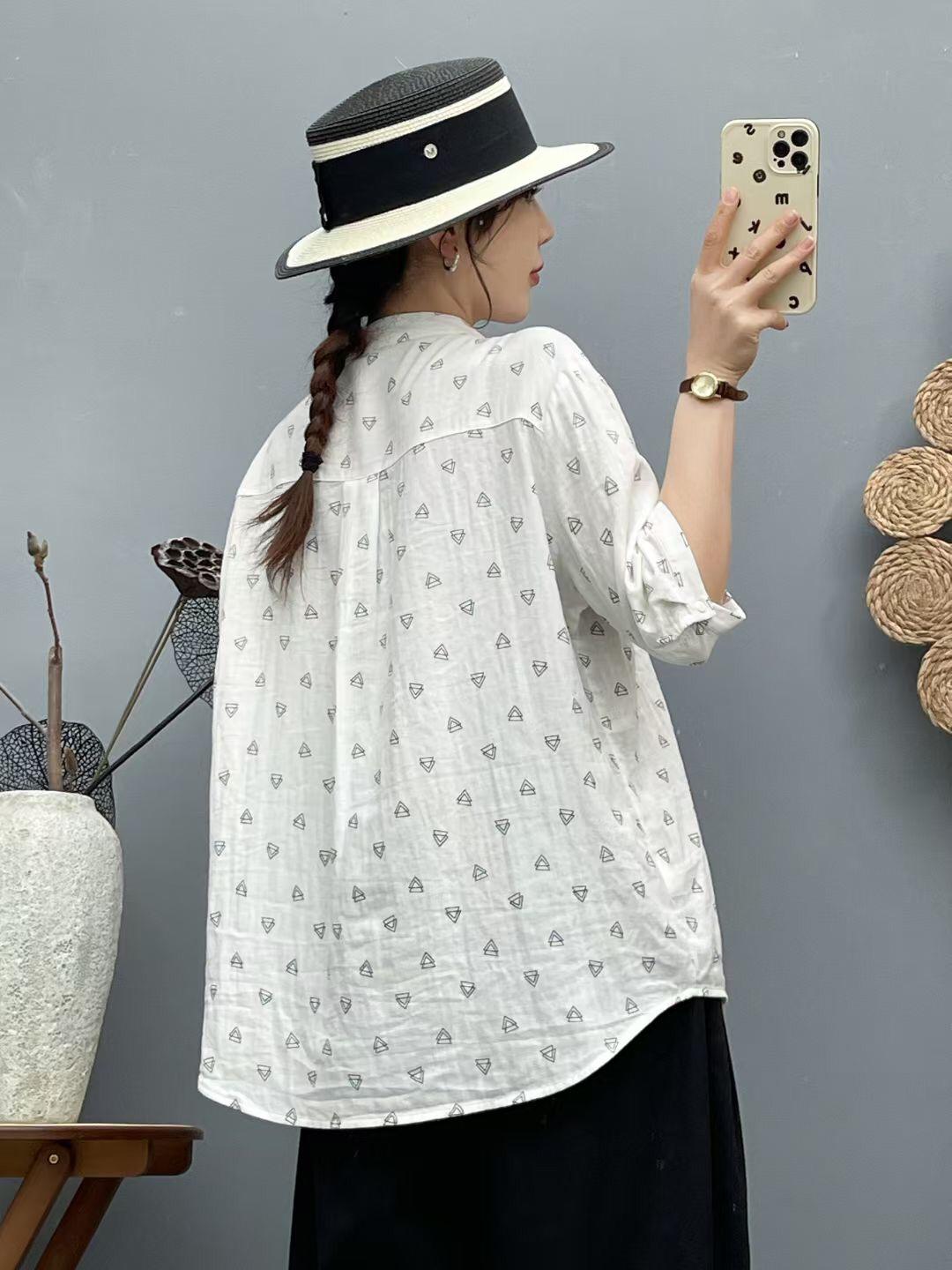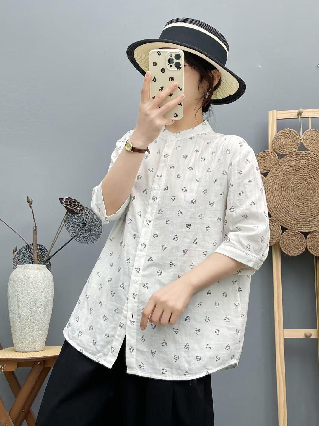 Verano 2025 Nuevo Retro Slim Versátil Delgado Suelto Casual Manga Corta Camisa Top de Mujer Gasa de Algodón
