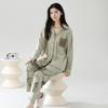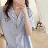 Verano Simple, Dulce y Casual Tejido Burbuja Algodón Arrugado Talla Grande Cárdigan de Solapa Pijama de Manga Corta Traje de Mujer