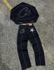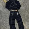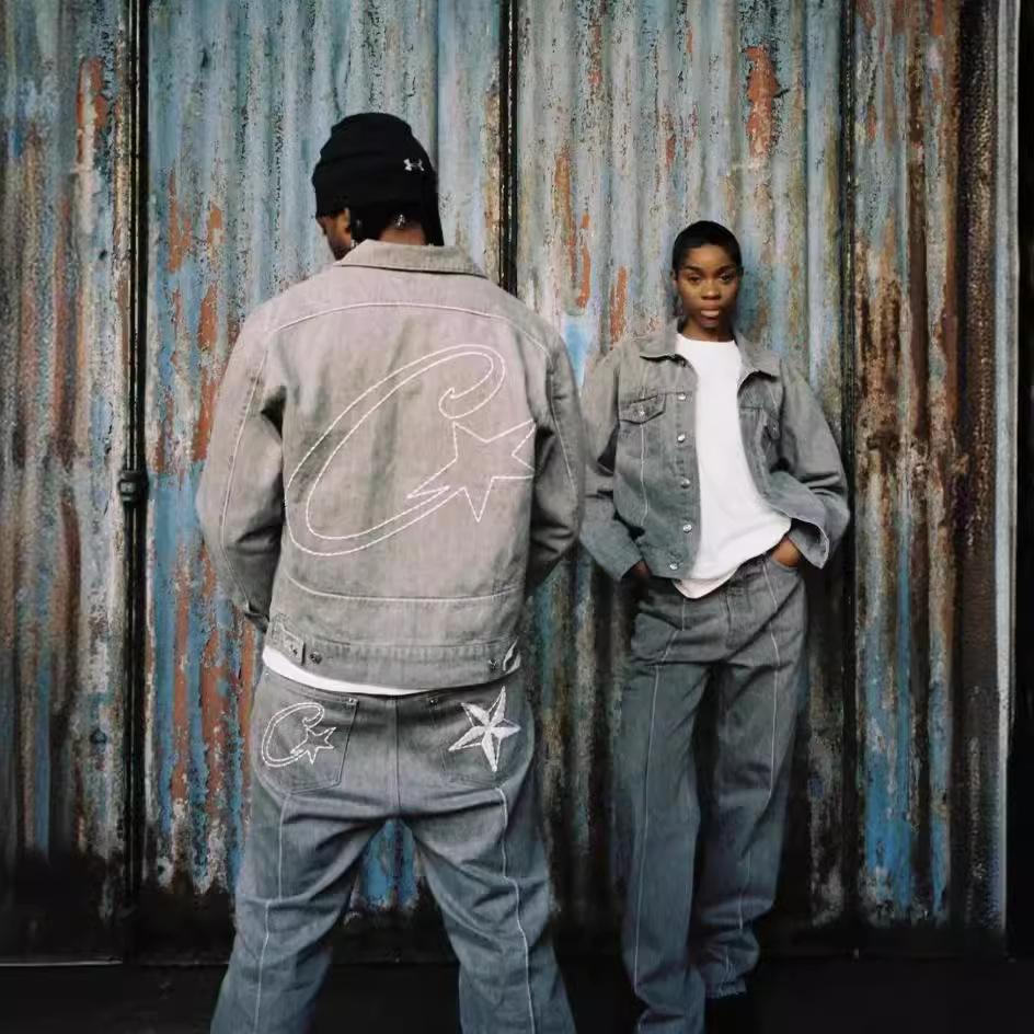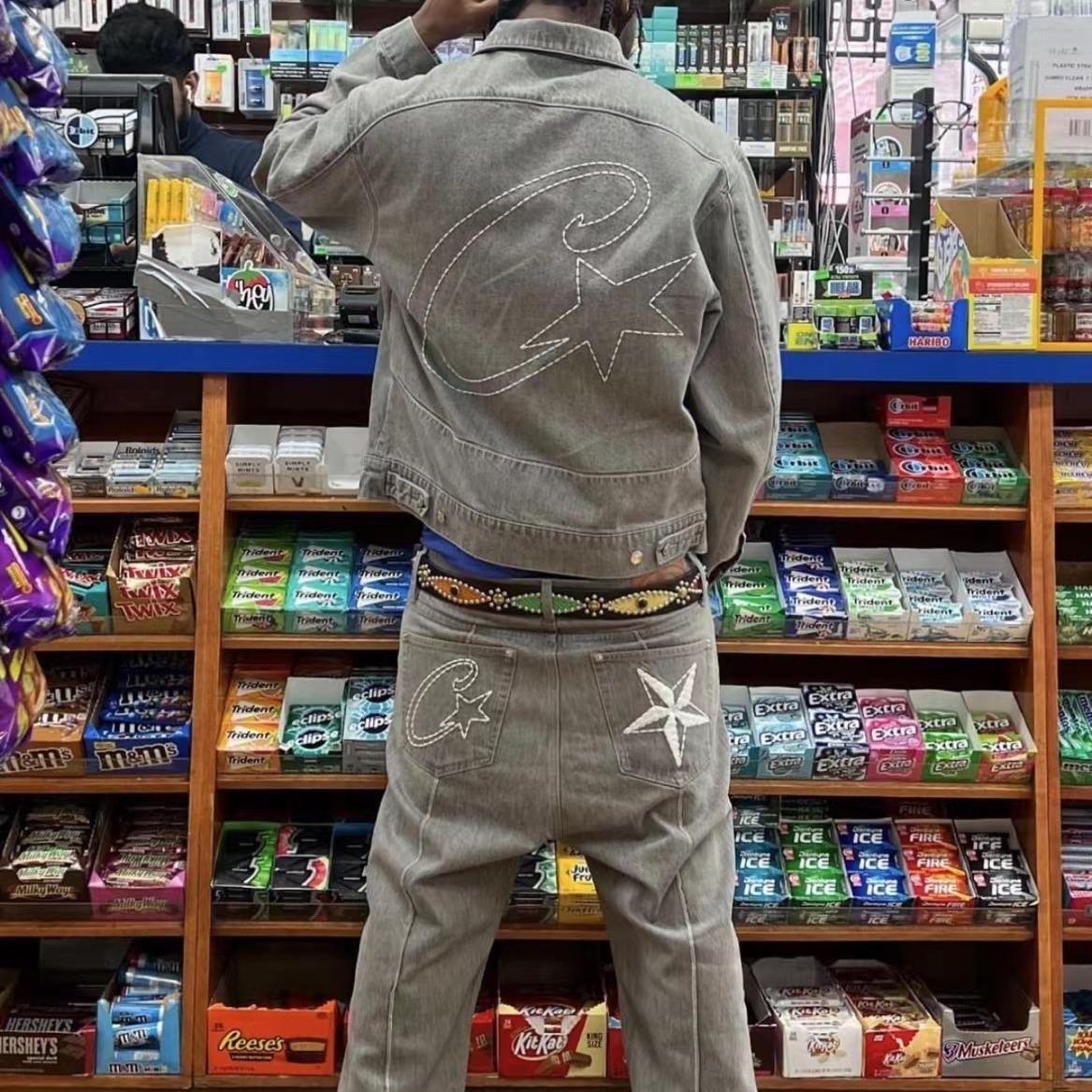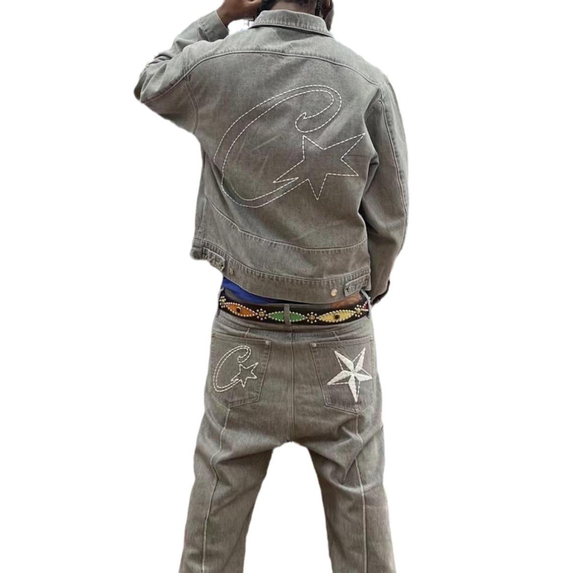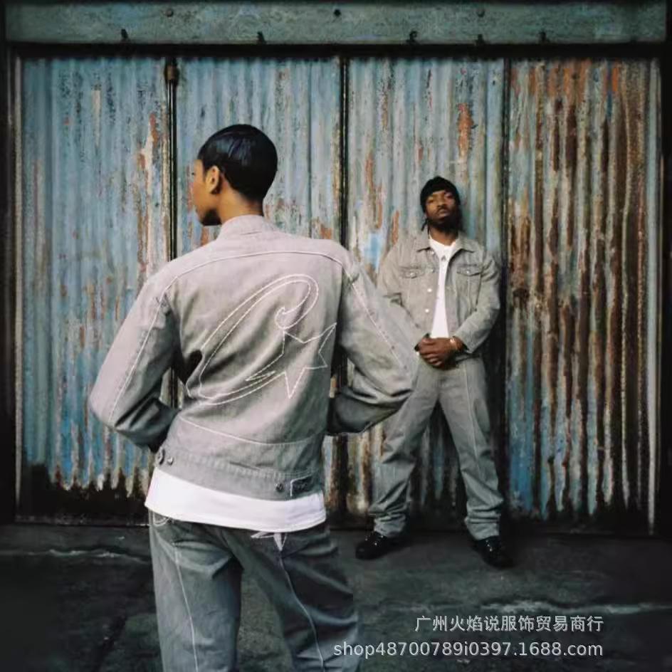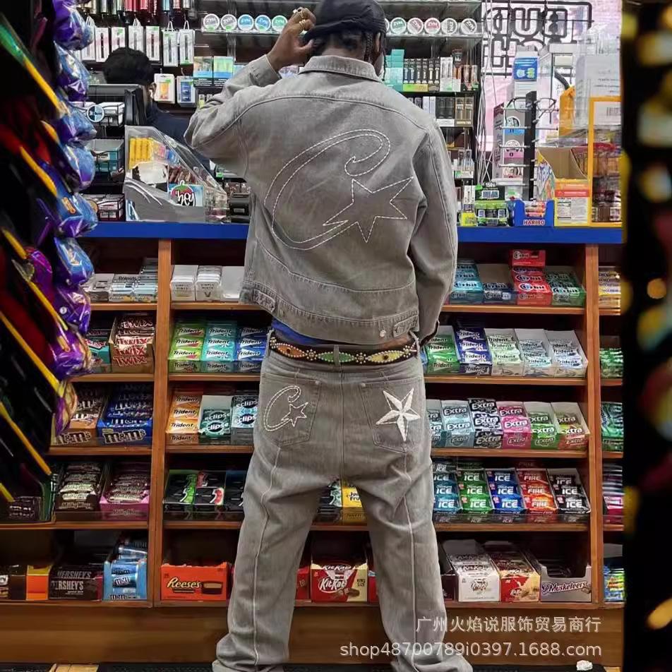 Traje de Mezclilla Alcatraz Cortiez Transfronterizo Chaqueta de Mezclilla Occidental High Street Jeans Holgados Marca Trendy