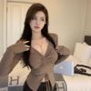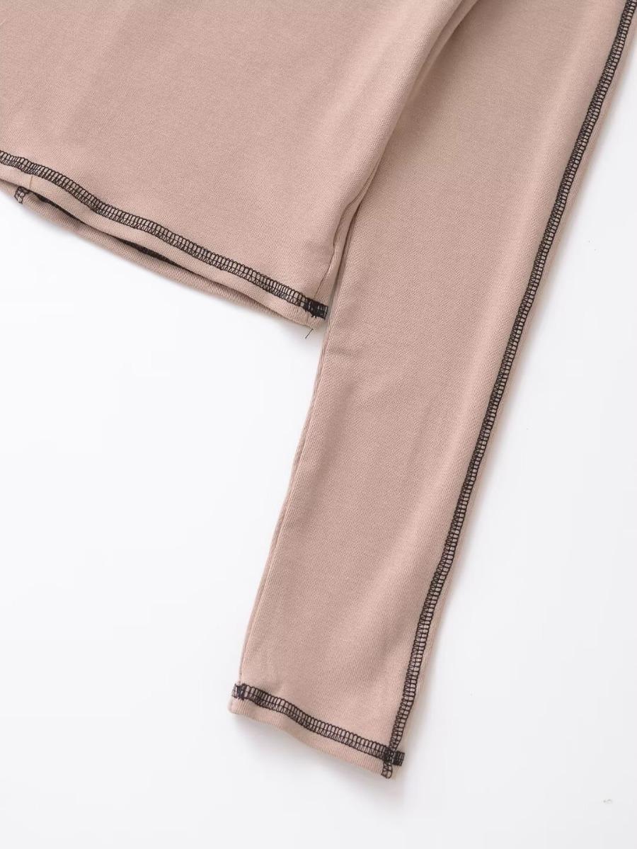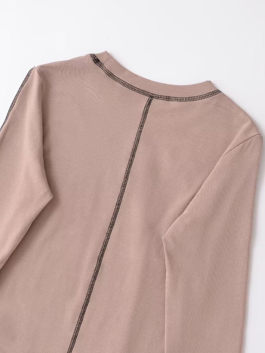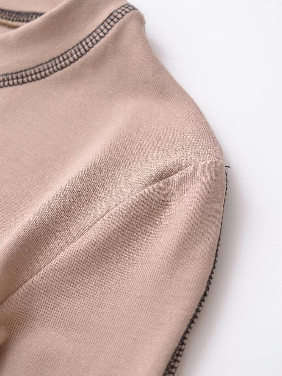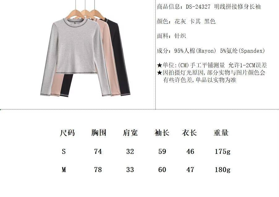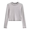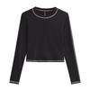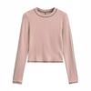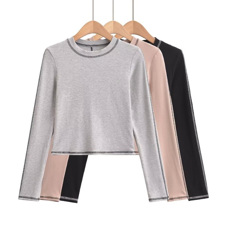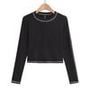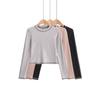 Top Corto Básico de Corte Slim Americano con Ombligo Descubierto para Mujer, Nueva Moda de Otoño Versátil Camiseta Base de Manga Larga