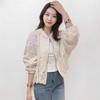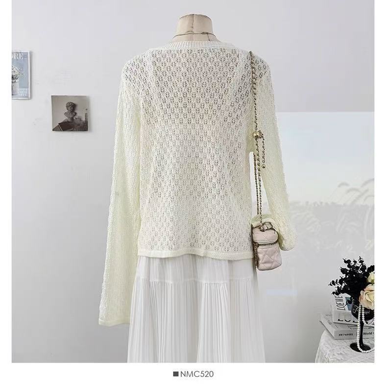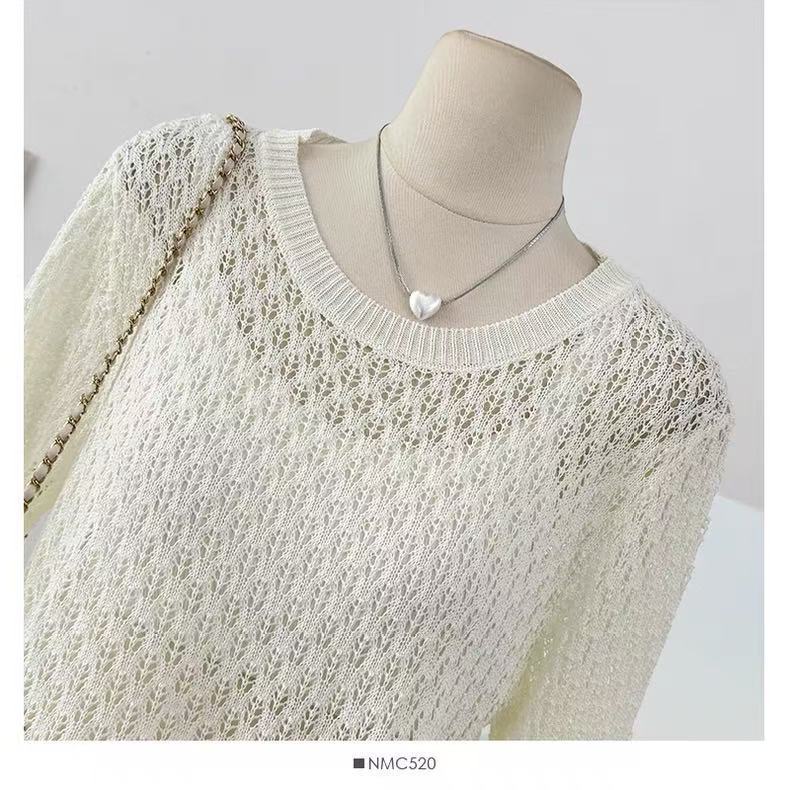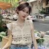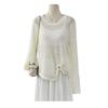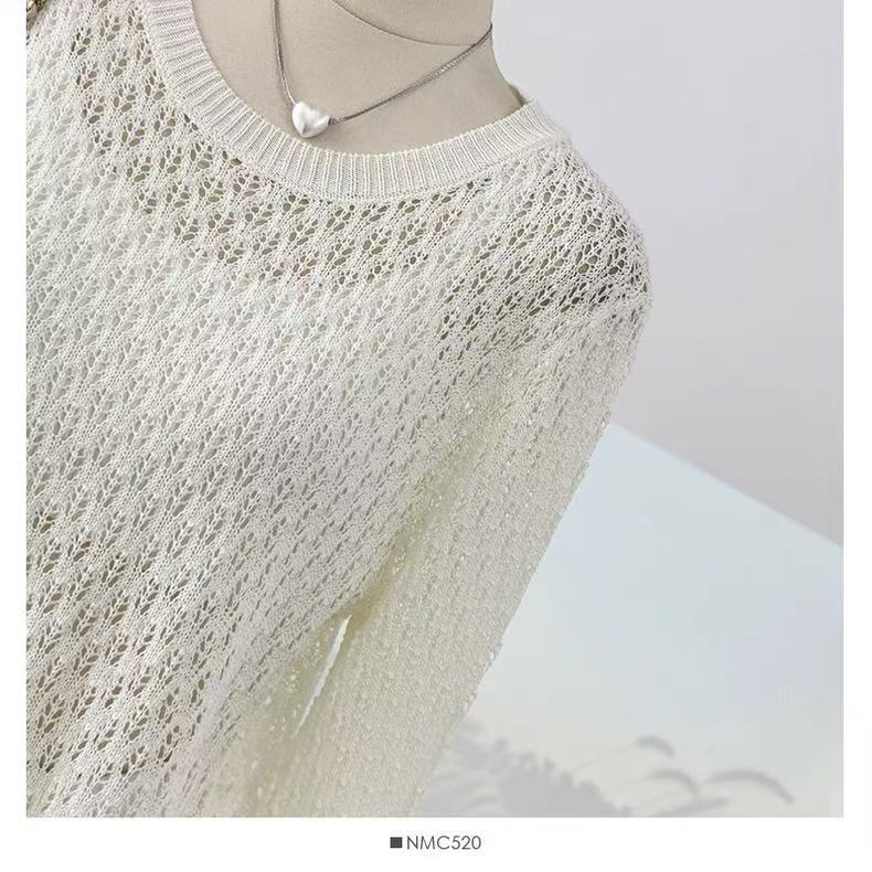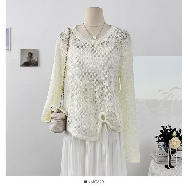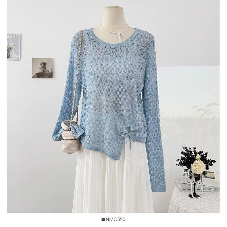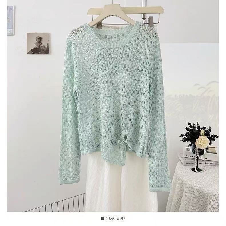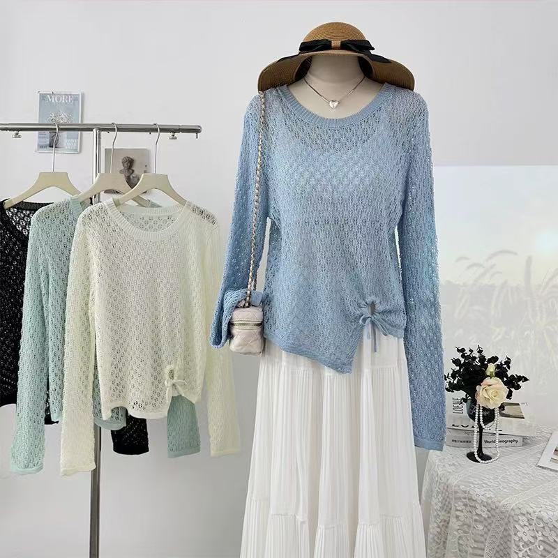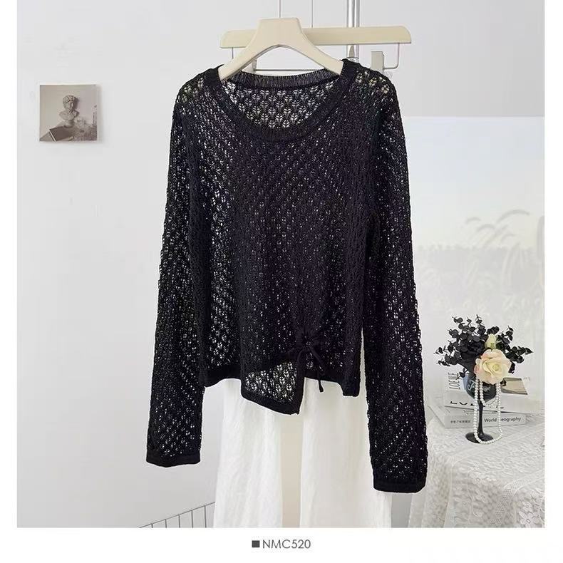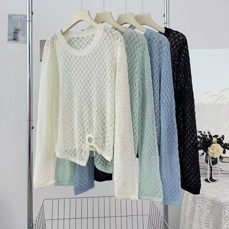 Blusa Coreana Estilo Cut Out Protección Solar 2025 Nuevo Verano para Mujer Tejido de Punto Floral Jersey con Cordones Suelto Top Holgado
