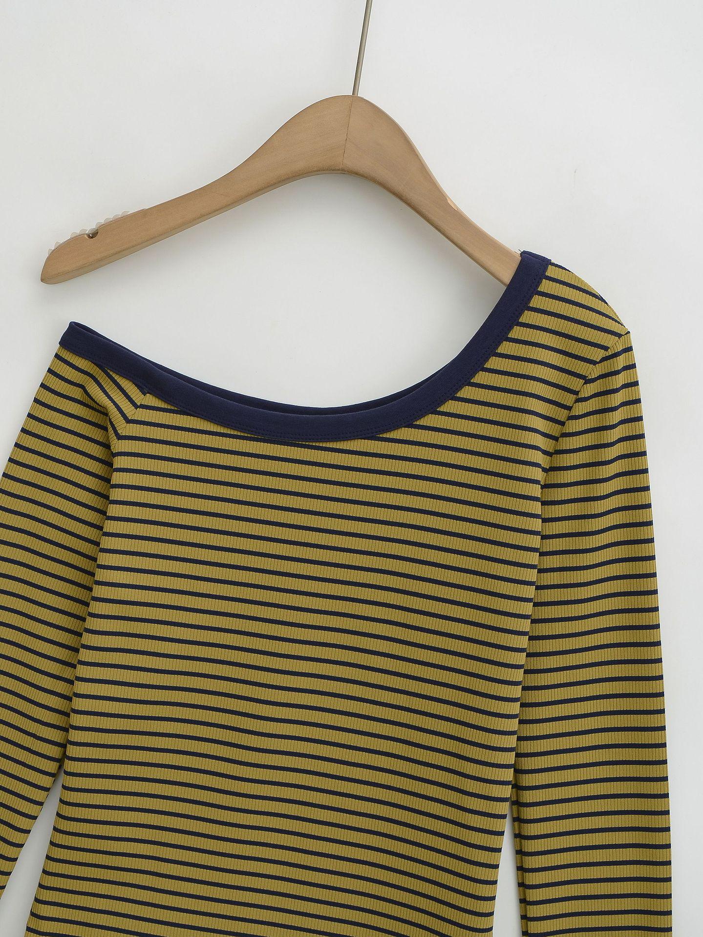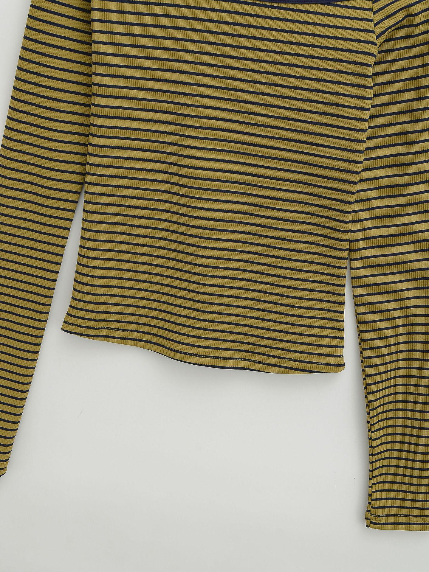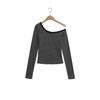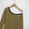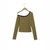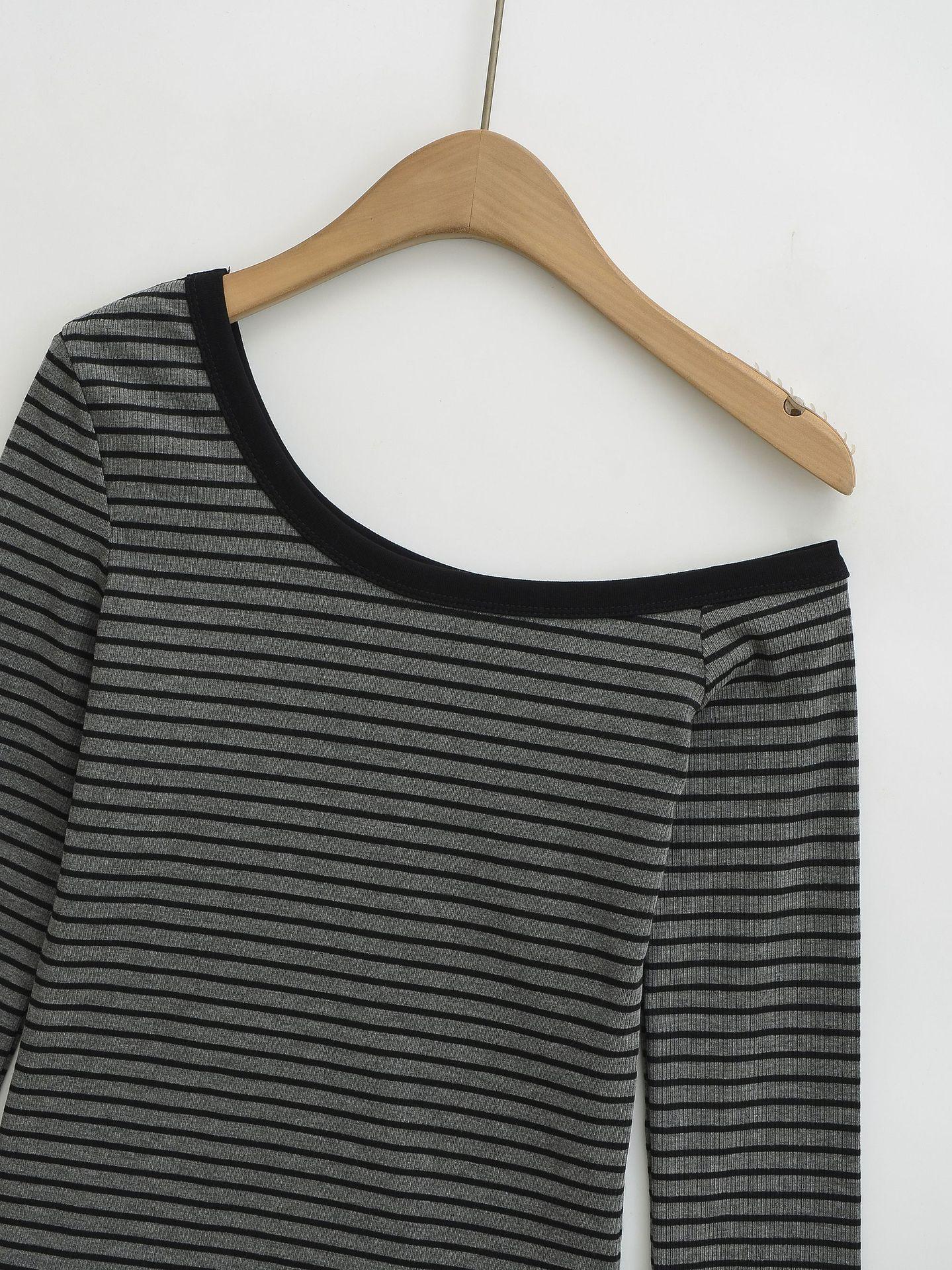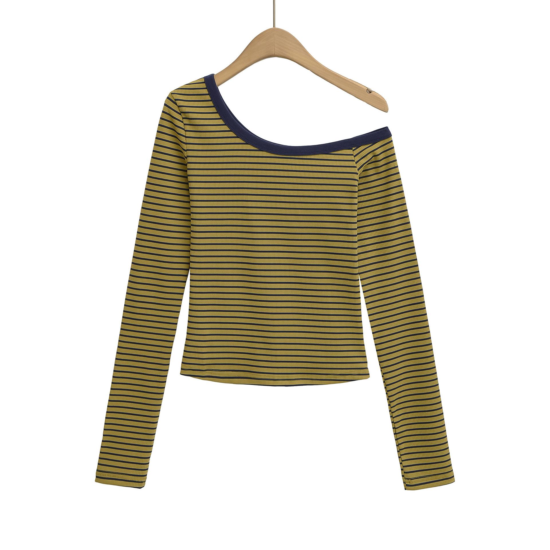 Camiseta Base Corta Sexy para Mujer Primavera 2025 con Hombros Descubiertos Estilo Trendy de Chica Hot a Rayas Asimétrica de Manga Larga