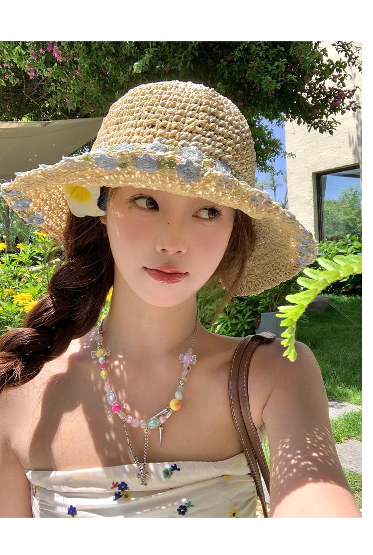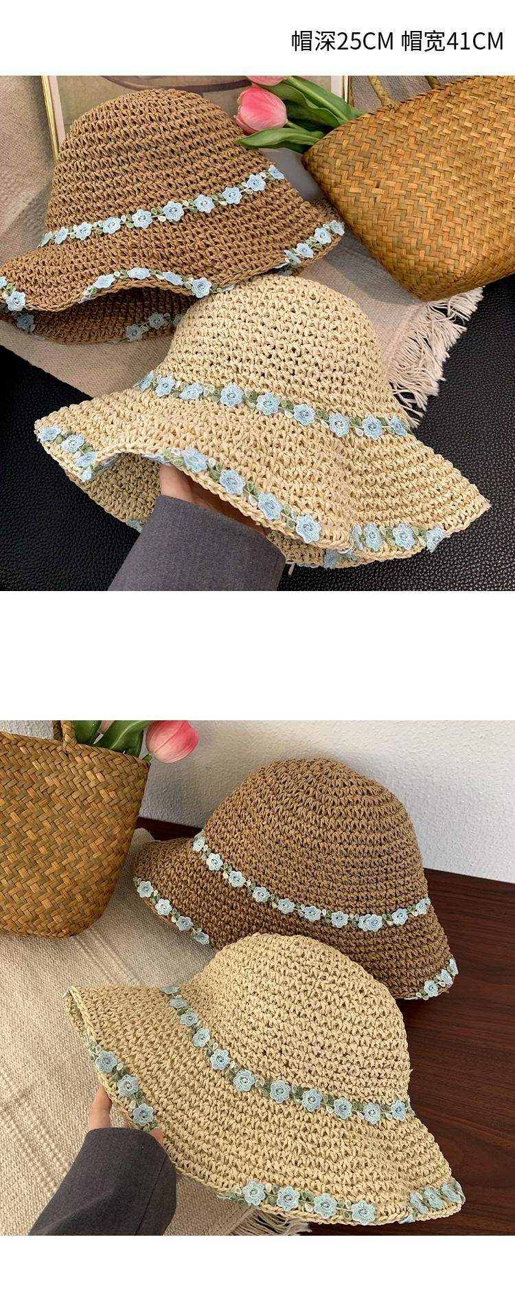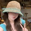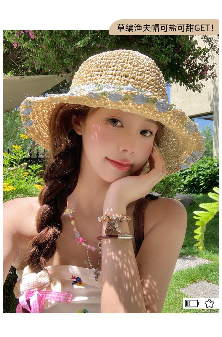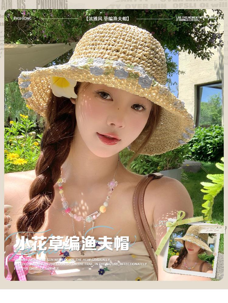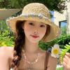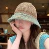 Sombrero de Pescador Trenzado de Flor Mambo Menta para Mujer Verano Vacaciones Costeras Ala Ancha Sombrero de Paja Plegable Sombrero de Protección Solar