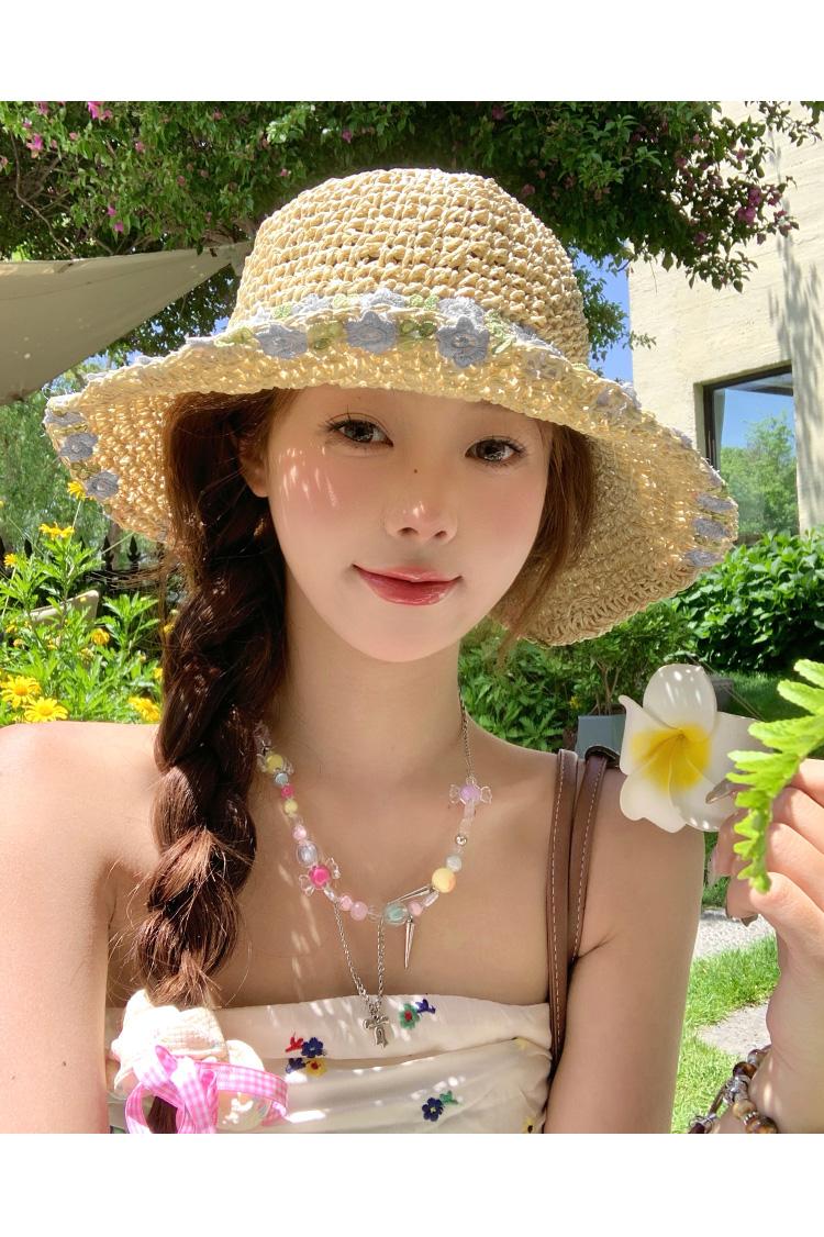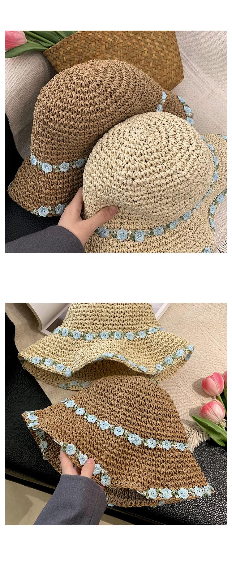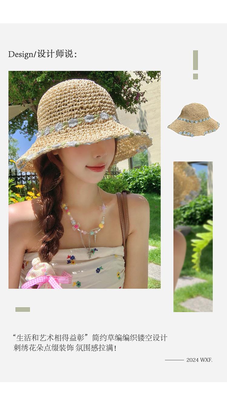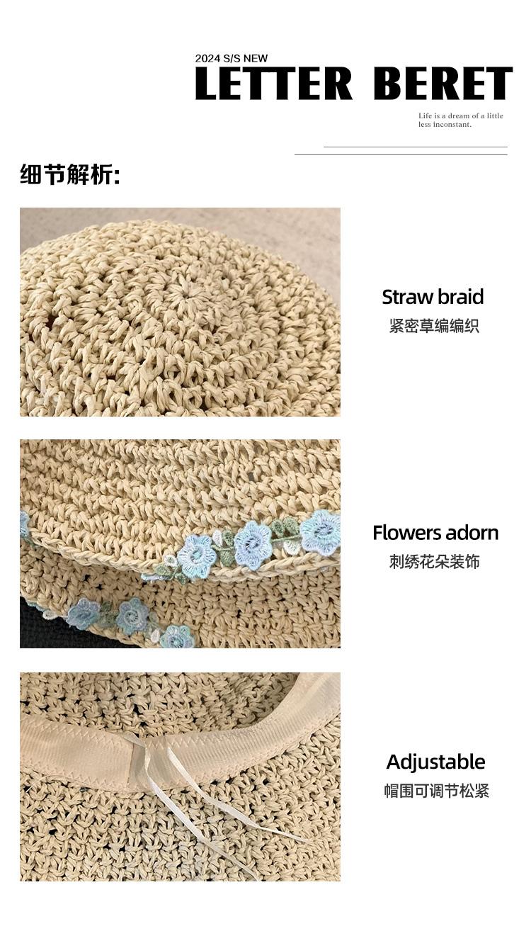 Sombrero de Pescador Trenzado de Flor Mambo Menta para Mujer Verano Vacaciones Costeras Ala Ancha Sombrero de Paja Plegable Sombrero de Protección Solar