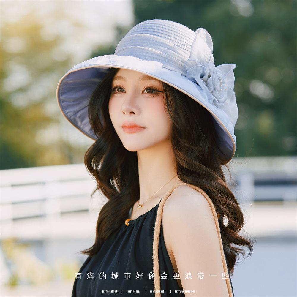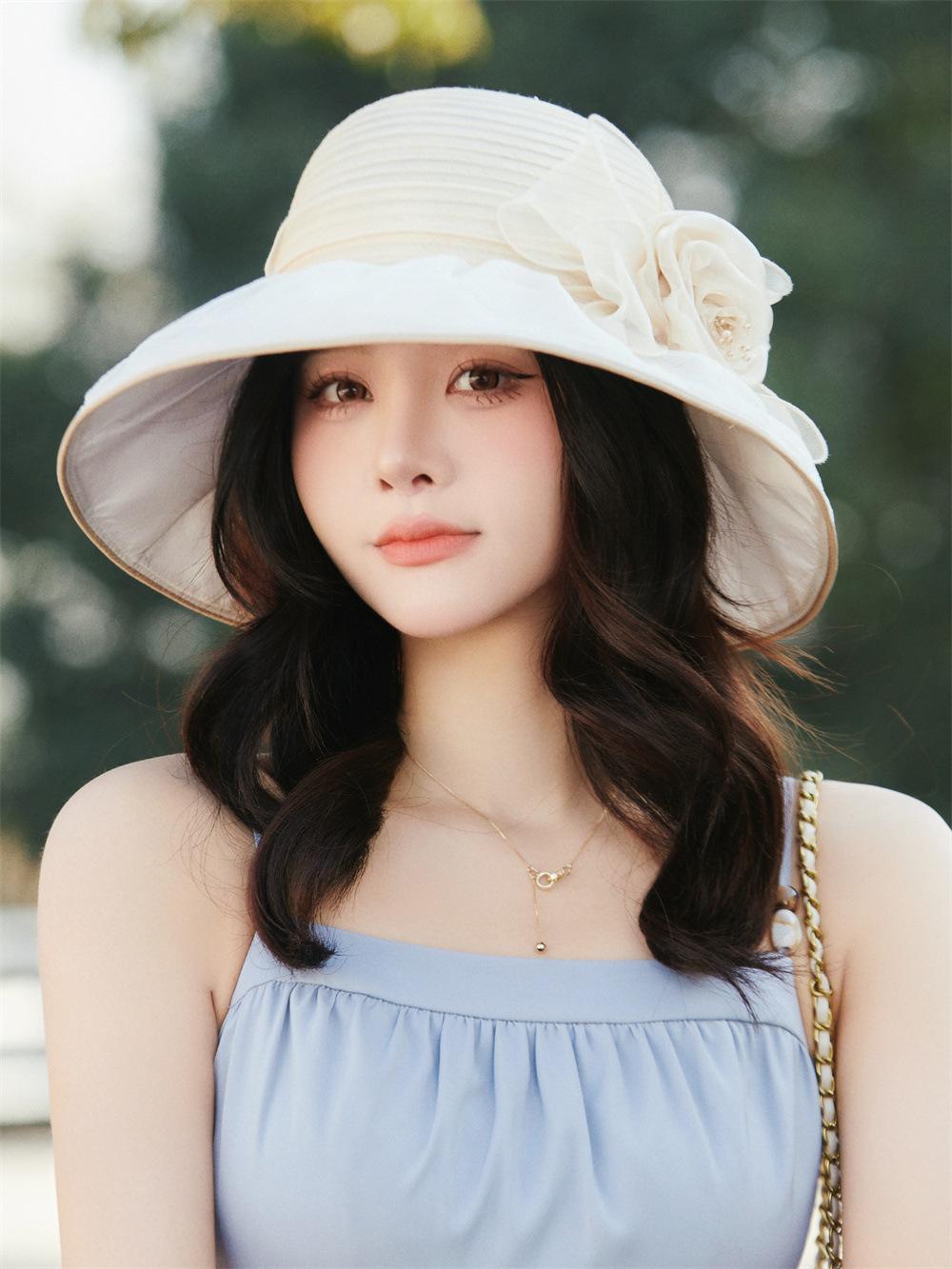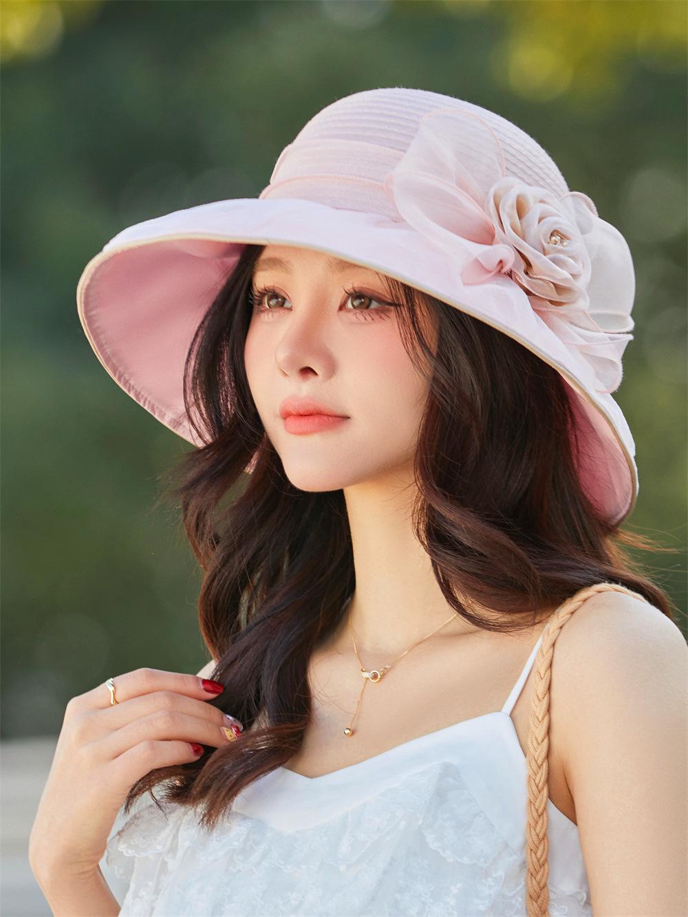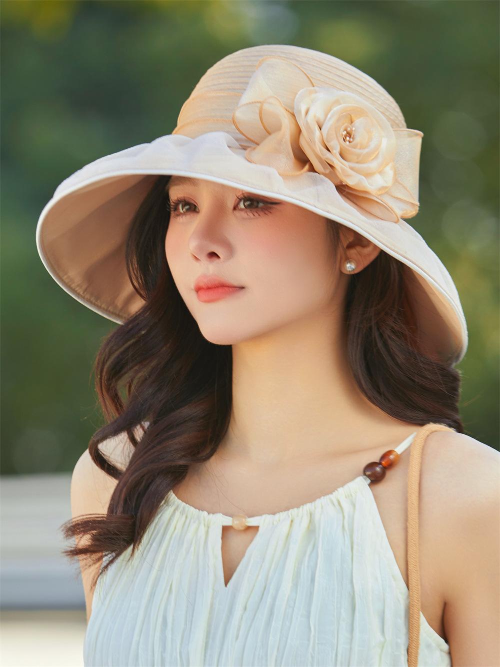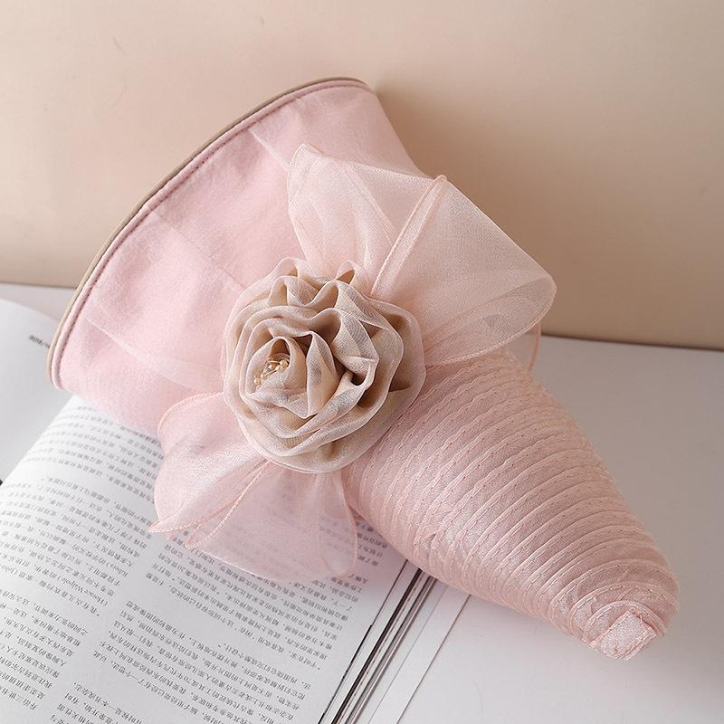 Sombrero de Sol Sombrero de Sol para Mujer Protector Solar Anti-UV Sombrero Fresco de Primavera Verano Sombrero de Hilo Sombrero de Playa Lazo de Organza