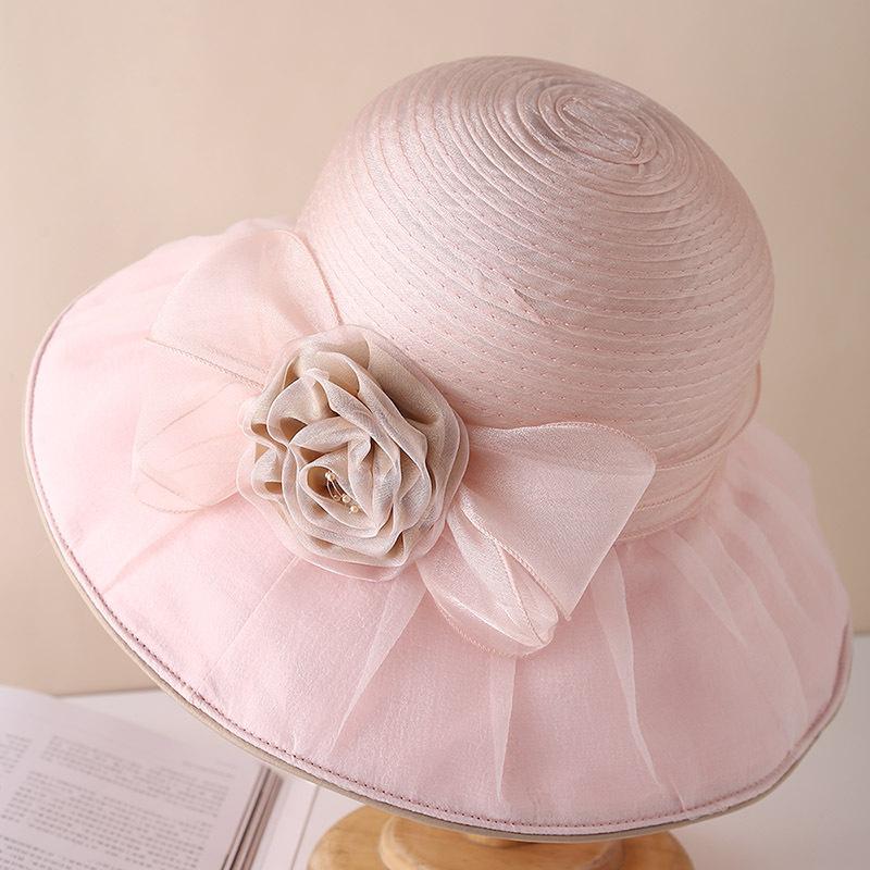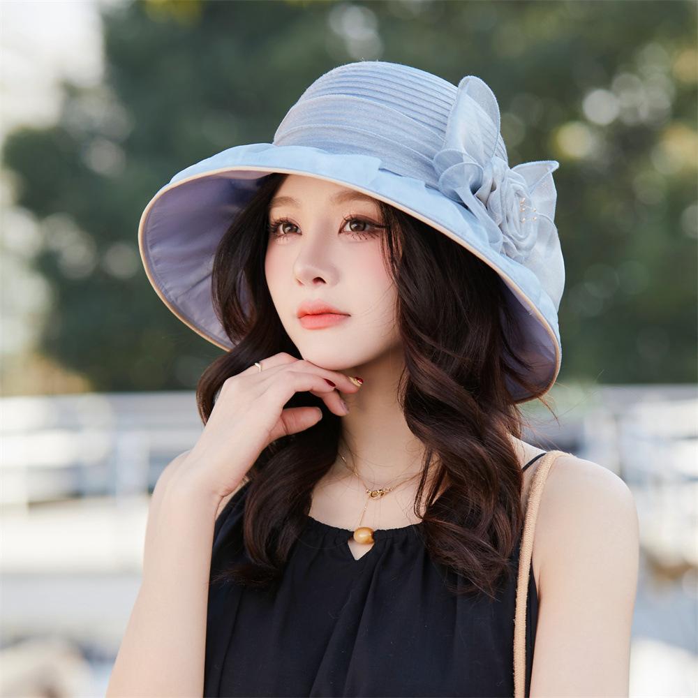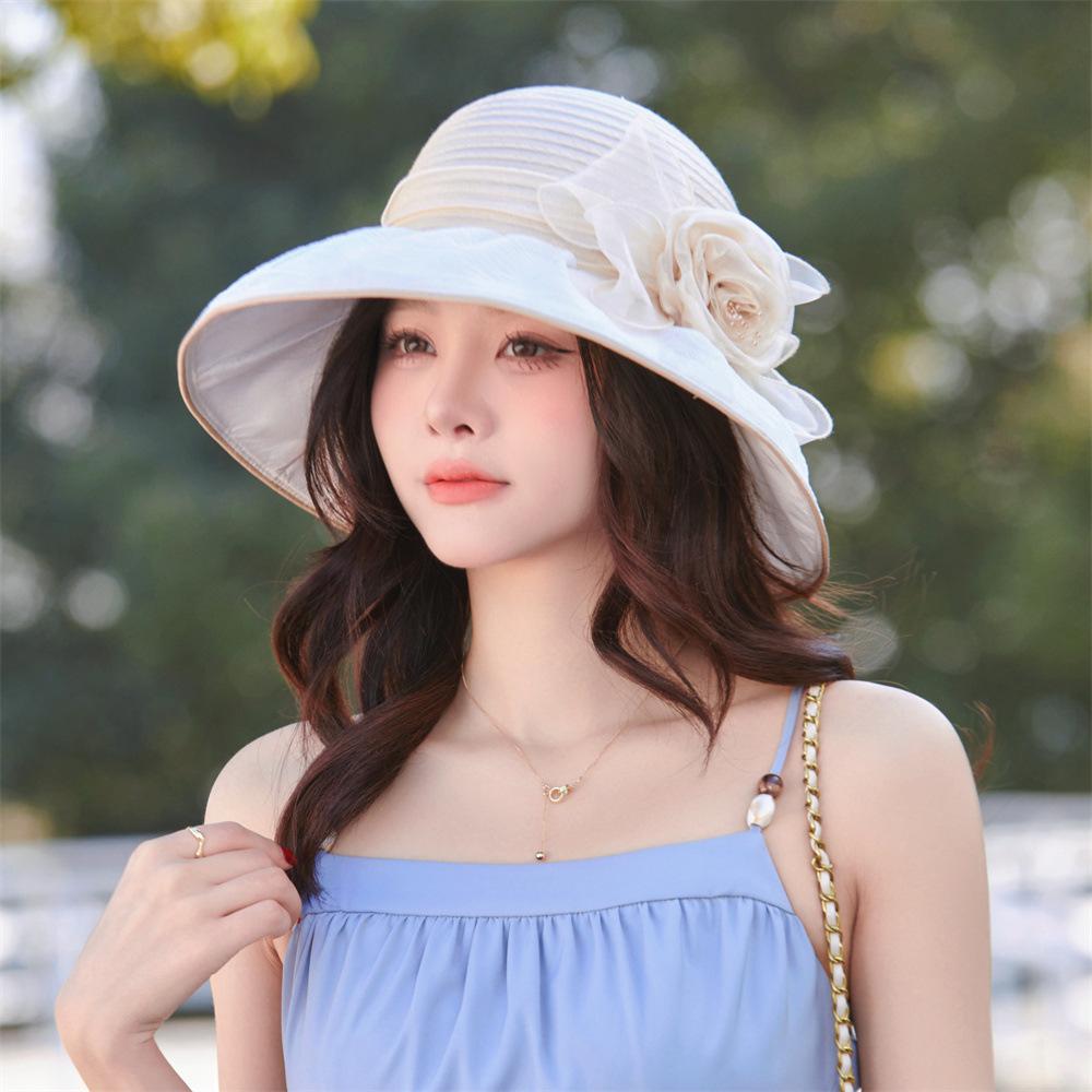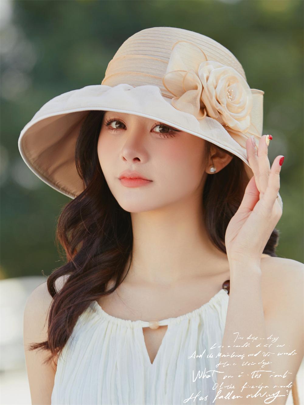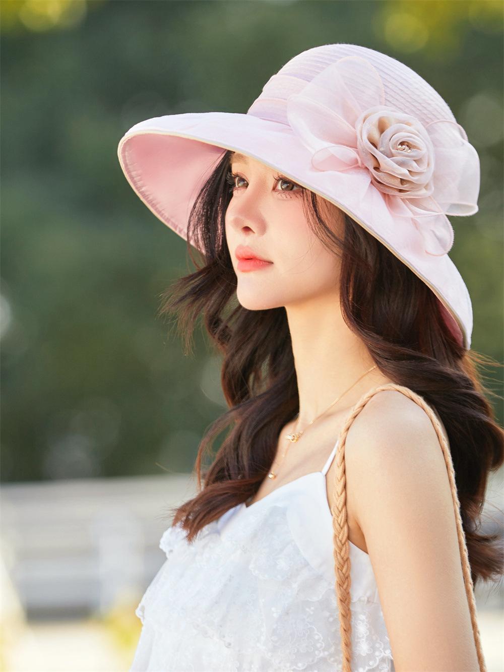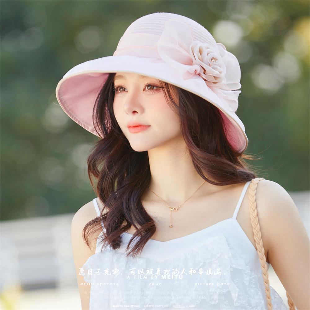 Sombrero de Sol Sombrero de Sol para Mujer Protector Solar Anti-UV Sombrero Fresco de Primavera Verano Sombrero de Hilo Sombrero de Playa Lazo de Organza