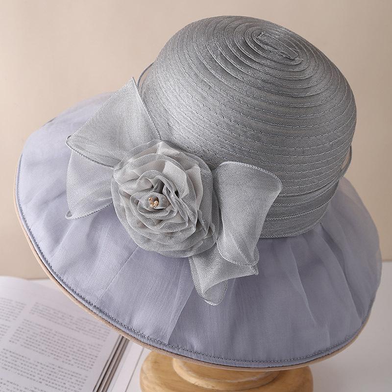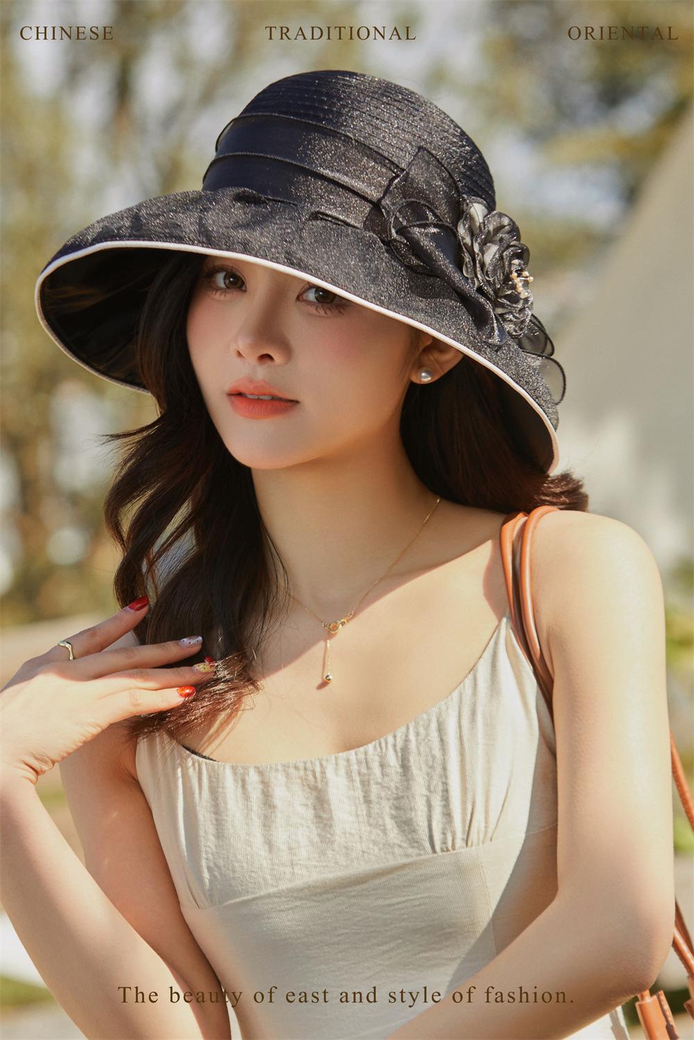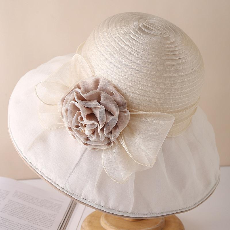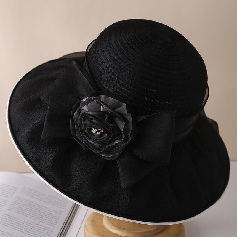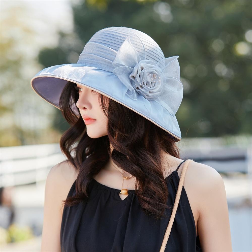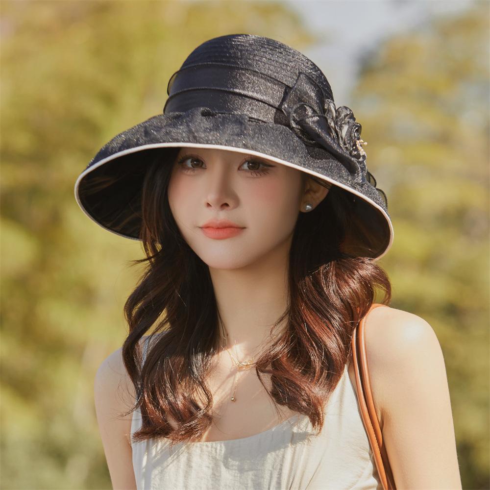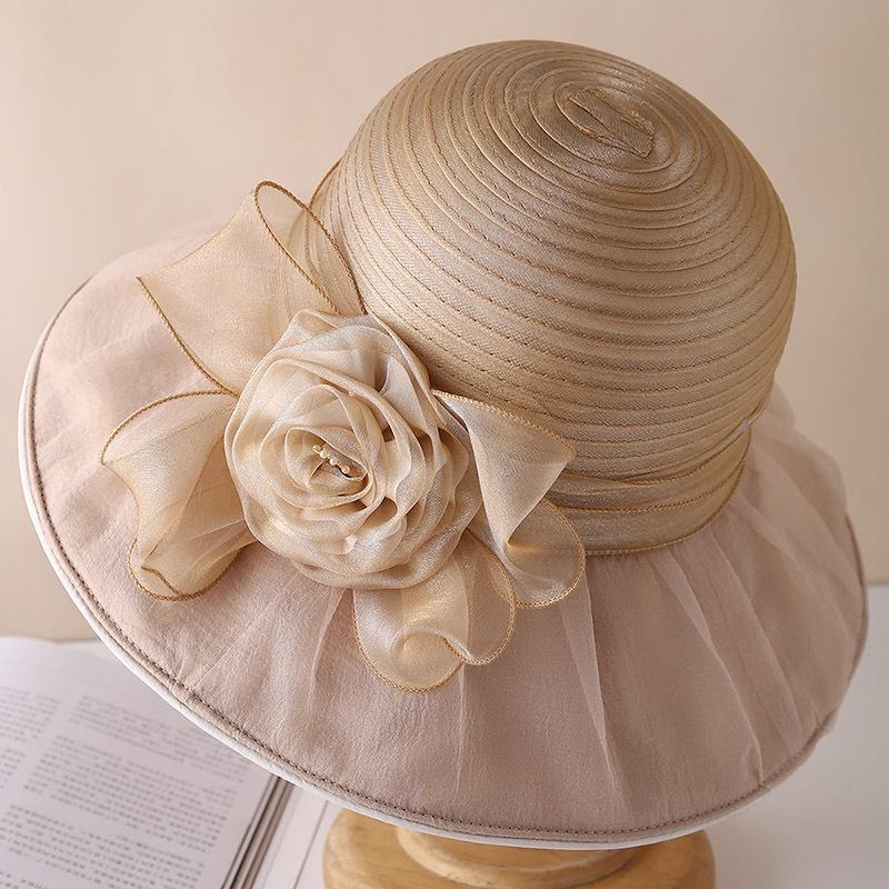 Sombrero de Sol Sombrero de Sol para Mujer Protector Solar Anti-UV Sombrero Fresco de Primavera Verano Sombrero de Hilo Sombrero de Playa Lazo de Organza