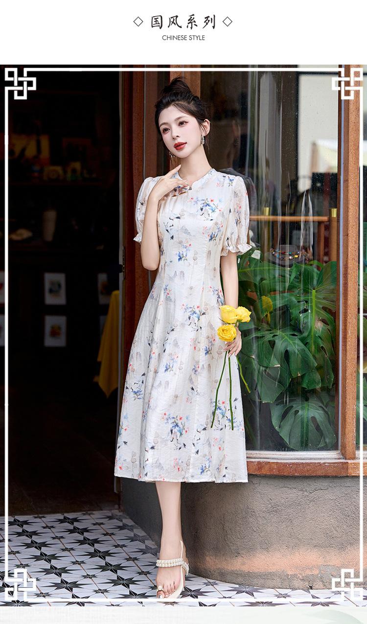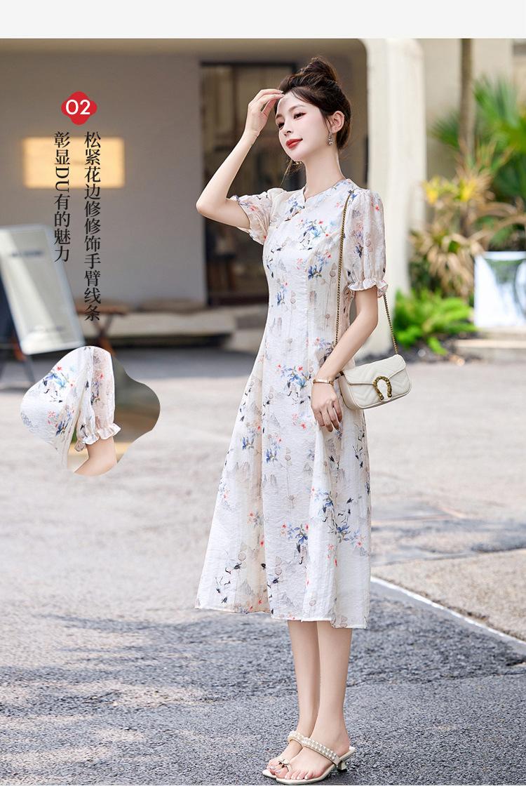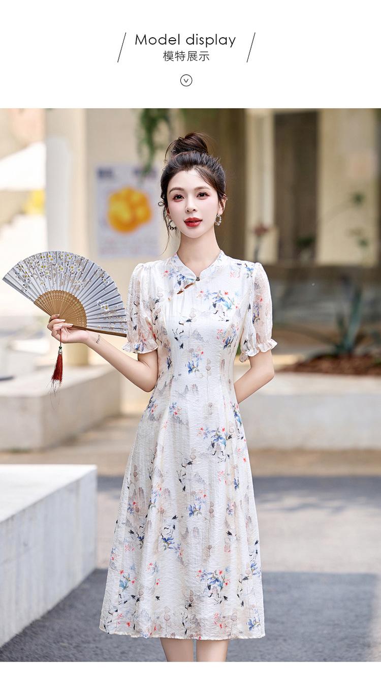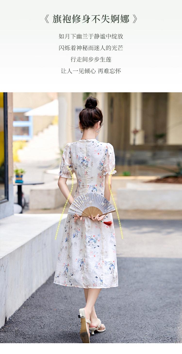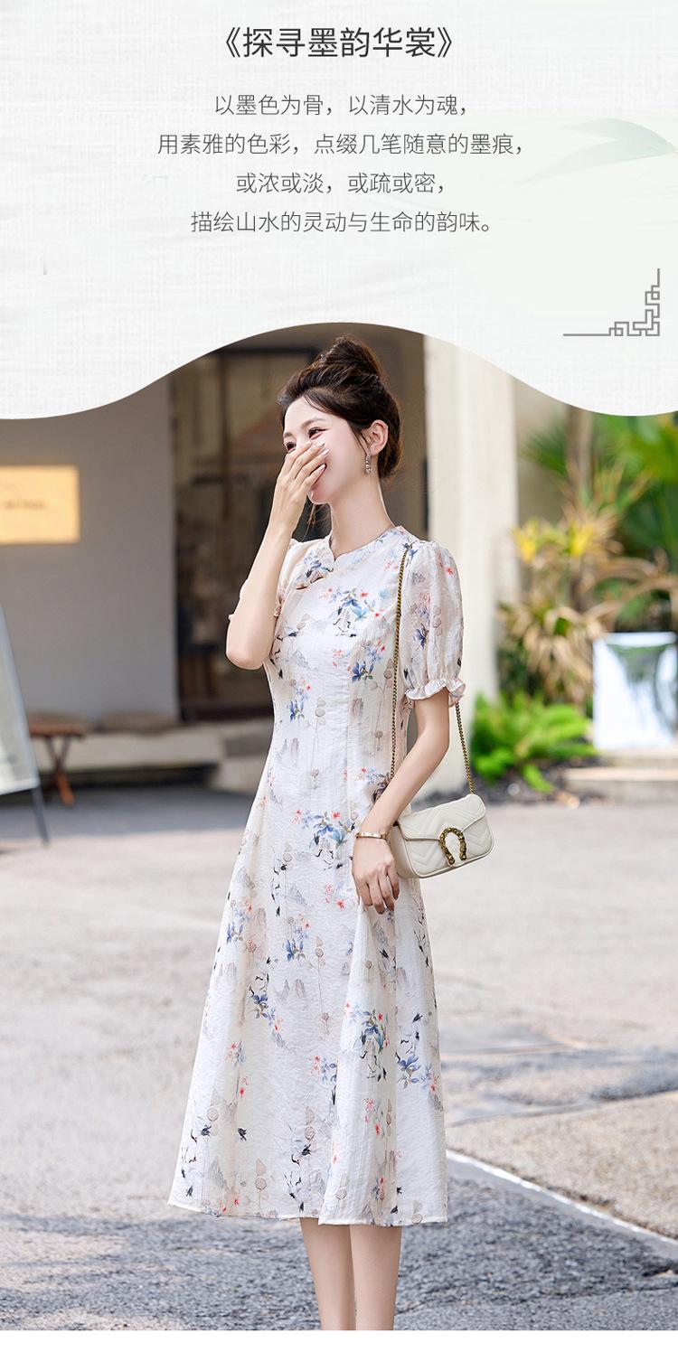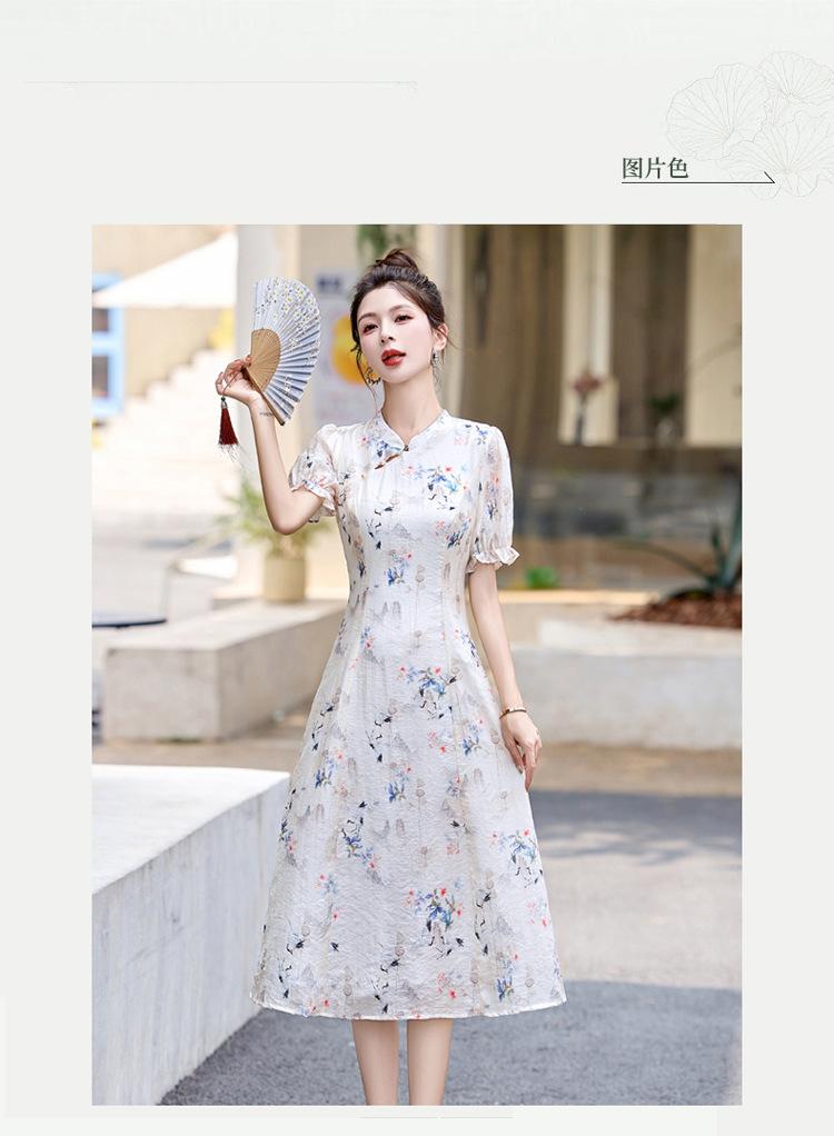 Nuevo Vestido Cheongsam Mejorado Estampado Estilo Chino para Mujer 2024 Verano Nuevo Elegante Ajustado Fresco