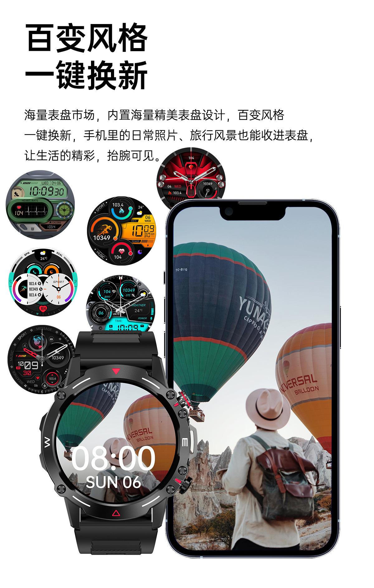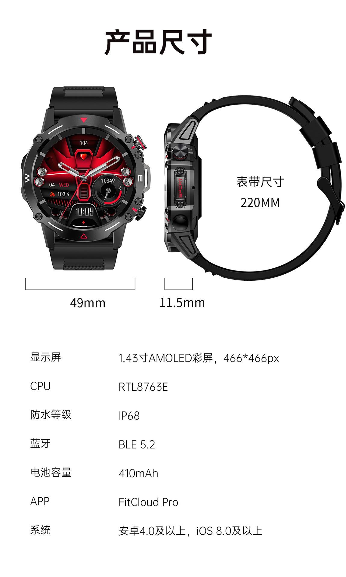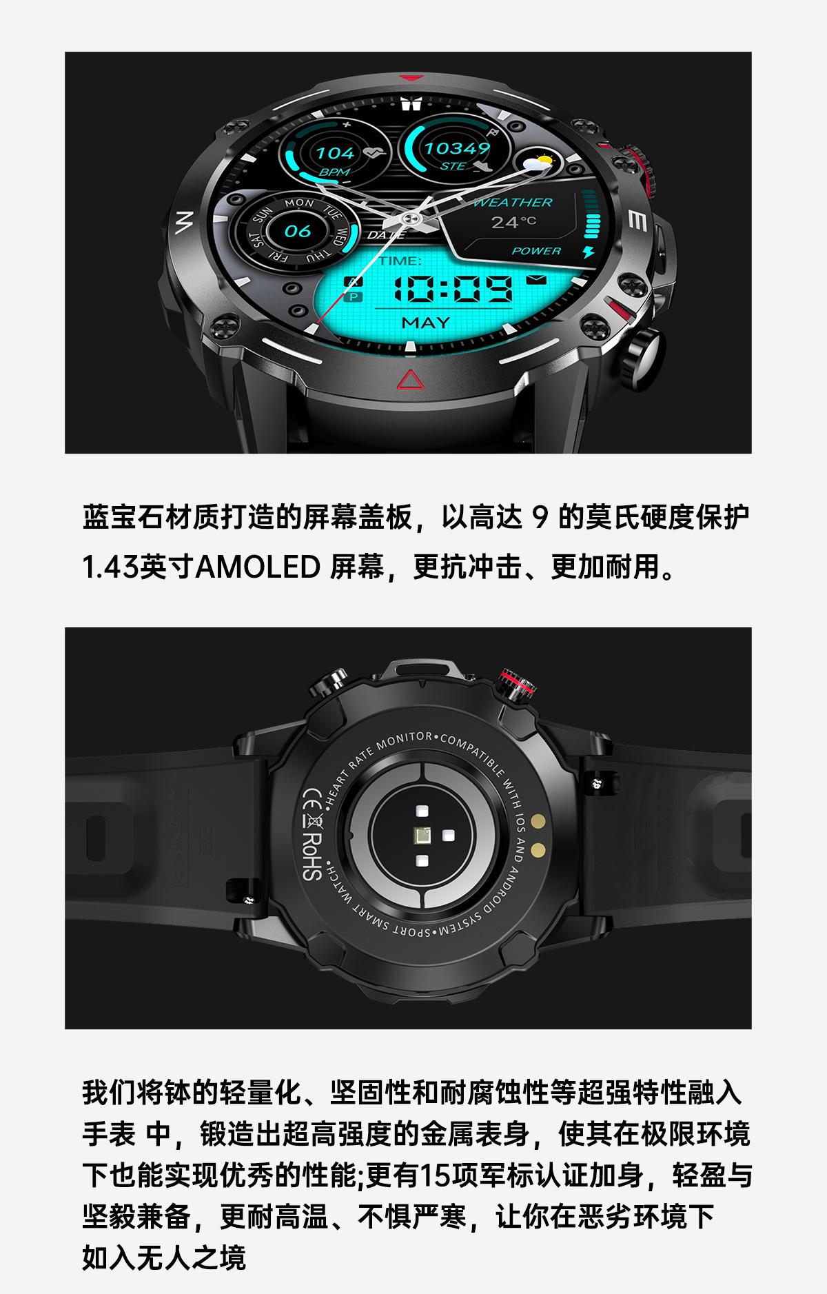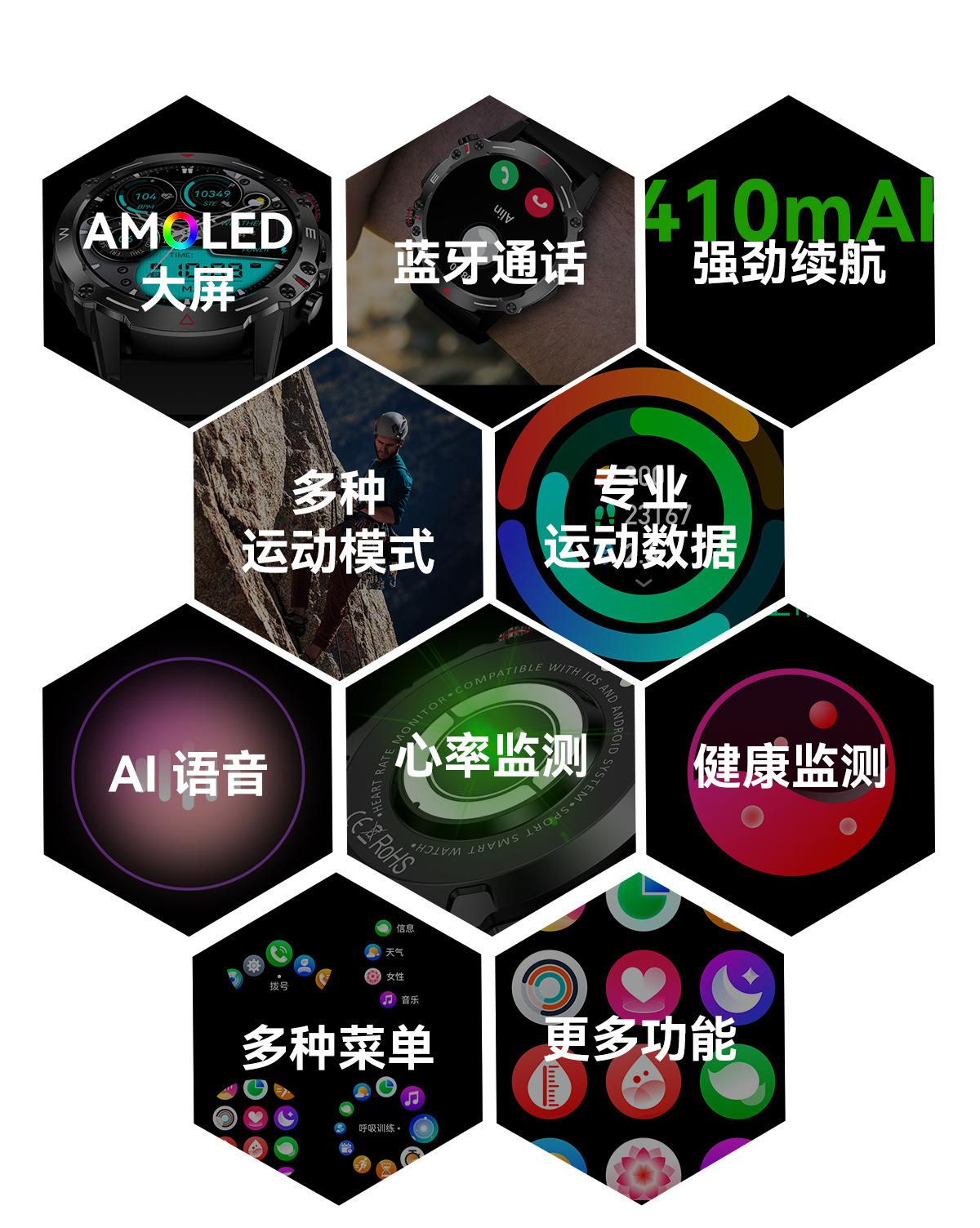 Función principal | Llamadas Bluetooth, control de voz, pantalla siempre activa, pago fuera de línea de Alipay, NFC, desbloqueo de contraseña, ciclo menstrual femenino, esfera de reloj personalizada, pronóstico del tiempo, control de música, conteo de pasos, frecuencia cardíaca, sueño, sedentarismo, kilometraje, oxígeno en sangre, presión arterial, búsqueda, calorías, envío de mensajes. |