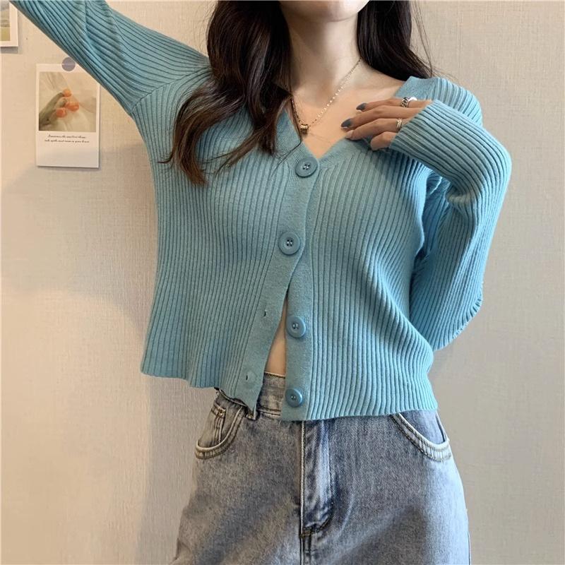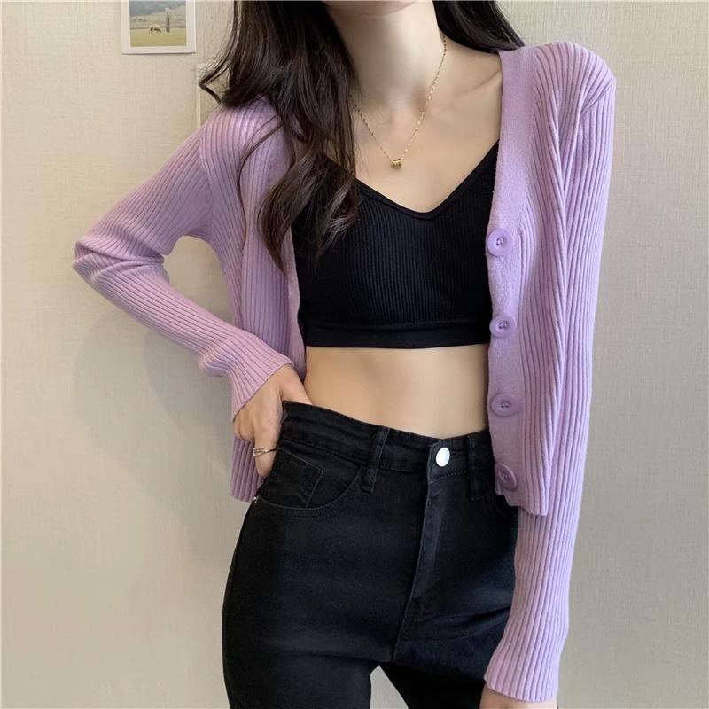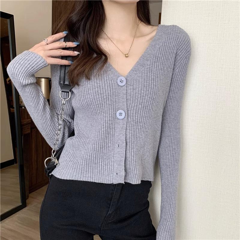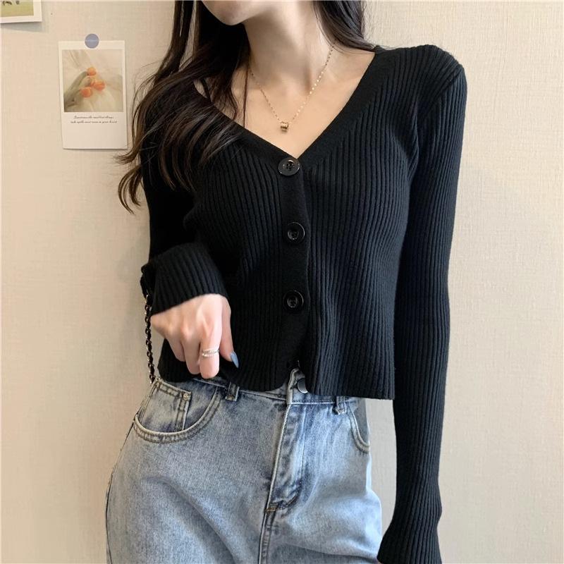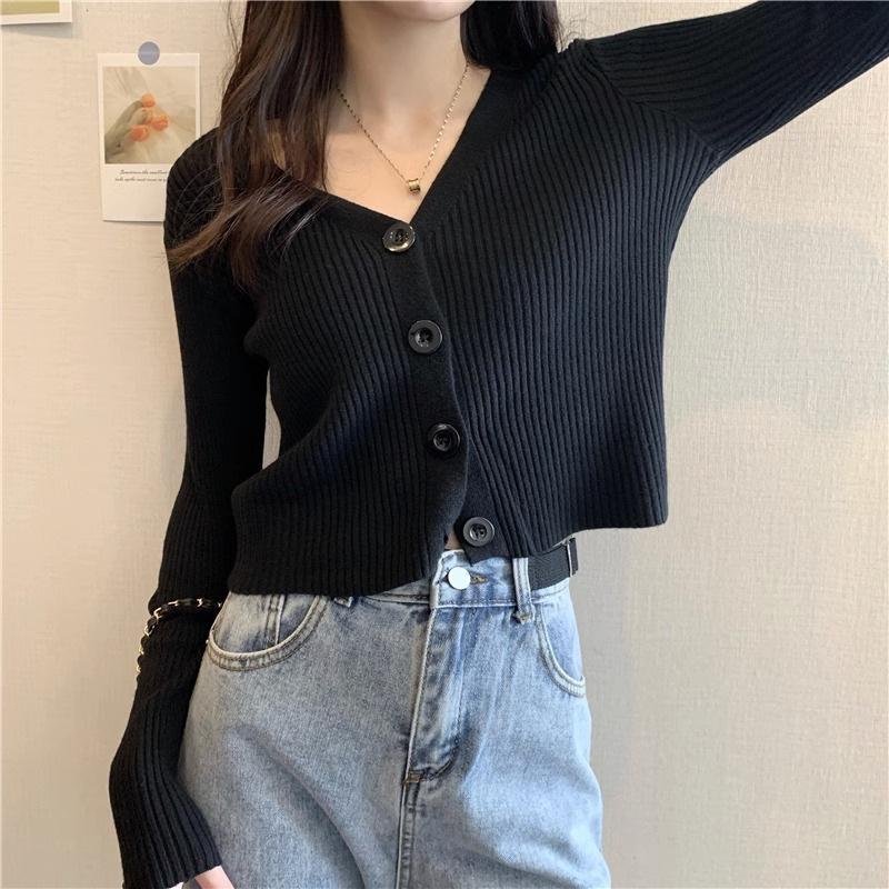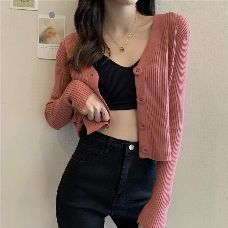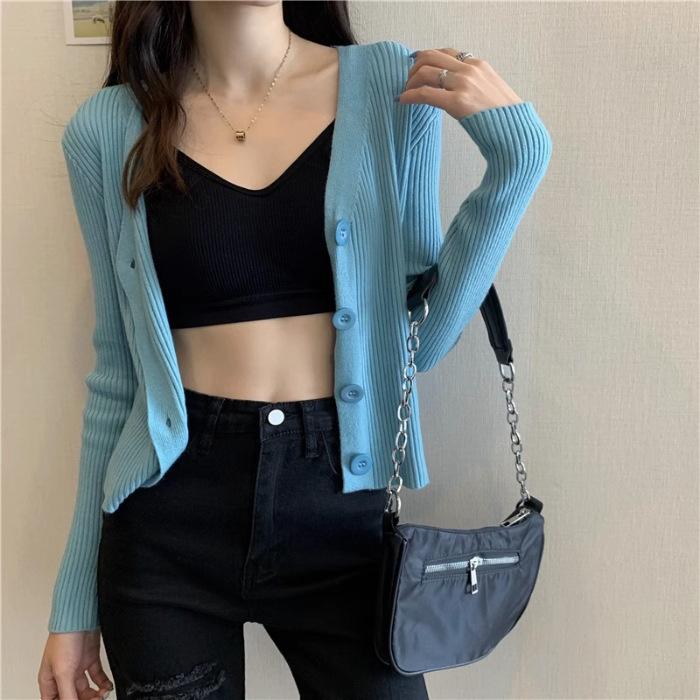 Cárdigan de Punto Fino de Manga Larga para Mujer, Estilo Nuevo Primavera y Otoño 2024, Pequeño, Color Sólido, Chaqueta, Top Corto de Moda Ins