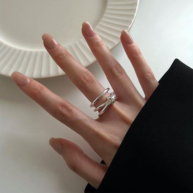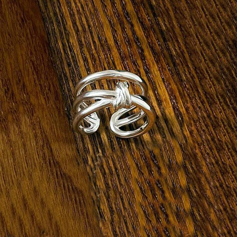 Anillo anudado cruzado de tres líneas personalidad ins moderno viento frío exagerado multicapa ancho abierto suministro de comercio electrónico