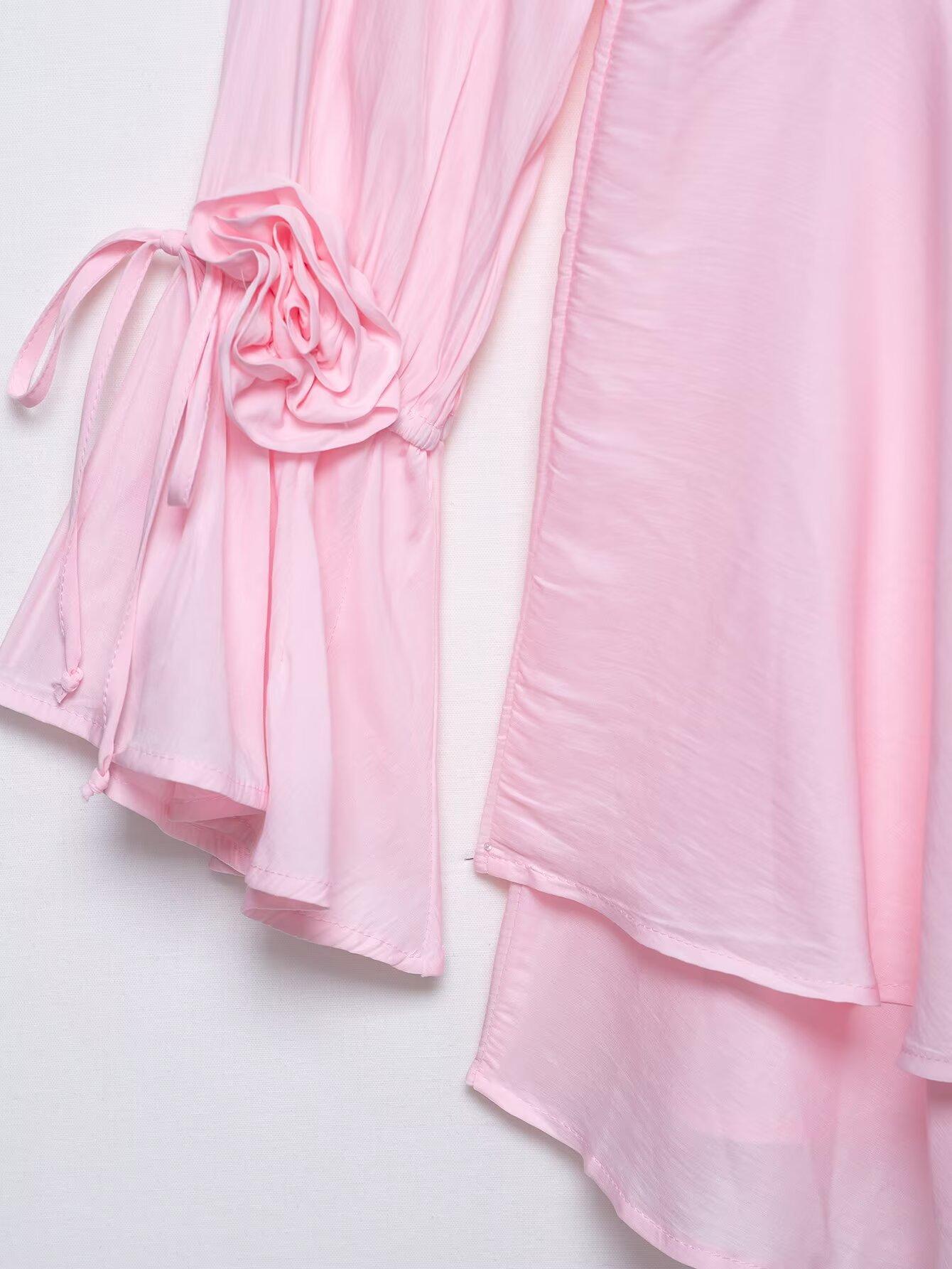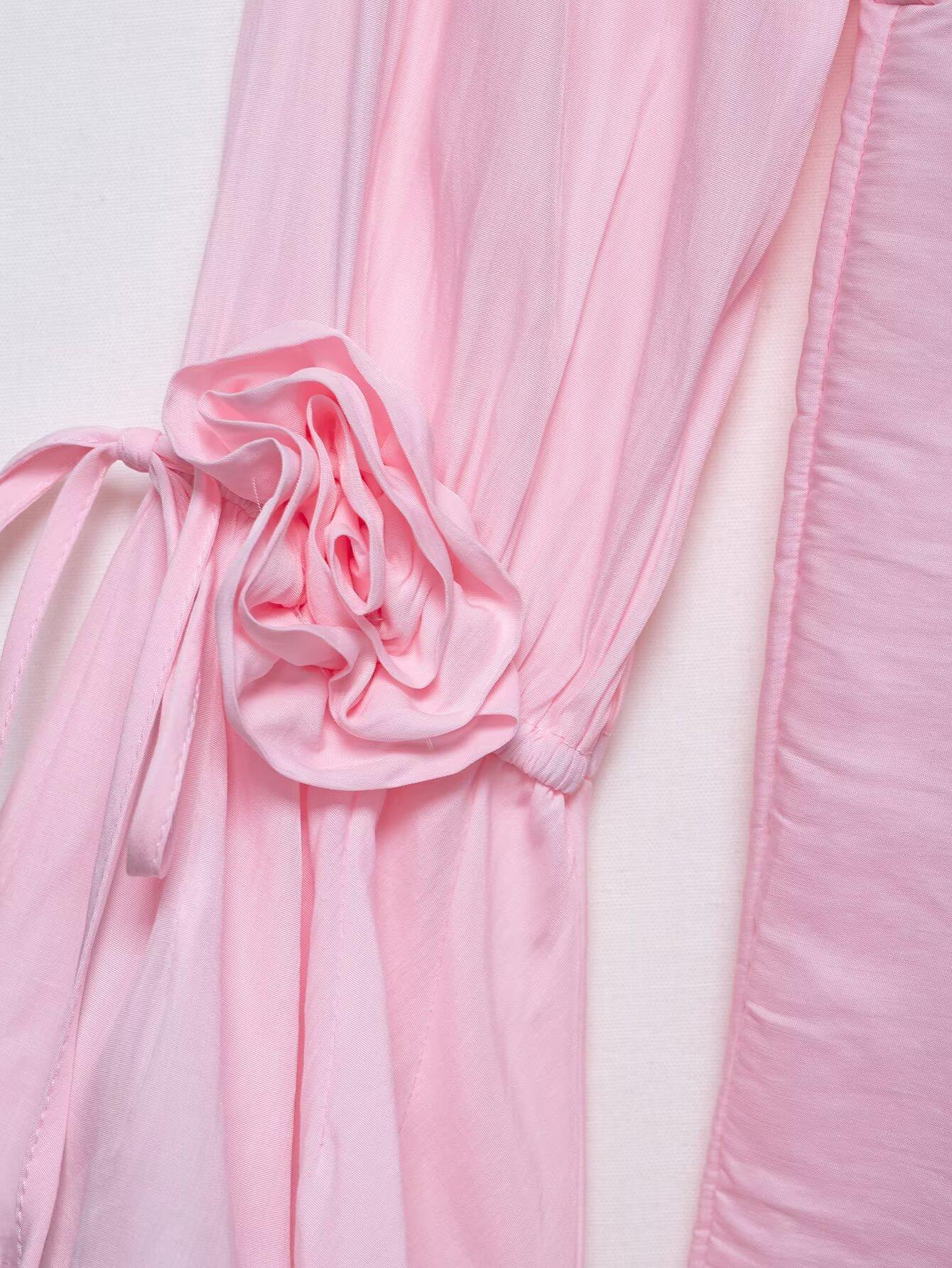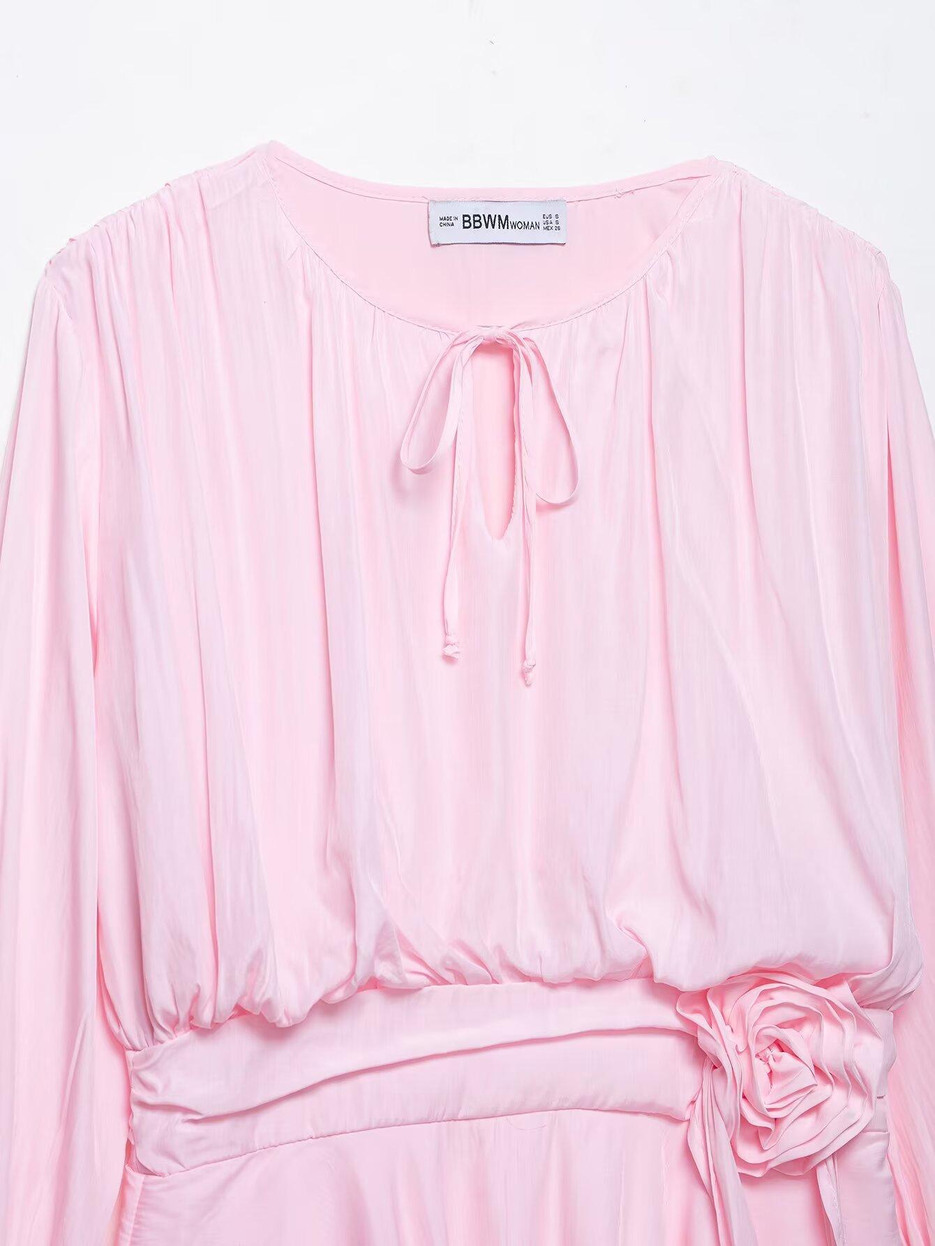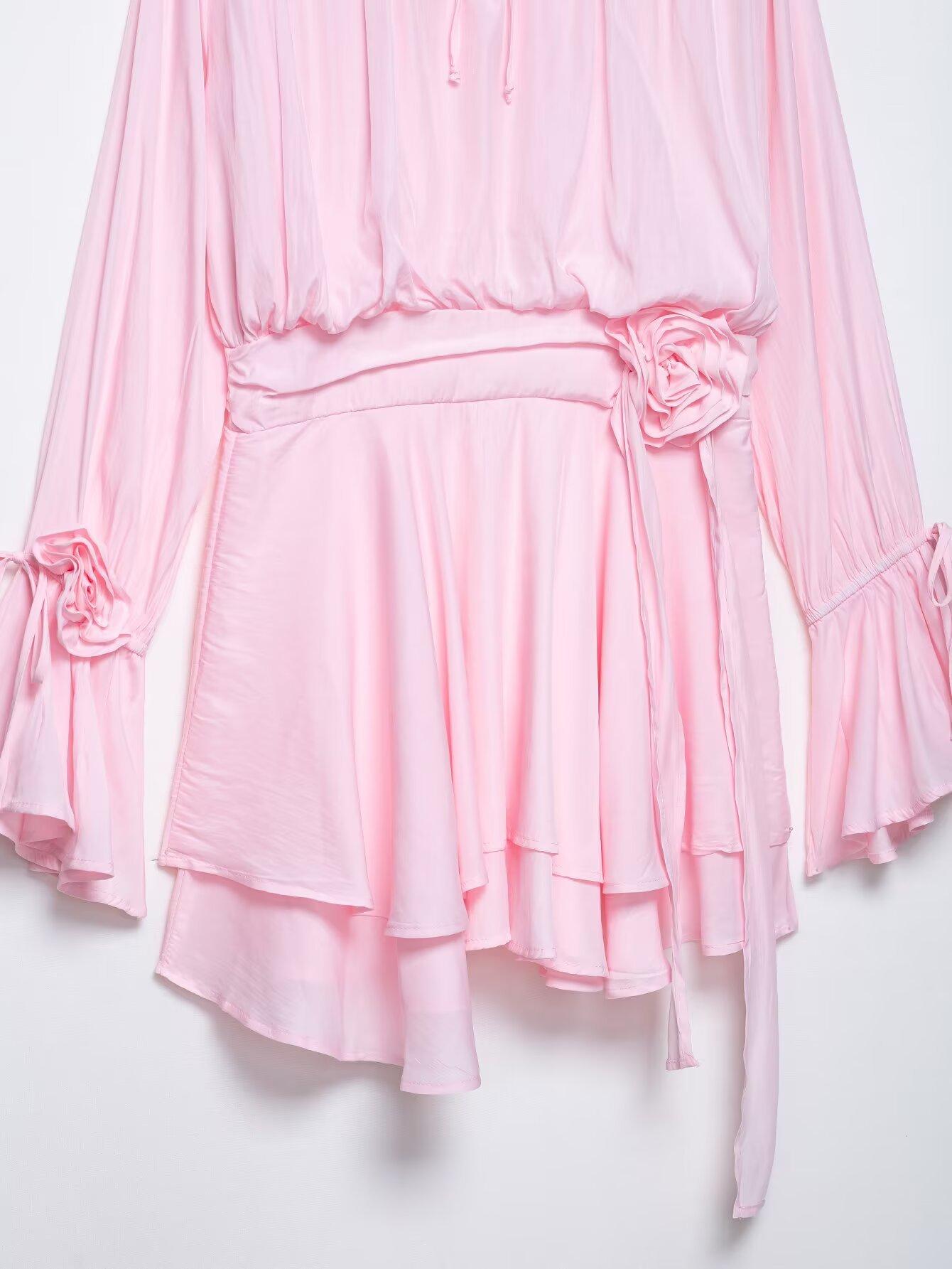 Venta al por mayor 2025 Verano Nuevo Europeo y Americano Transfronterizo Moda Callejera para Mujer Vestido de Manga Larga con Flor Tridimensional y Cinta