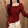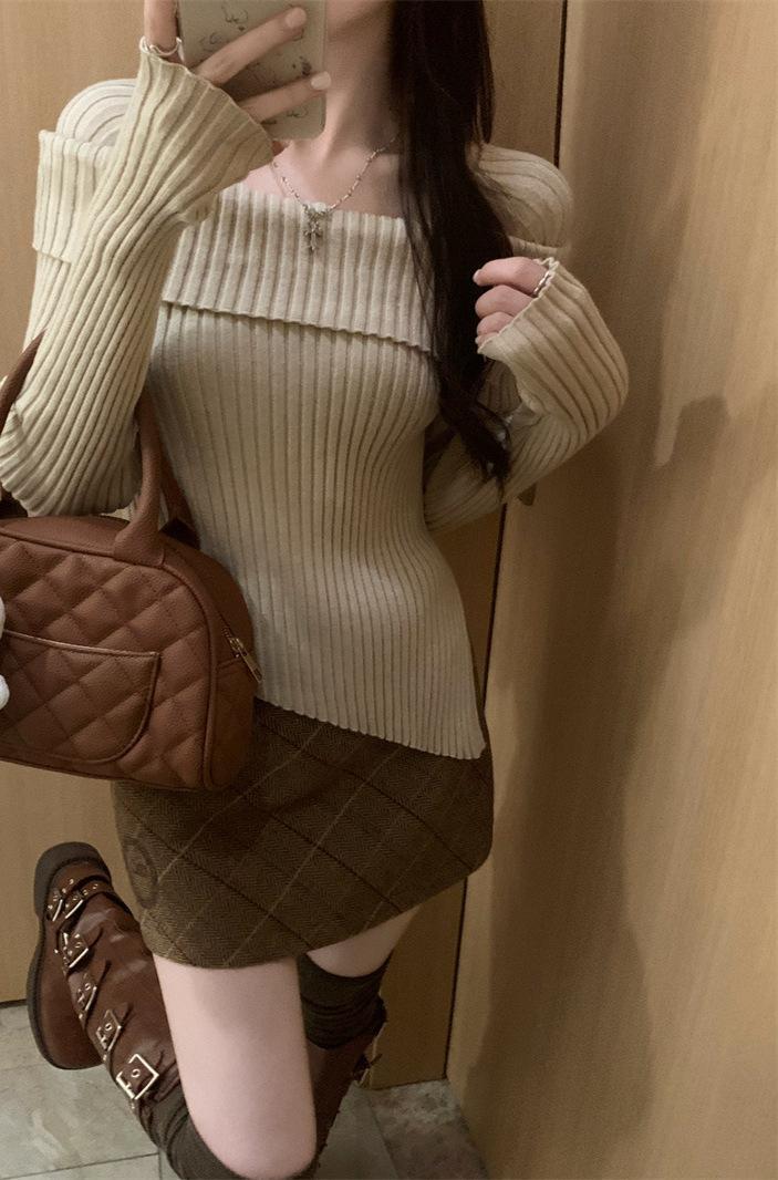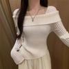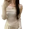Suéter irregular para mujer con hombros descubiertos 2024 otoño e invierno nuevo suéter ajustado corto para usar debajo top tendencia ins