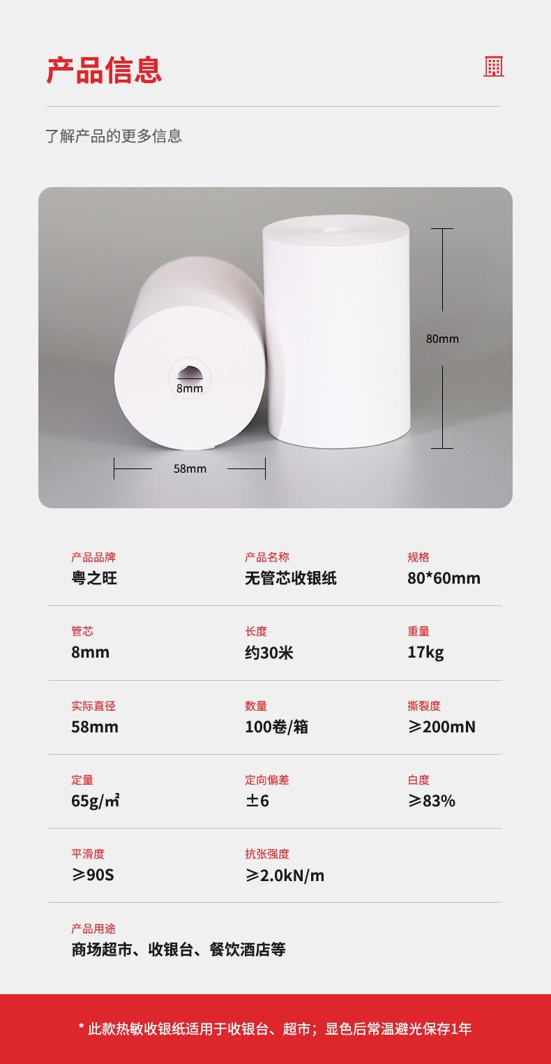 Papel Térmico para Caja Registradora 80x60 Impresión 80mm Papel para Impresora 80*60 Para Llevar Supermercado Papel para Recibo 8060 Sin Núcleo