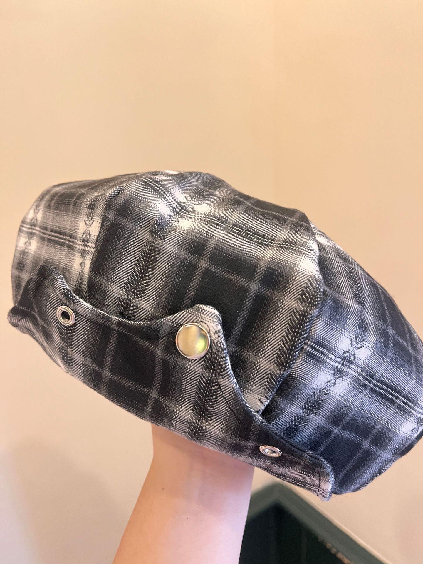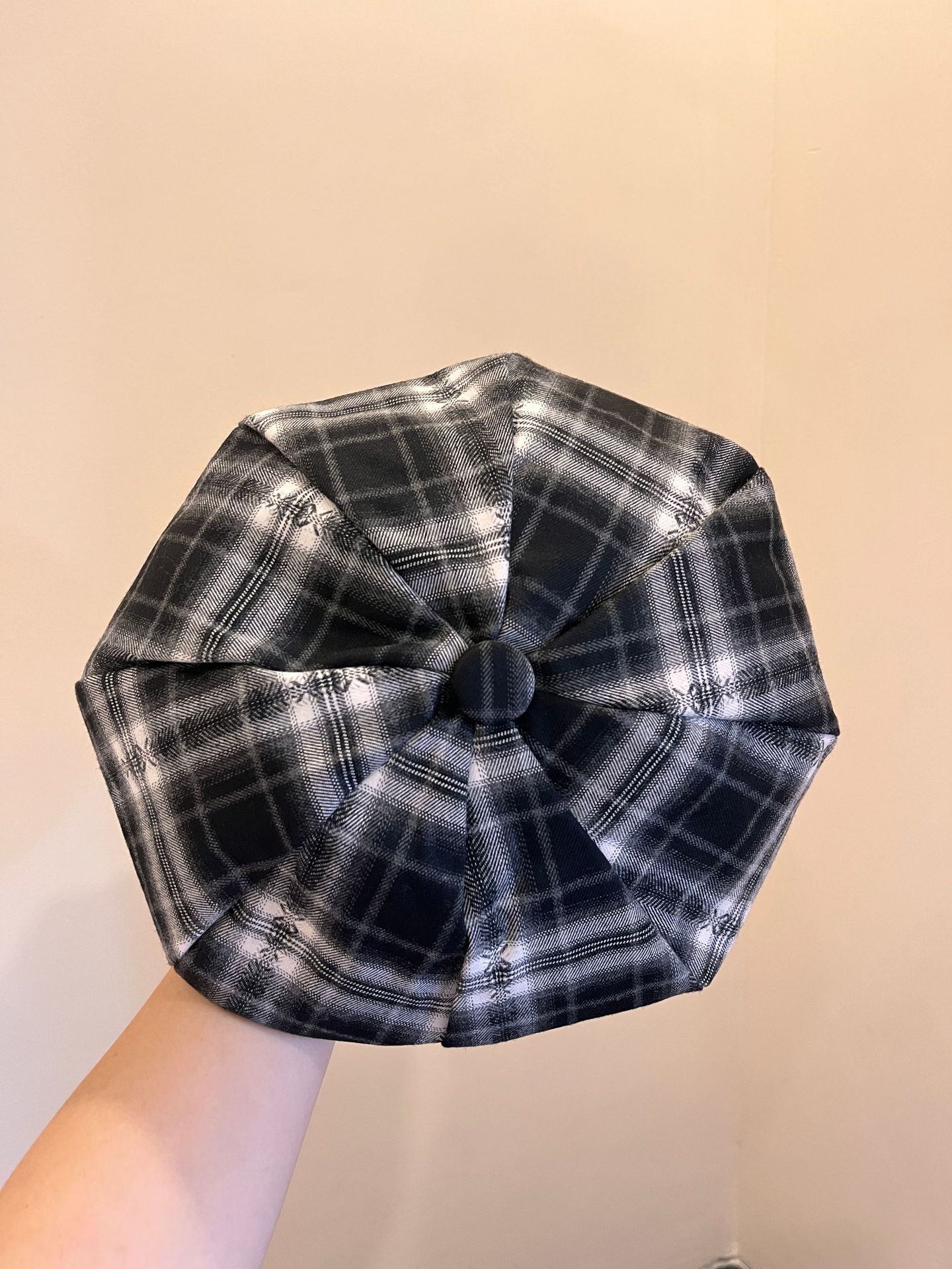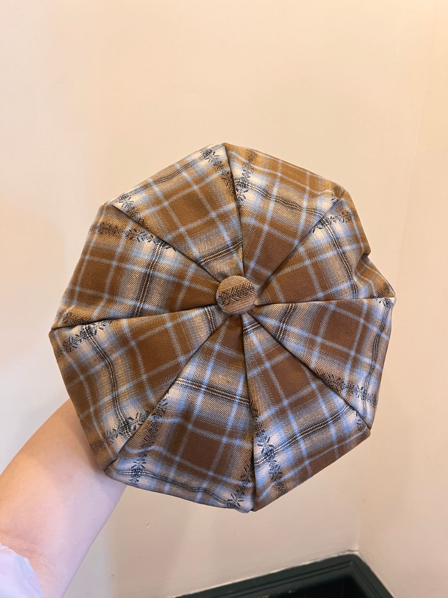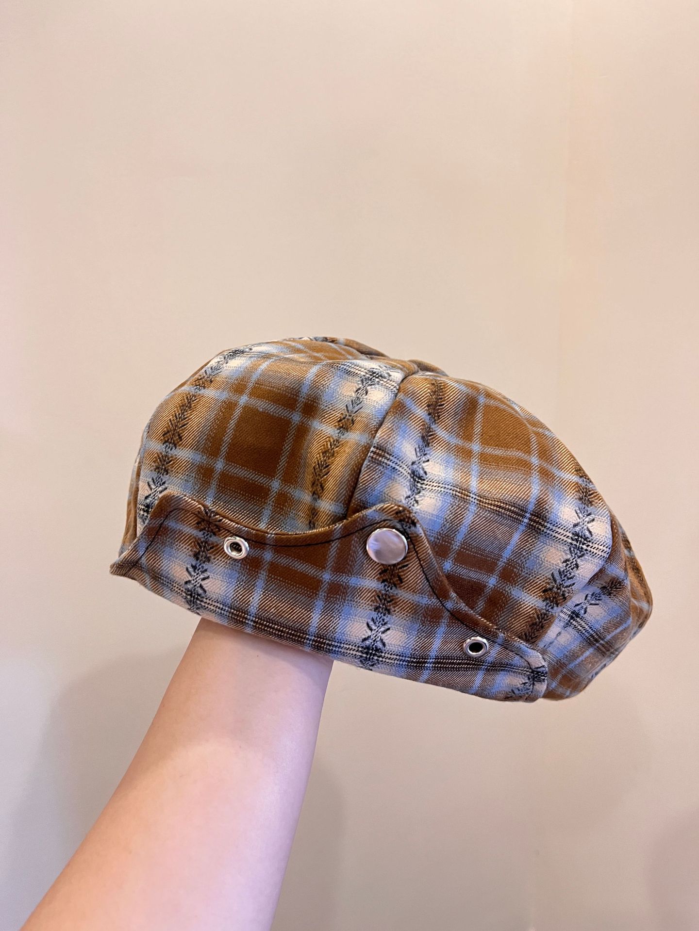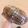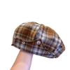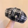 Celebridad de Internet Coreana Dulce Boina con Ala Vuelta para Mujer Temperamento Japonés Versátil Sombrero Octogonal a Cuadros Otoño Versátil Sombrero de Pintor