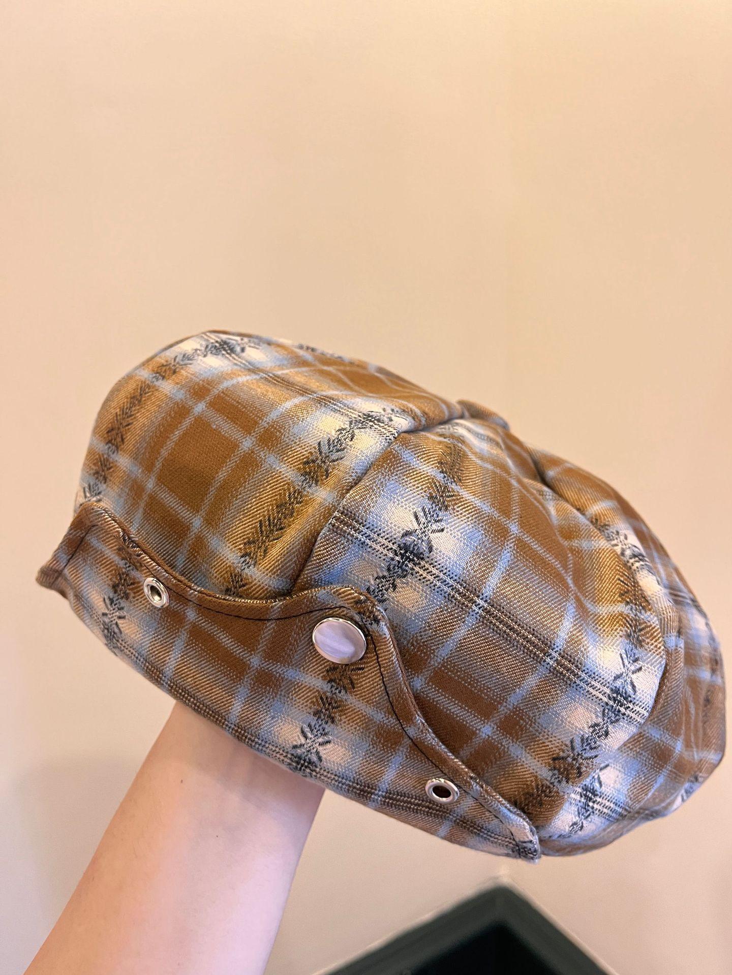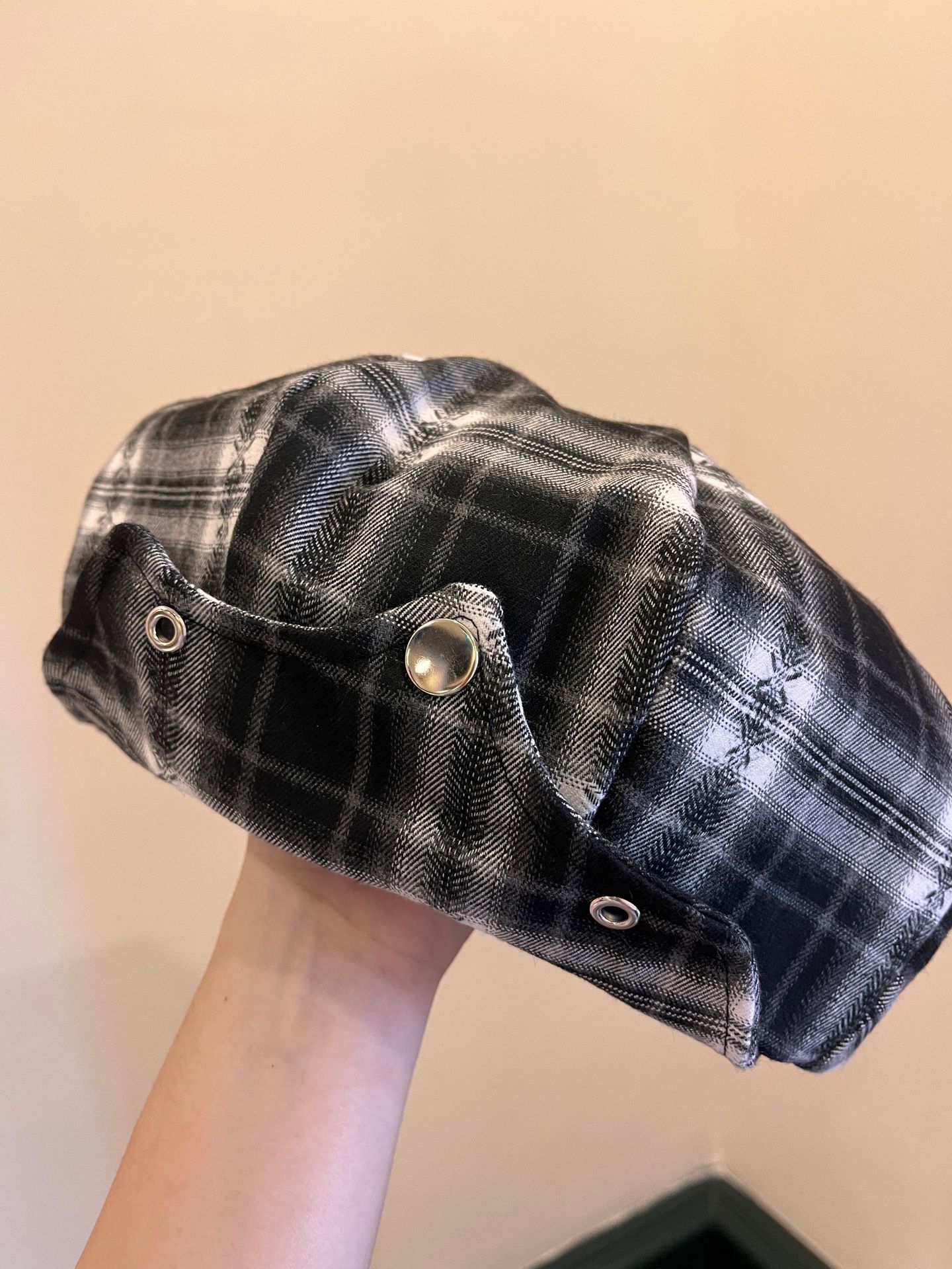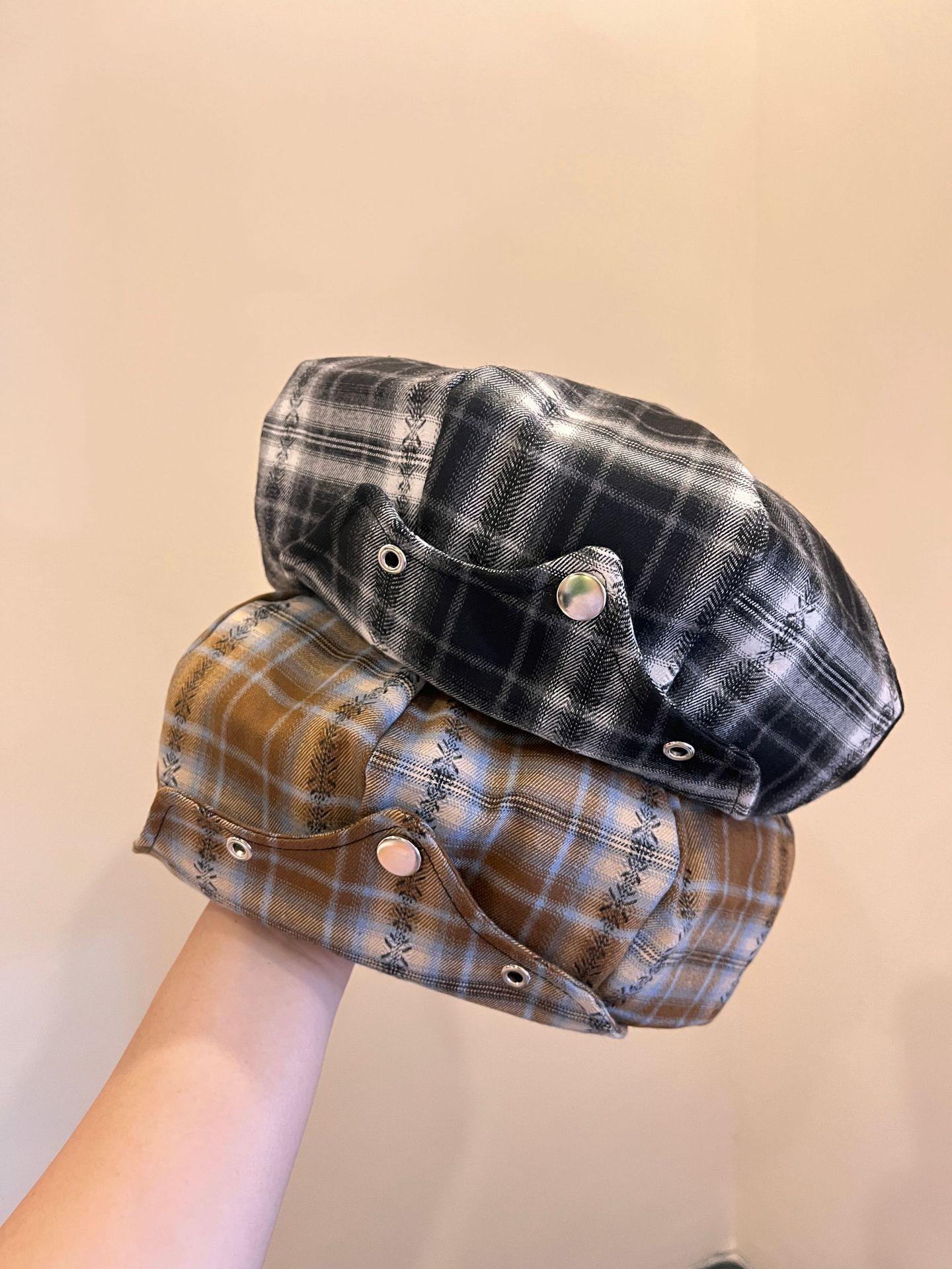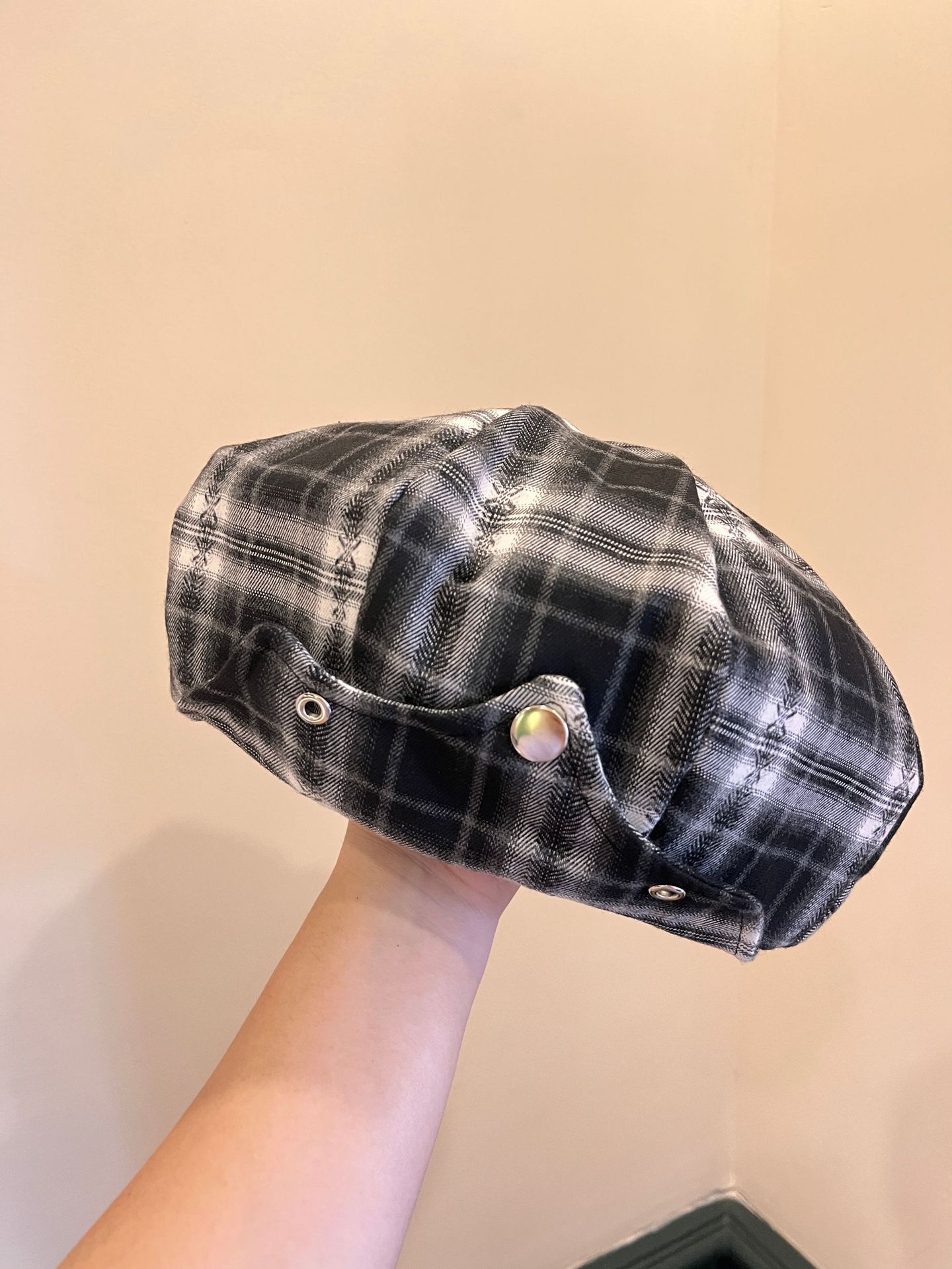 Celebridad de Internet Coreana Dulce Boina con Ala Vuelta para Mujer Temperamento Japonés Versátil Sombrero Octogonal a Cuadros Otoño Versátil Sombrero de Pintor