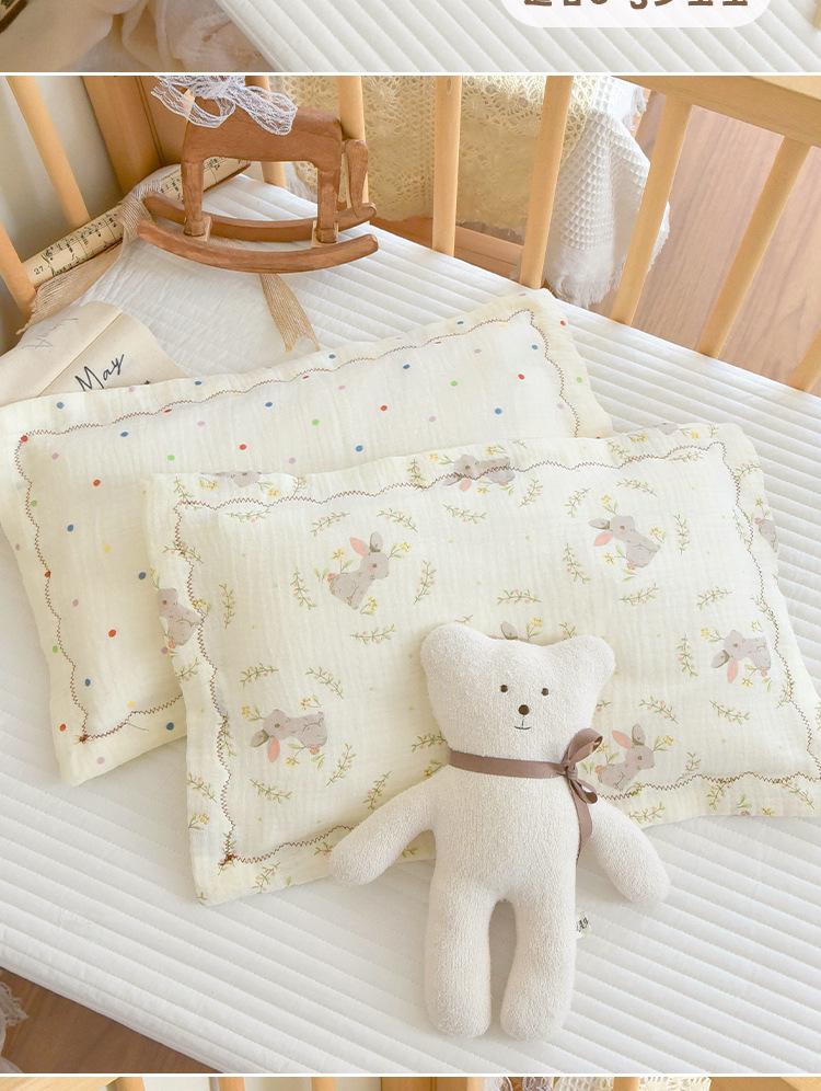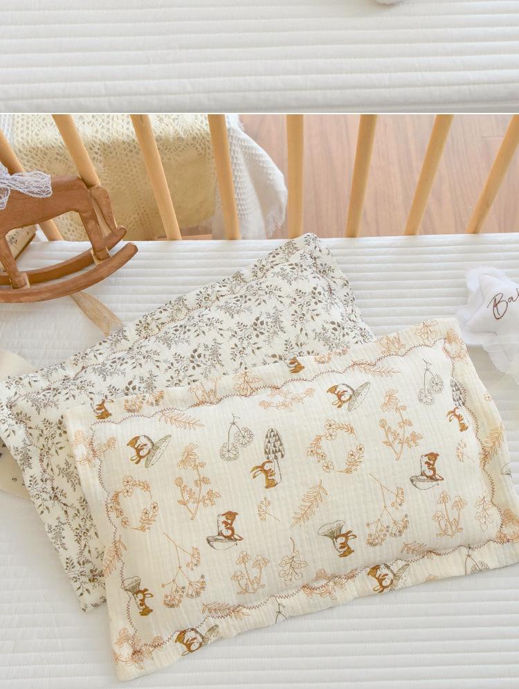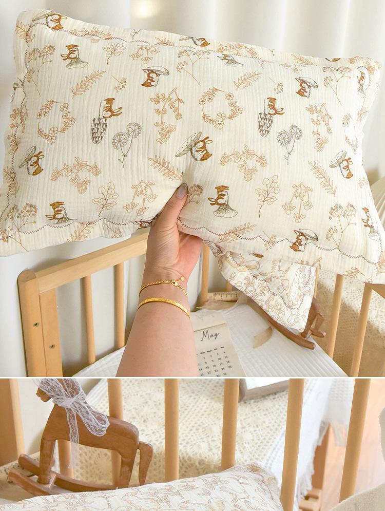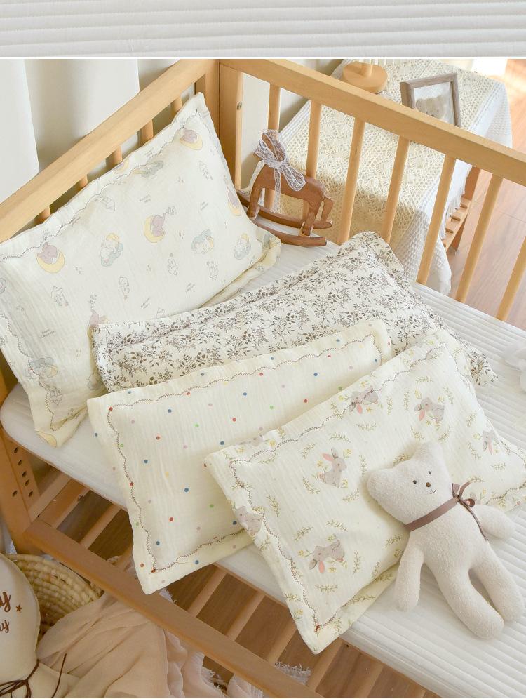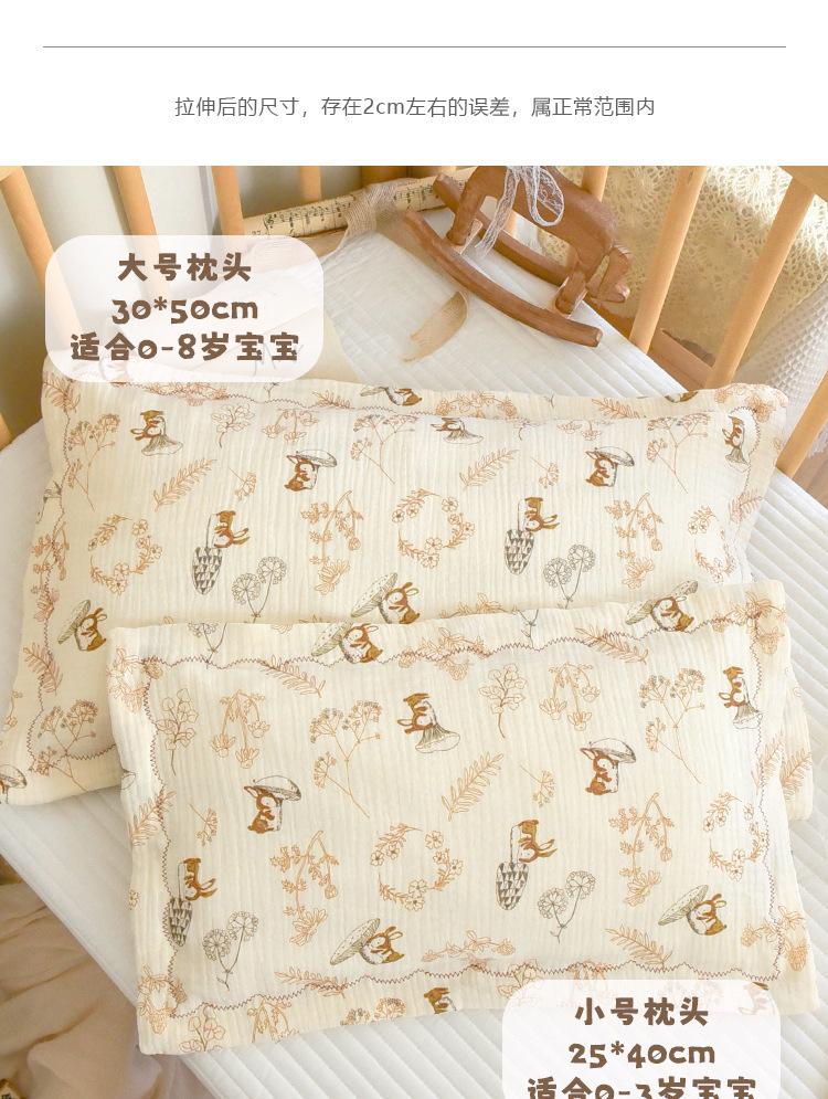 Almohada de gasa para bebés y niños pequeños Tejido de gasa de algodón 100% seleccionado, transpirable, respetuoso con la piel, suave y cómodo Adoptando un diseño tipo sobre, es conveniente cambiar y lavar la funda de almohada. Hay dos tipos de rellenos de almohada disponibles: cáscara de trigo sarraceno y algodón. El estilo de algodón es esponjoso y suave, con incluso transpirabilidad. El estilo de cáscara de trigo sarraceno tiene buena fluidez y no es propenso a colapsar. Hecho con patrones de impresión reactiva en toda la superficie, infantil y lindo, no se desvanece fácilmente Diseño elegante con bies acolchado, hermoso y atmosférico, duradero Calidad clase A, sin fluorescencia.