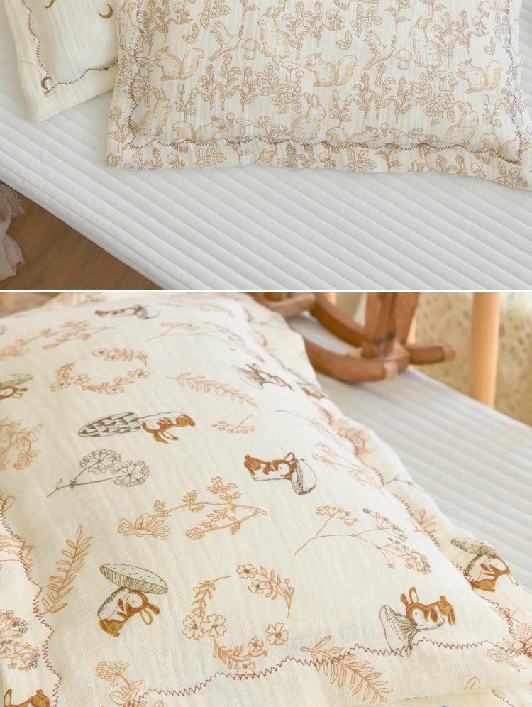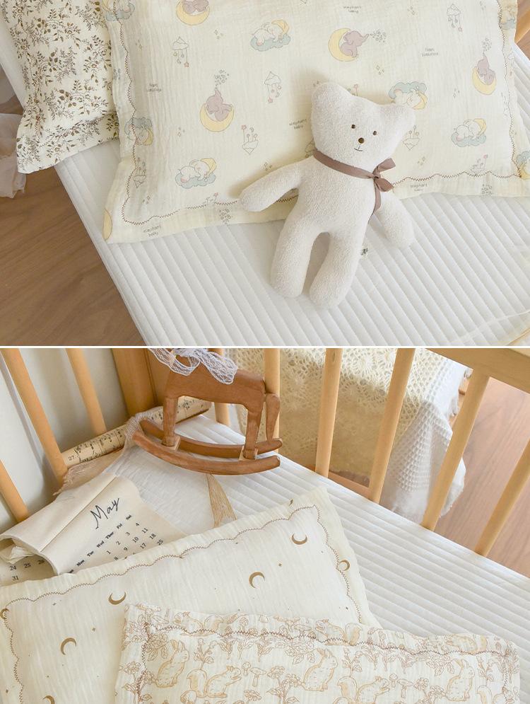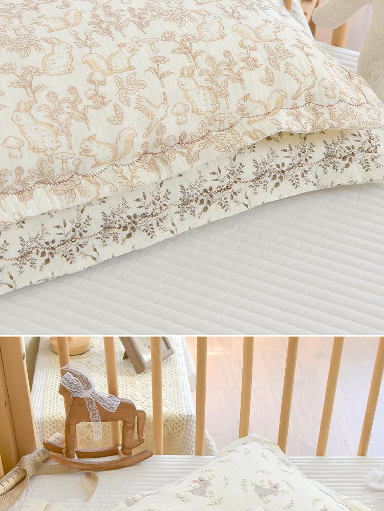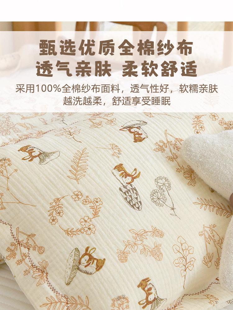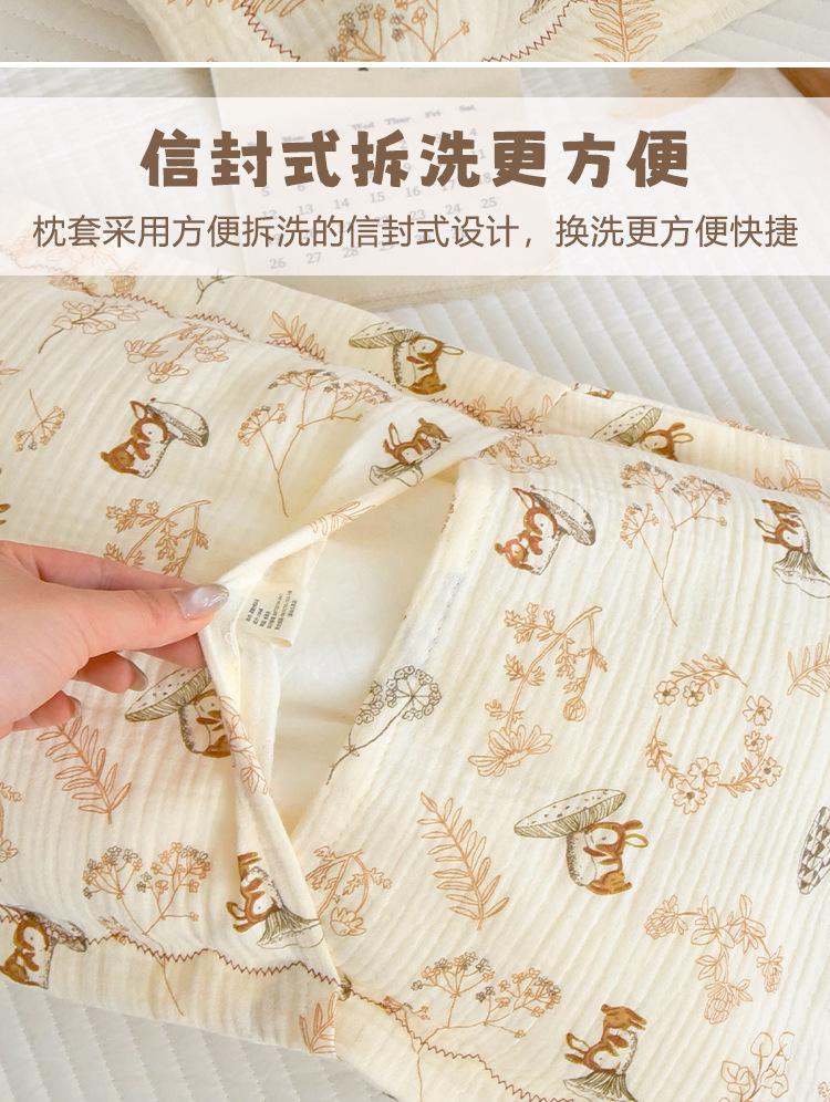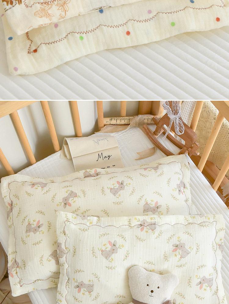 Almohada de gasa para bebés y niños pequeños Tejido de gasa de algodón 100% seleccionado, transpirable, respetuoso con la piel, suave y cómodo Adoptando un diseño tipo sobre, es conveniente cambiar y lavar la funda de almohada. Hay dos tipos de rellenos de almohada disponibles: cáscara de trigo sarraceno y algodón. El estilo de algodón es esponjoso y suave, con incluso transpirabilidad. El estilo de cáscara de trigo sarraceno tiene buena fluidez y no es propenso a colapsar. Hecho con patrones de impresión reactiva en toda la superficie, infantil y lindo, no se desvanece fácilmente Diseño elegante con bies acolchado, hermoso y atmosférico, duradero Calidad clase A, sin fluorescencia.