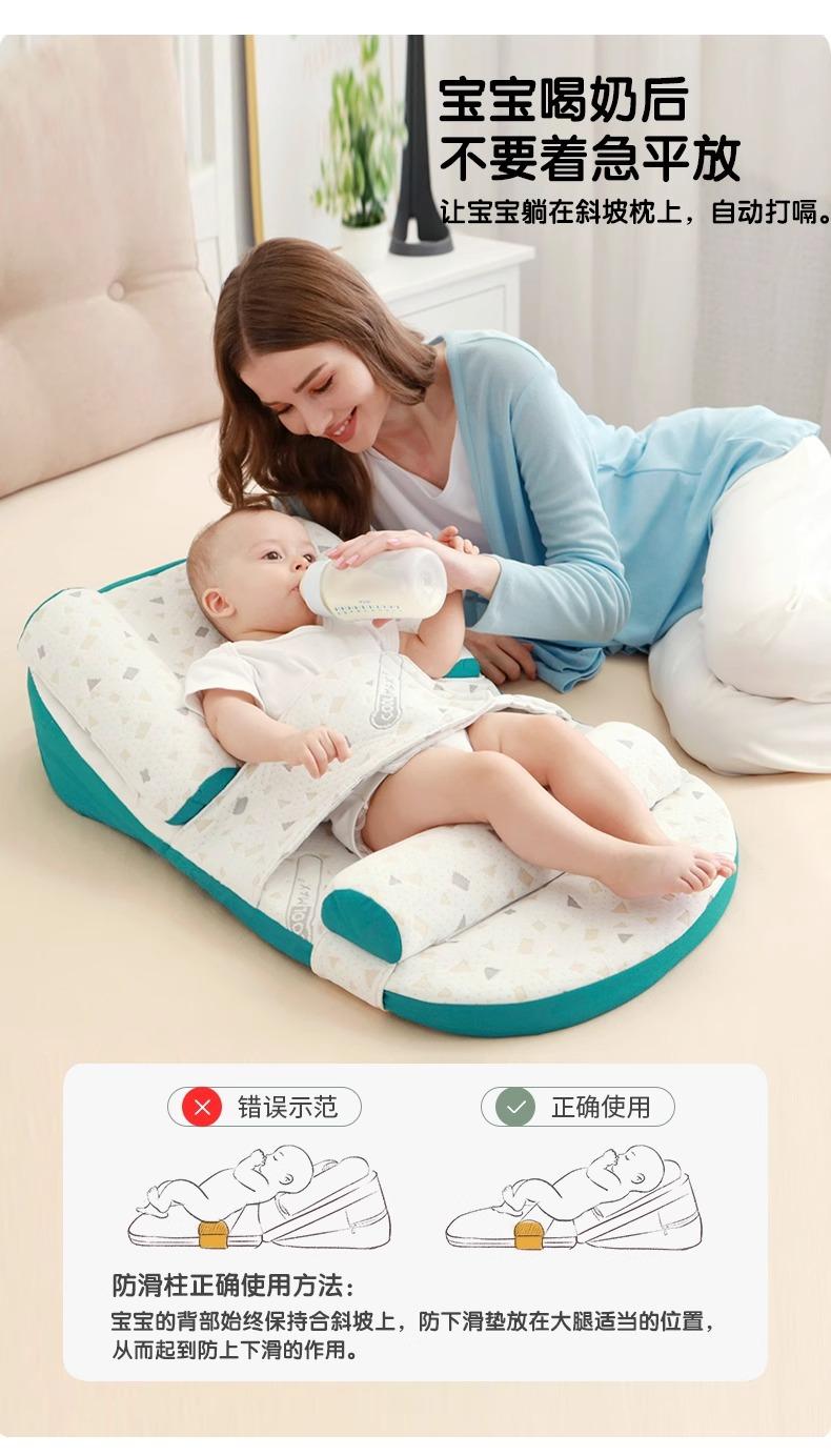 Almohadilla Inclinada Anti-Vómitos para Bebé Almohada Anti-Reflujo de Leche para Bebé Cama Inclinada Artefacto para Alimentación de Recién Nacido Cama Dentro de Cama Removible