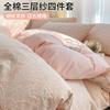 Sábana de Gasa de Doble Capa Fresca y Simple Algodón de Punto Sábana Estampada Juego de Tres Piezas Grado para Dormir Desnudo Ultrasuave Sábana Individual para Todas las Estaciones