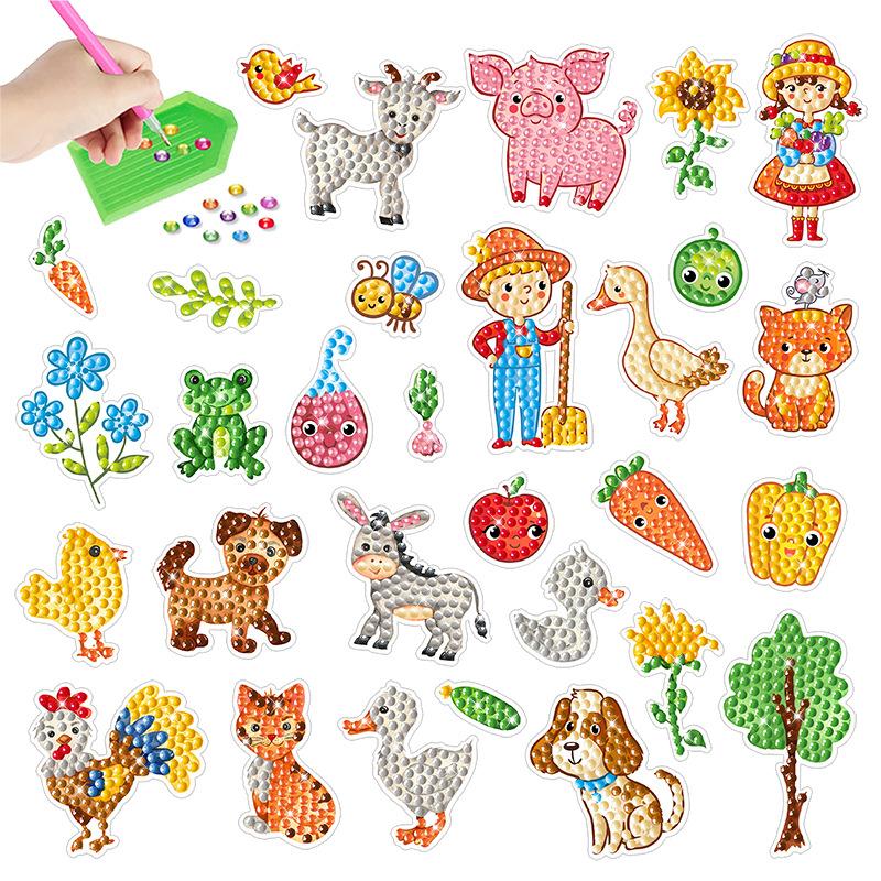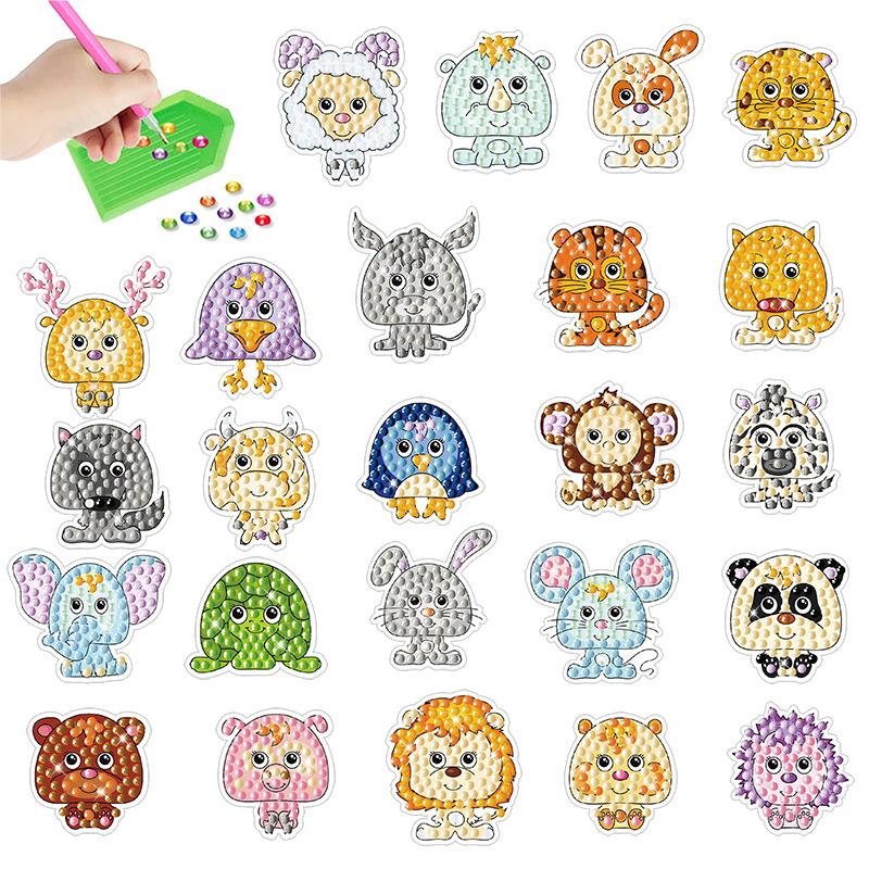 Pintura de Diamantes DIY Transfronteriza, Pintura de Diamantes de Puntos al Azar de Animales de Dibujos Animados Hecha a Mano Versión Q, Pegatinas de Diamantes para Niños al Por Mayor