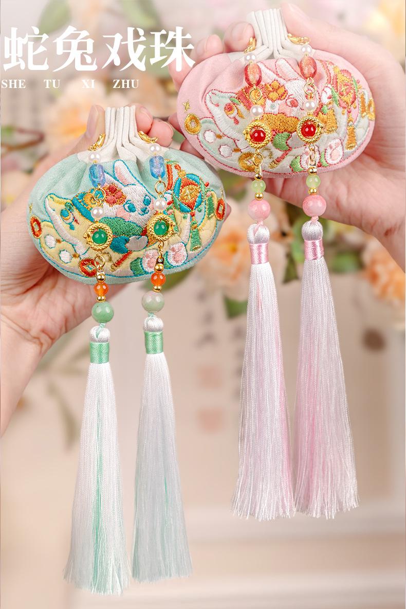 [Qian Li] Saquito del Festival del Bote del Dragón Saquito Bordado Bolsa Vacía Saquito Bordado Bolsillo Antiguo Colgante Hanfu Venta al por Mayor