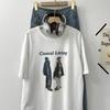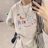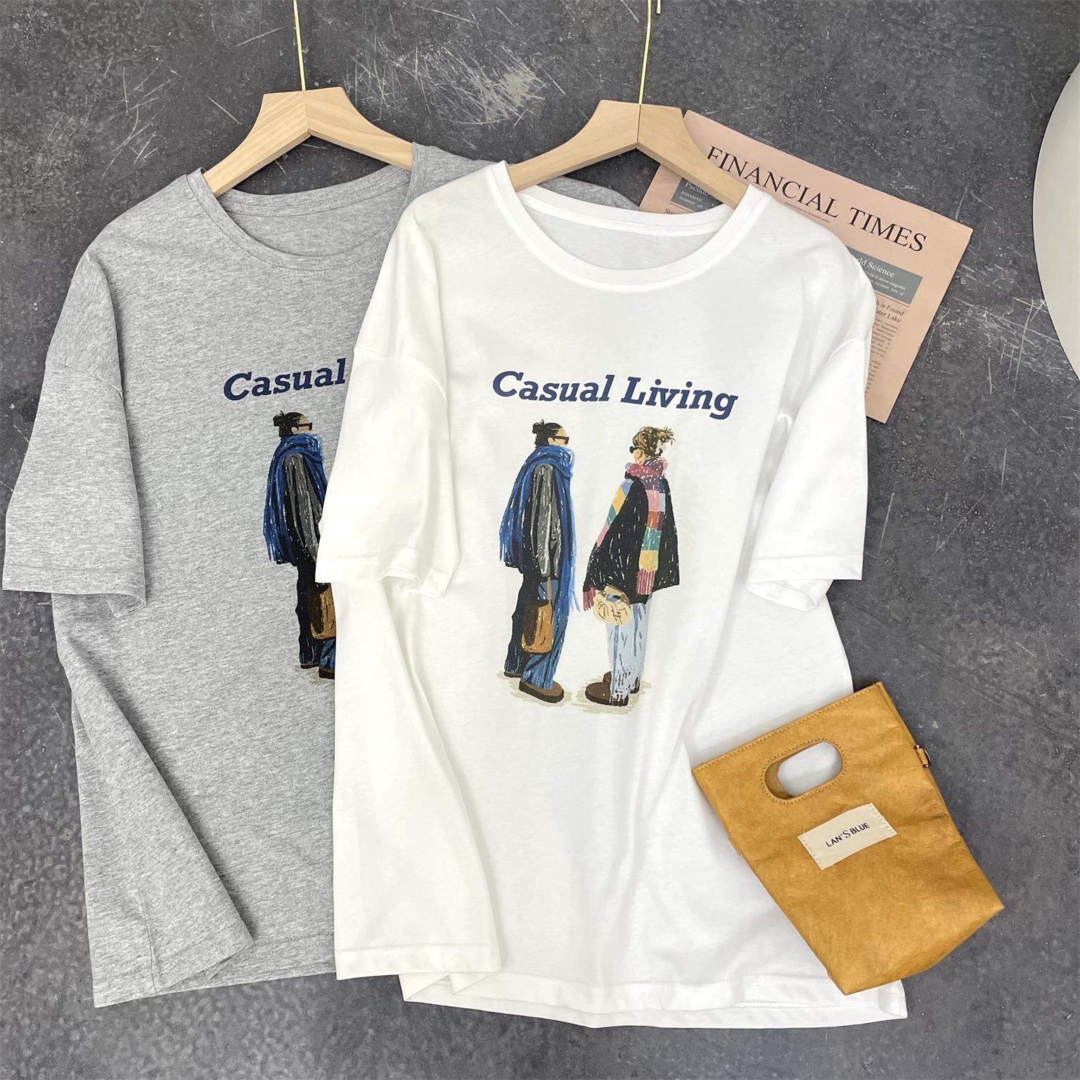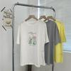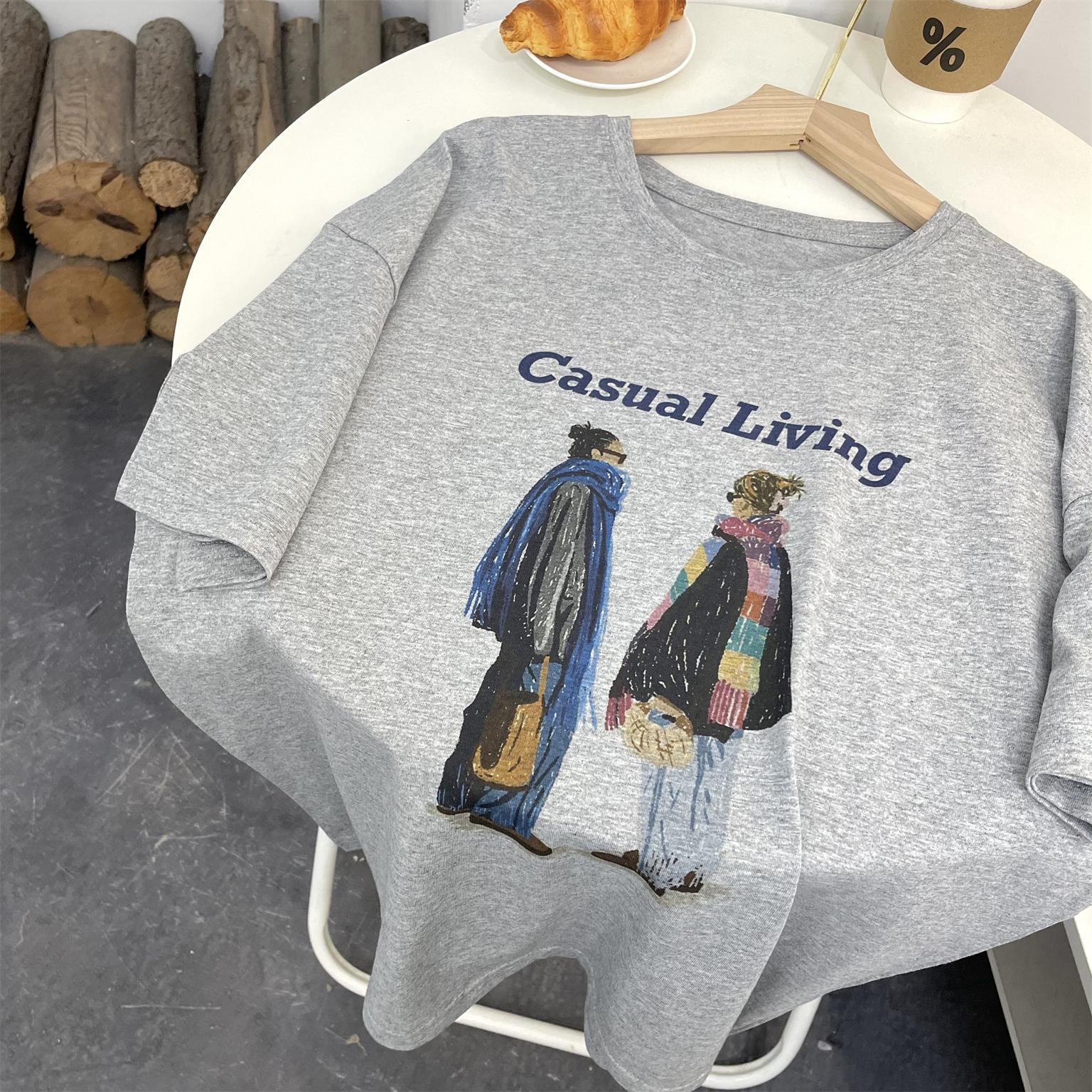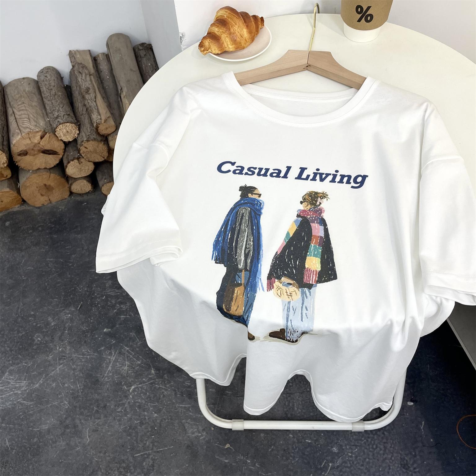 Tops de Manga Corta con Estampado de Personajes Estilo Coreano para Mujer Nueva Moda Look Holgado Adelgazante Algodón Puro Camiseta de Cuello Redondo Venta al por Mayor