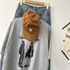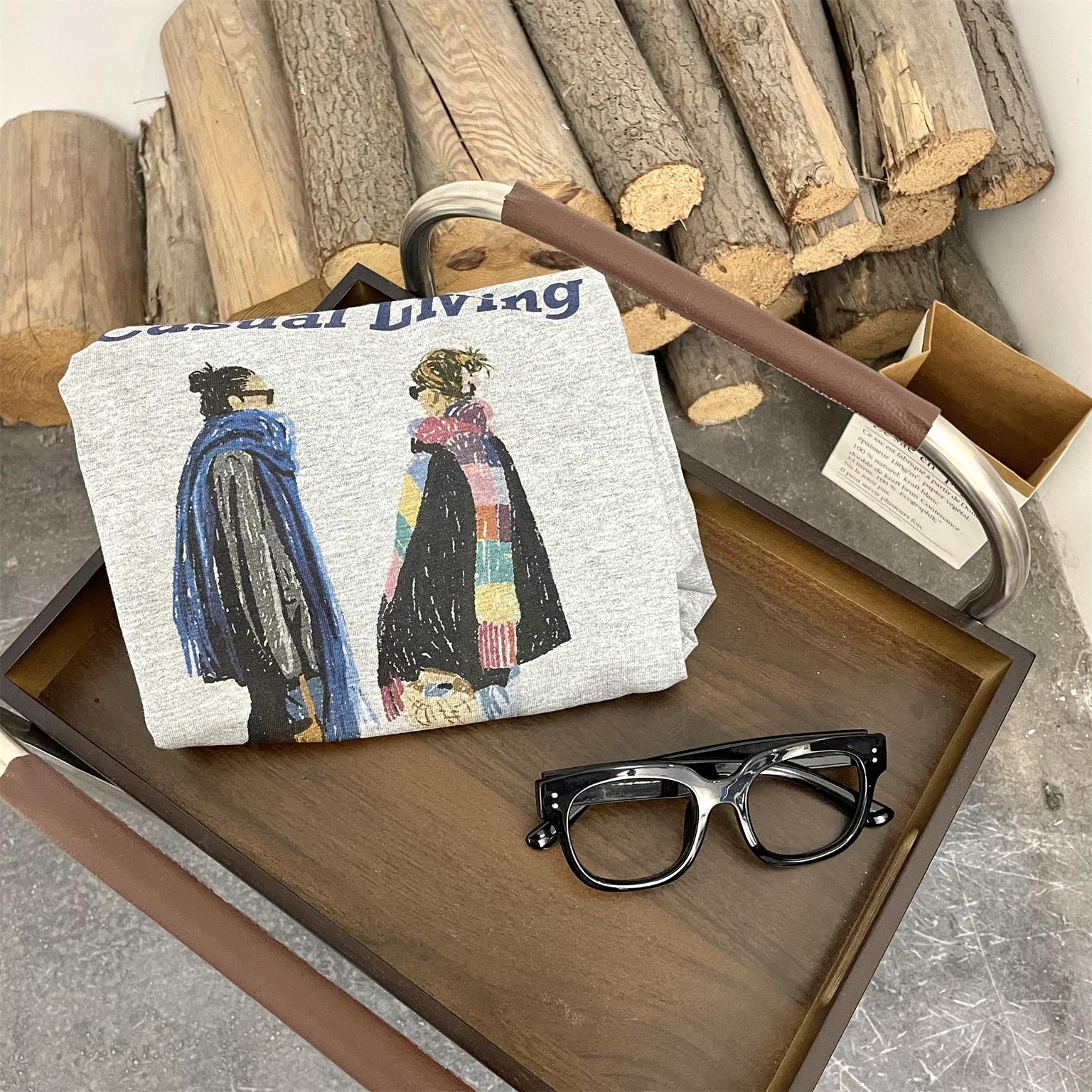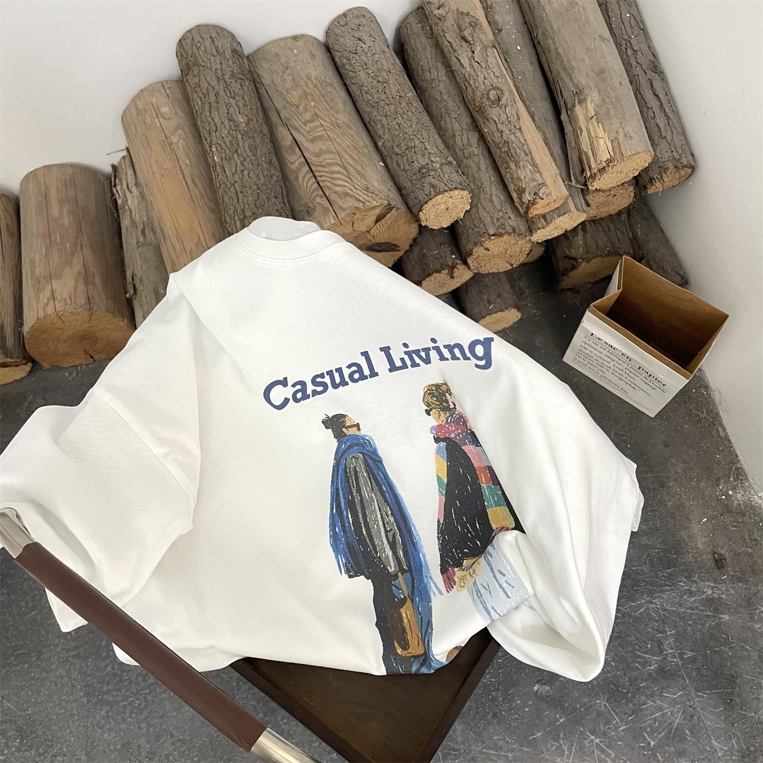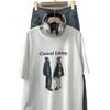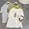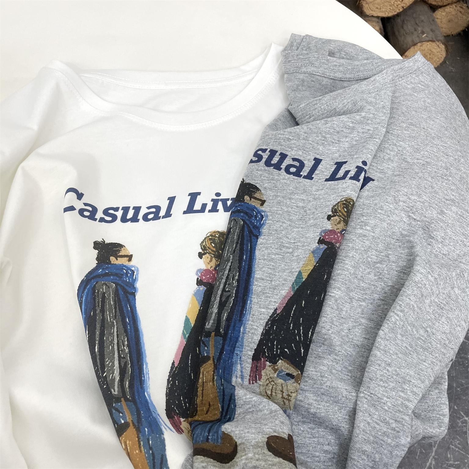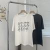 Tops de Manga Corta con Estampado de Personajes Estilo Coreano para Mujer Nueva Moda Look Holgado Adelgazante Algodón Puro Camiseta de Cuello Redondo Venta al por Mayor