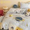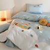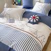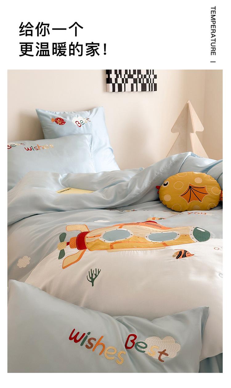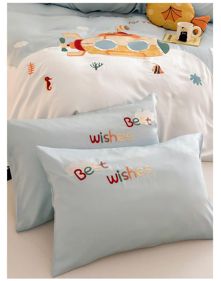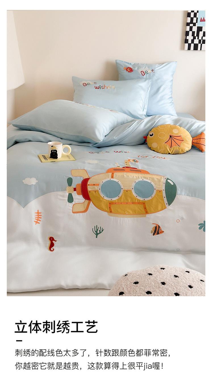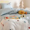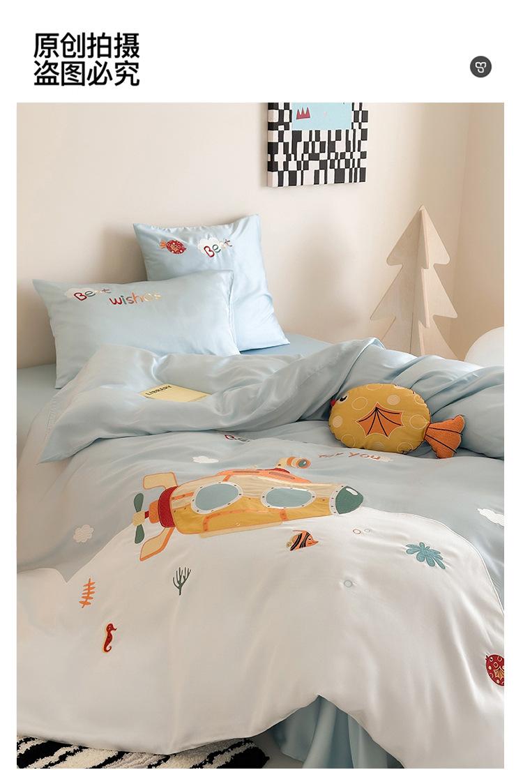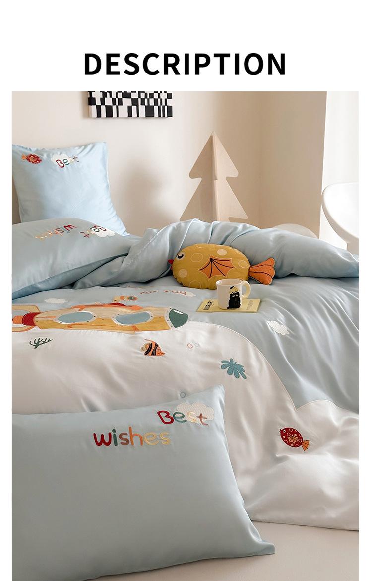 Juego de cuatro piezas de algodón para niños estilo caricatura Bordado Mundo Submarino Algodón Puro Lindo Funda Nórdica Ropa de Cama 1.2 Azul