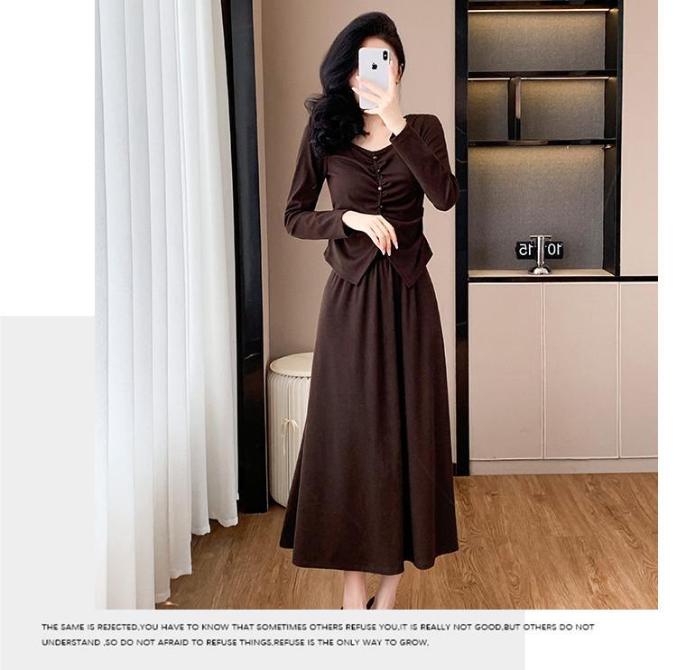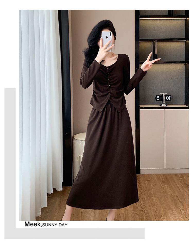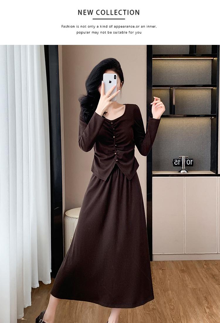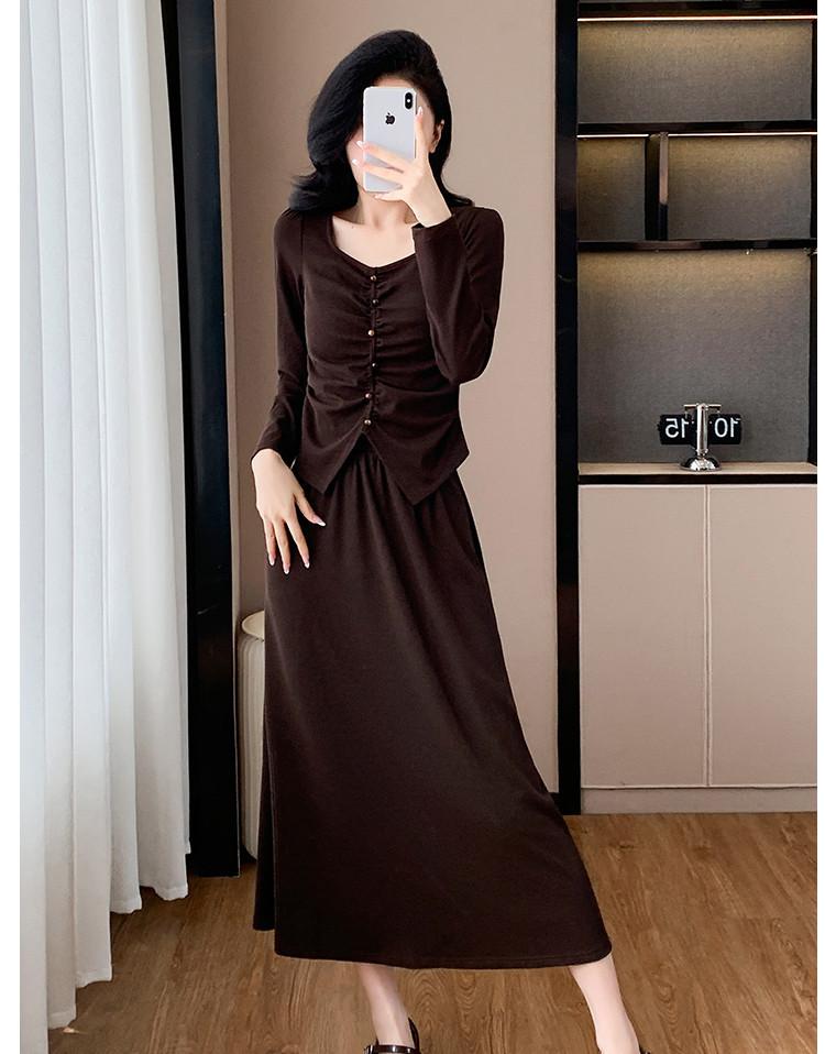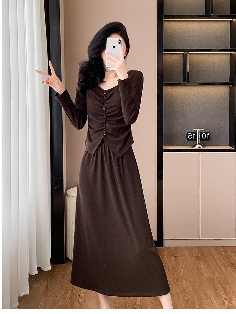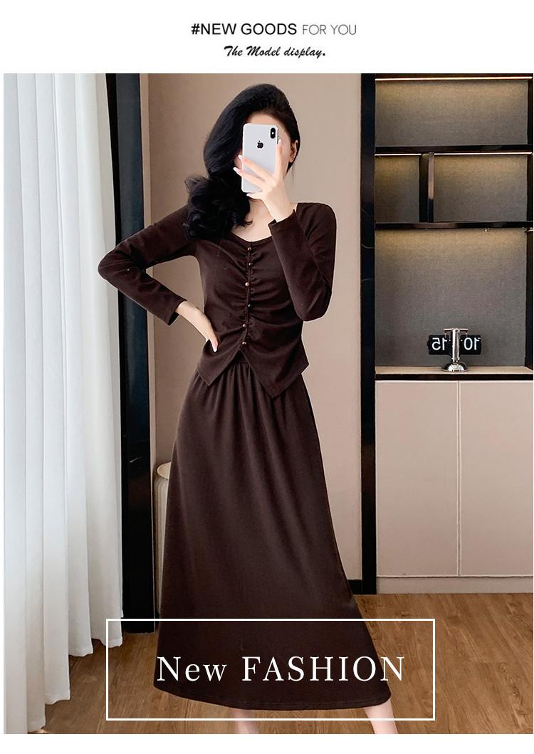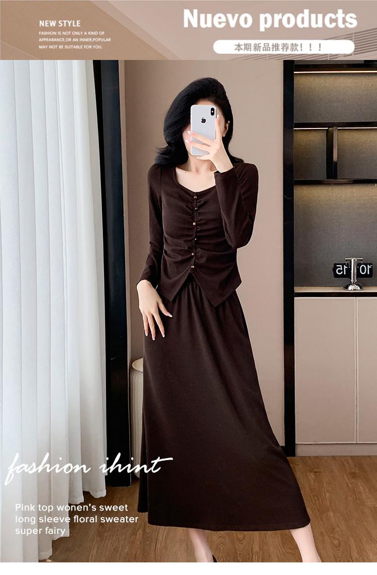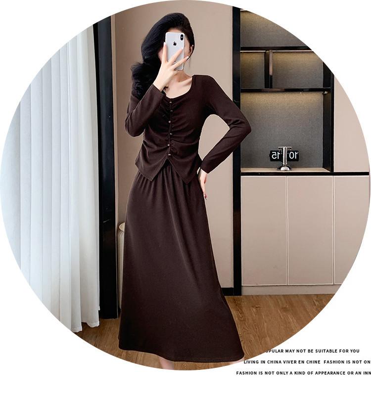 2025 Otoño Transfronterizo Temperamento Traje de Moda Francesa Falda Plisada Top Falda Midi Conjunto de Dos Piezas