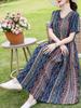 Verano Nuevo Vestido Algodón Seda Mujer Suelto Adelgazante Mediana Edad y Anciana Madre Falda de Vuelo Grande Temperamento Vestido Largo