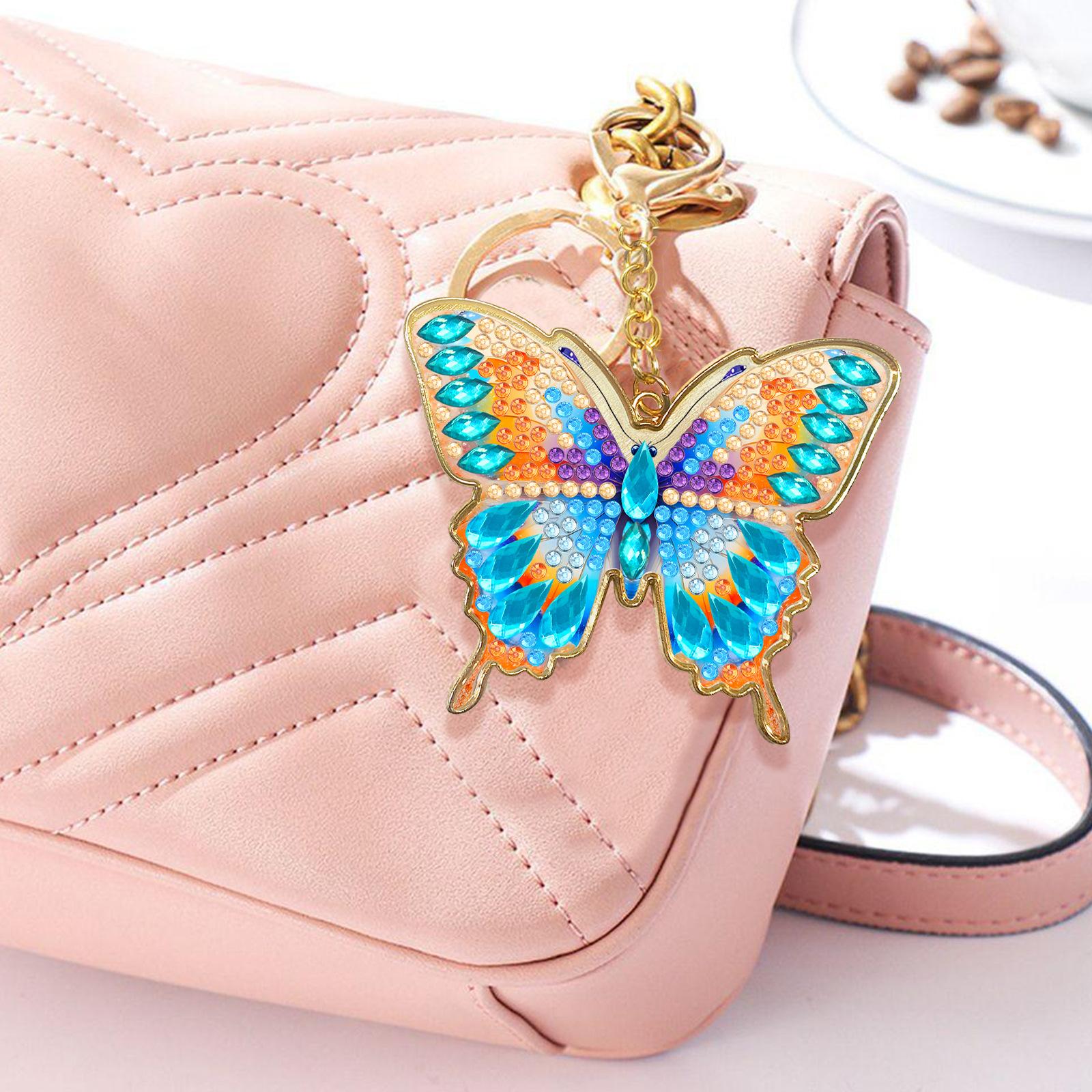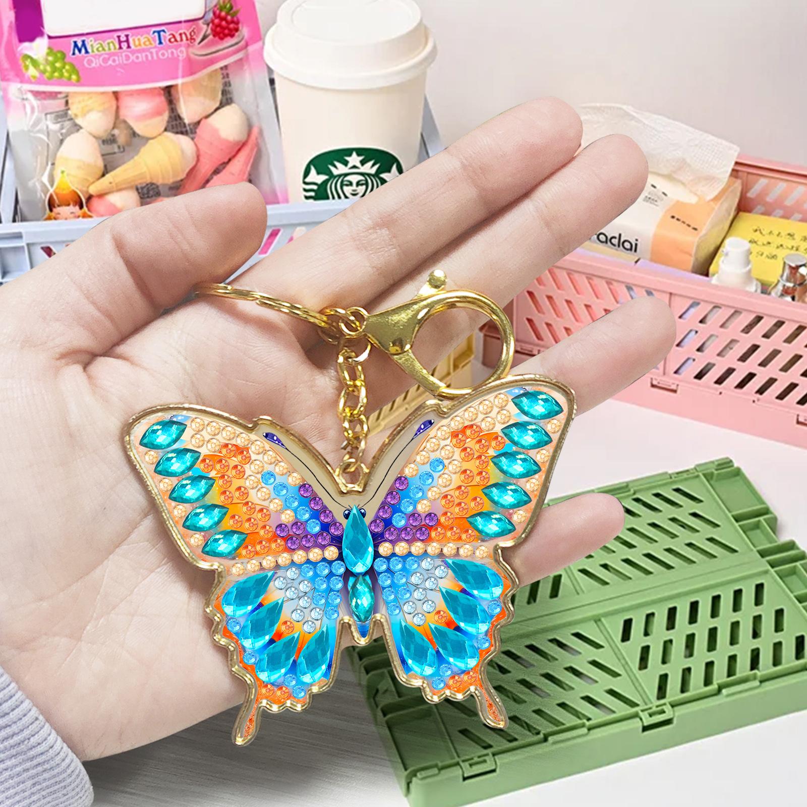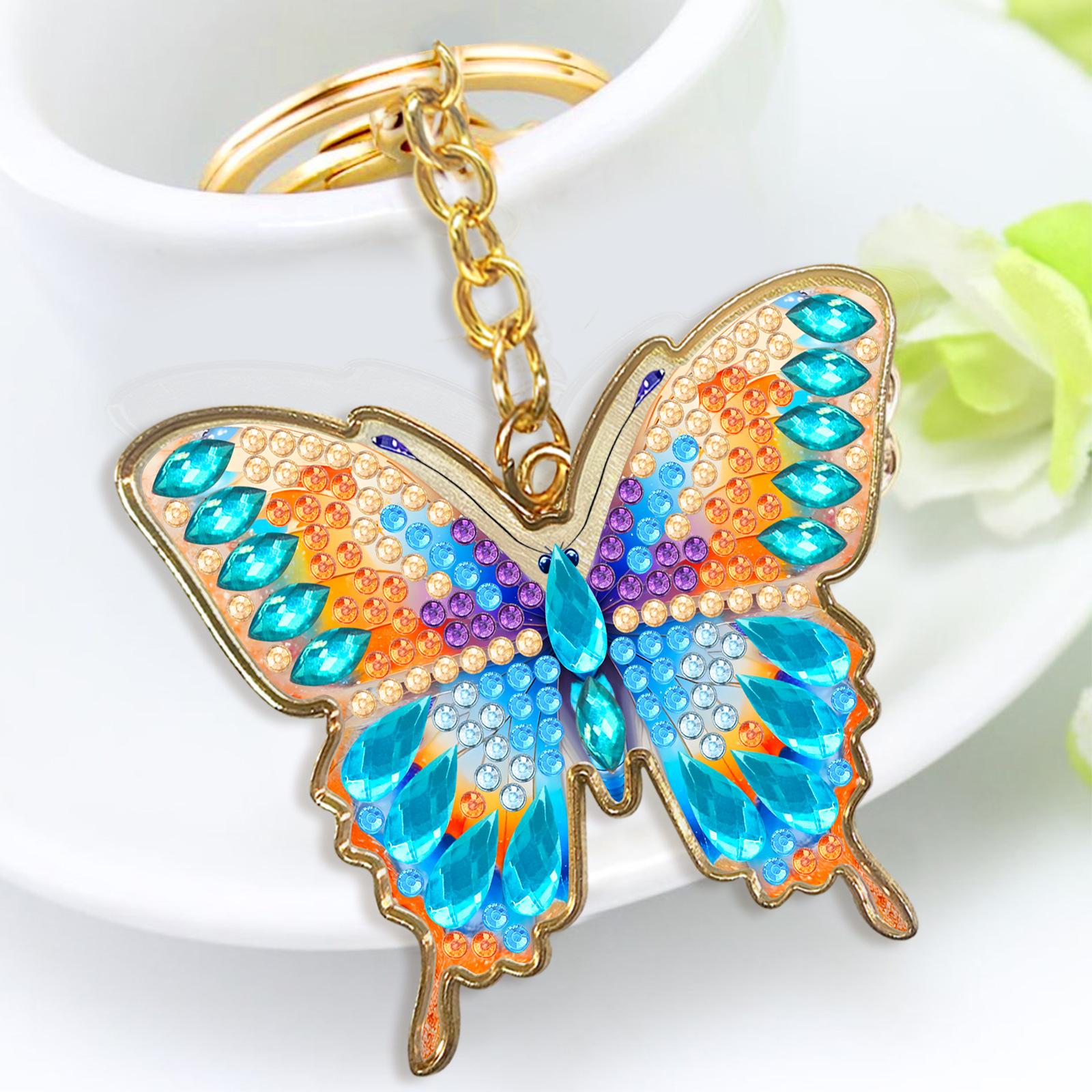Pintura de Diamantes DIY Periférico Productos Nuevos Perforación de Puntos Creativa Hecho a Mano Llavero de Mariposa de Metal Pintura Decorativa Transfronteriza Venta al por Mayor