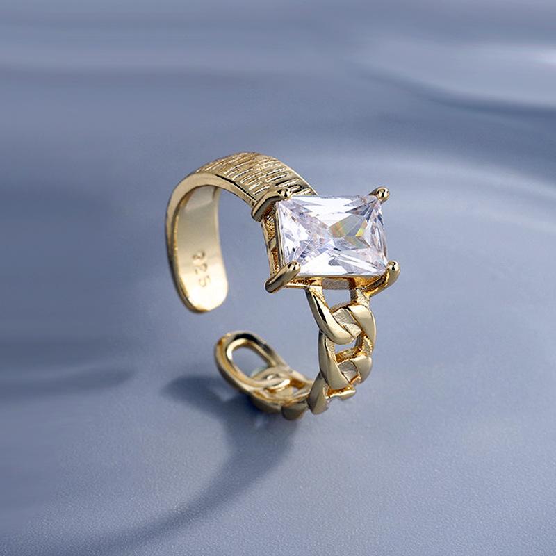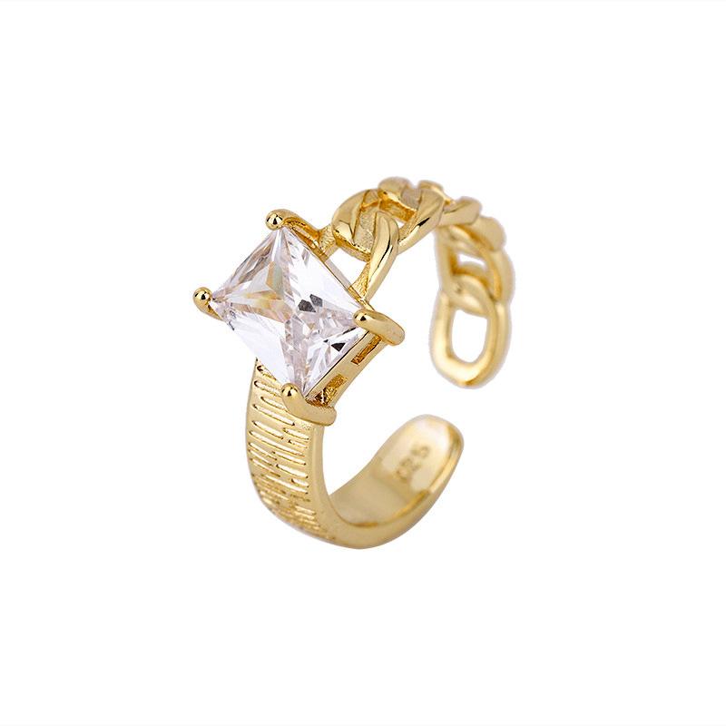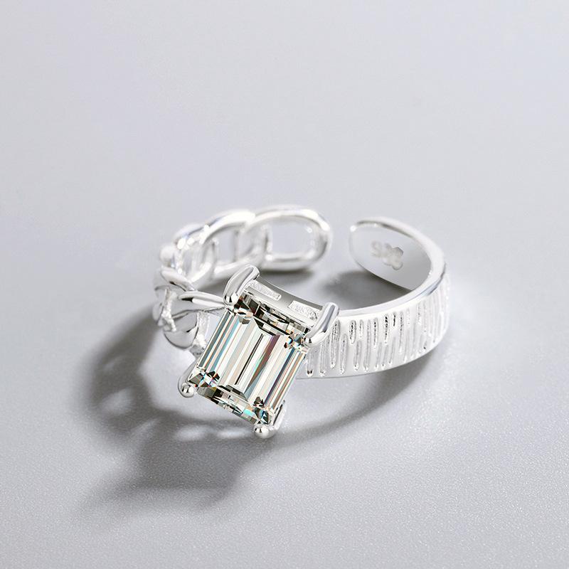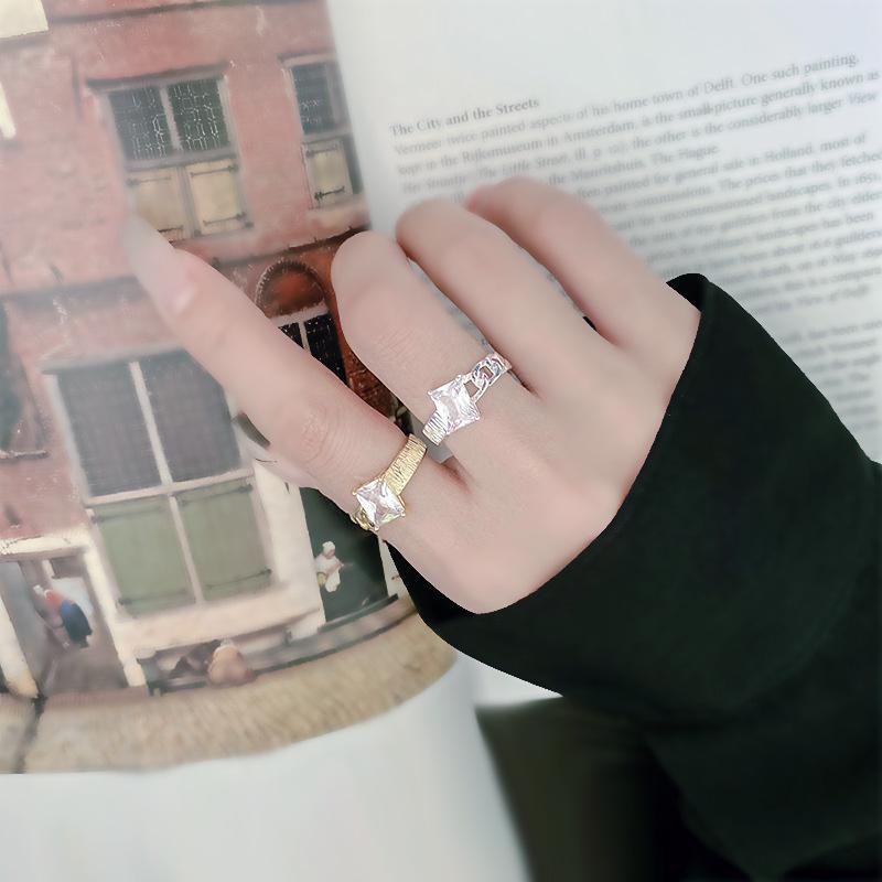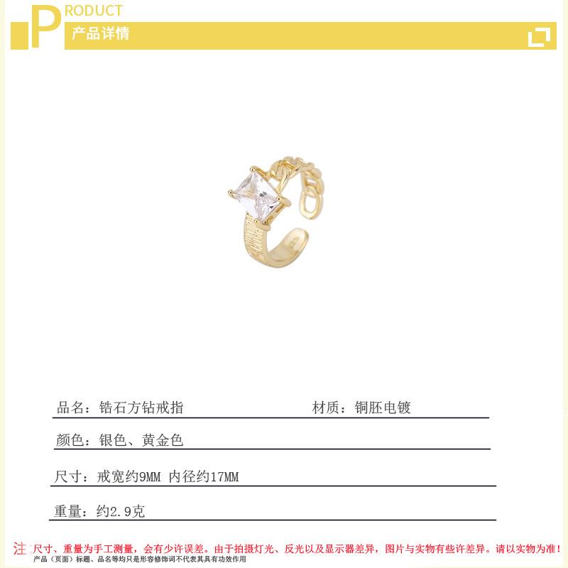 Anillo abierto de diamantes cuadrados de circonio incrustado, temperamento de rojo neto, textura de viento frío, geométrico, para nudillo del dedo índice, venta al por mayor