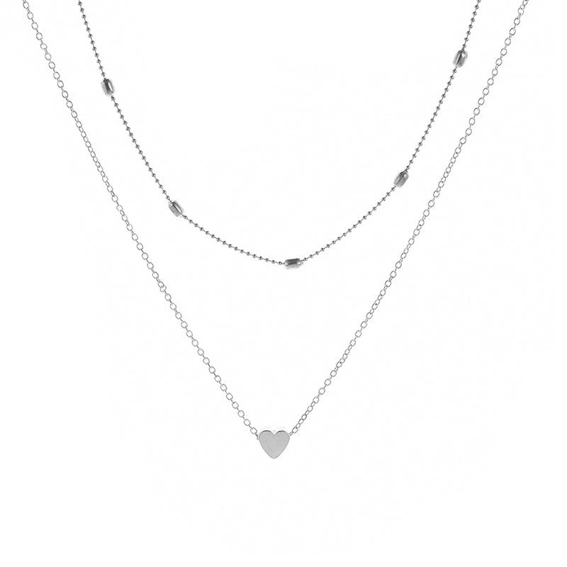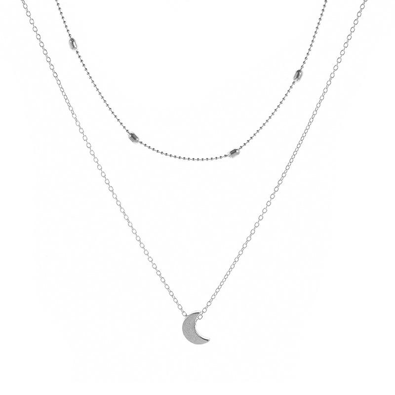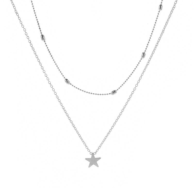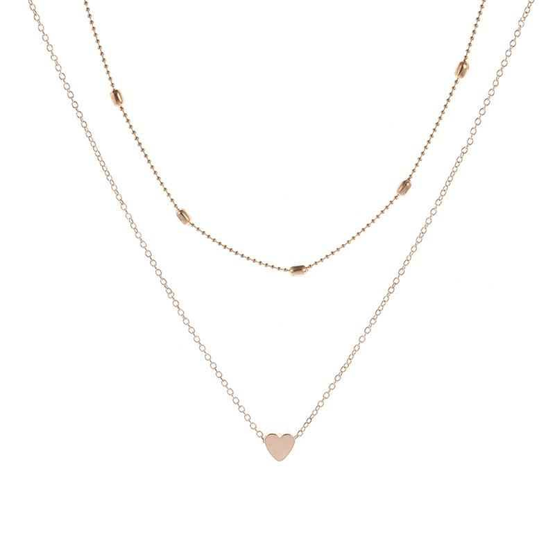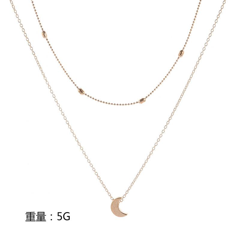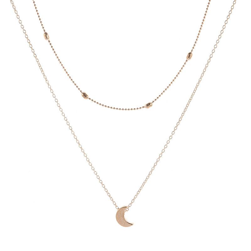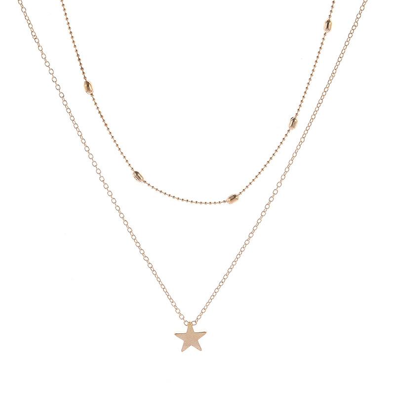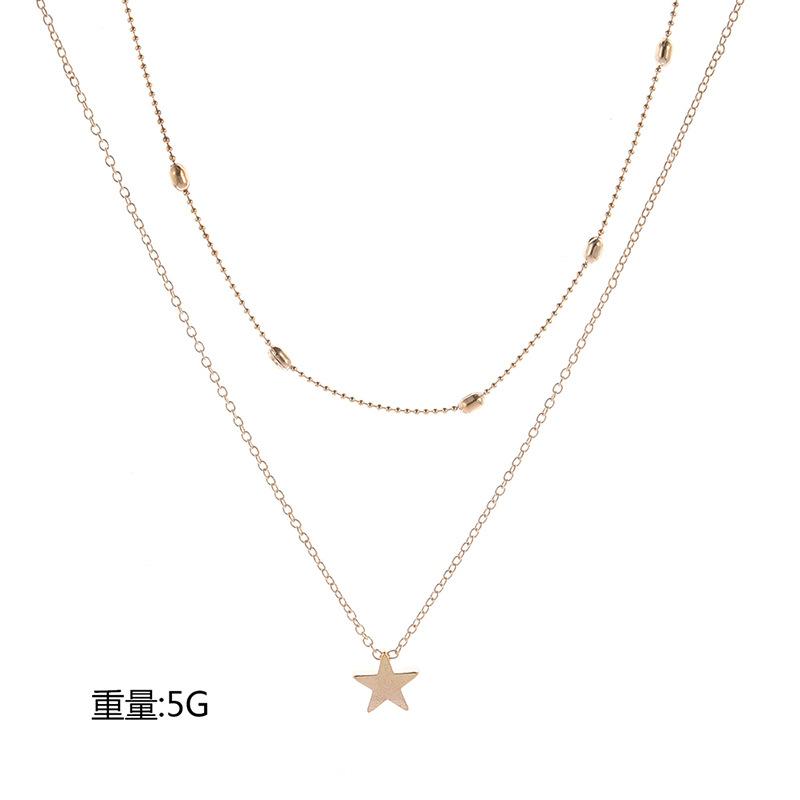 Accesorios Transfronterizos Europeos y Americanos Retro Sencillo Colgante de Corazón de Durazno Estrella Luna Collar de Moda Cadena de Clavícula de Doble Capa para Novia